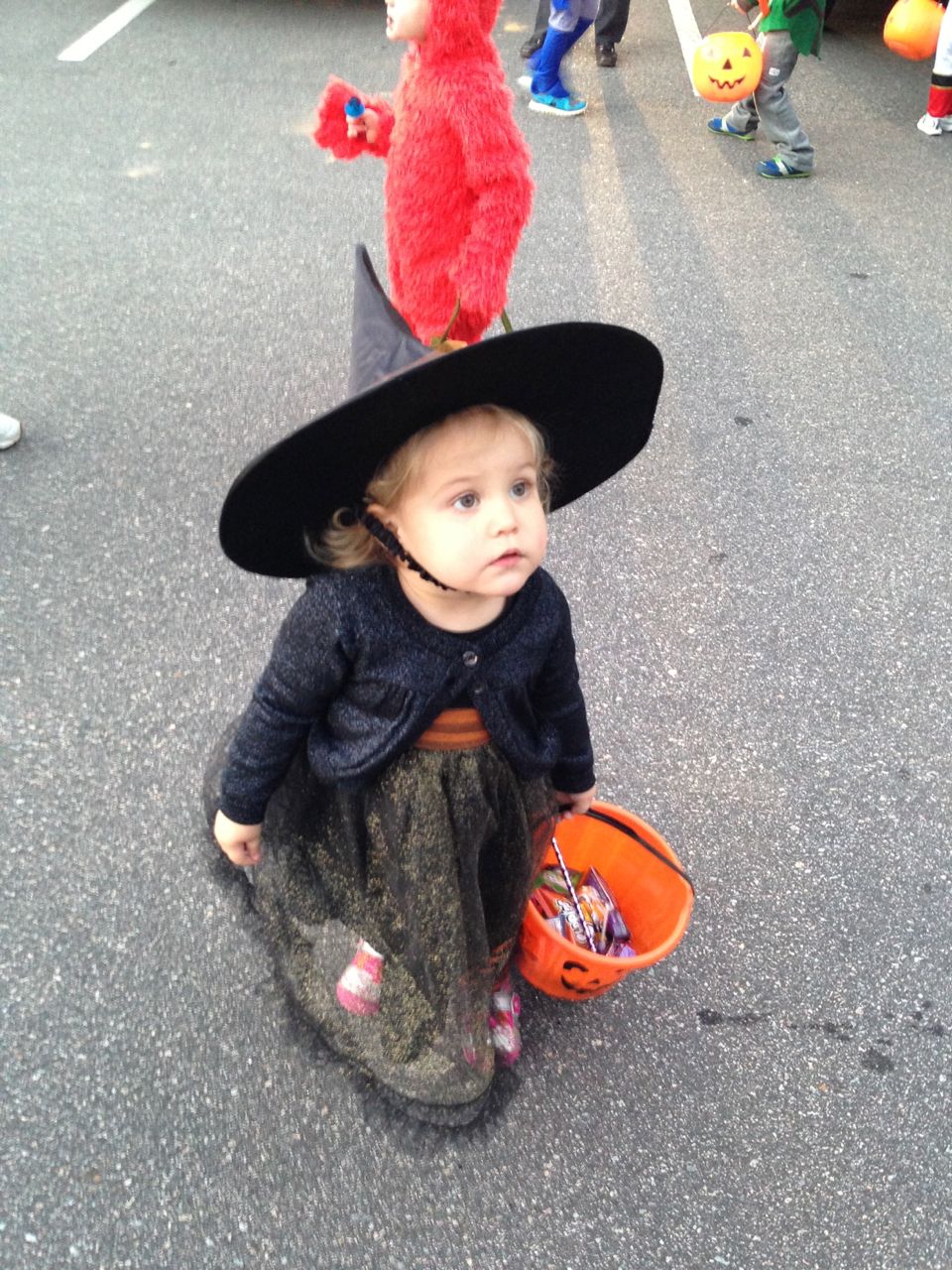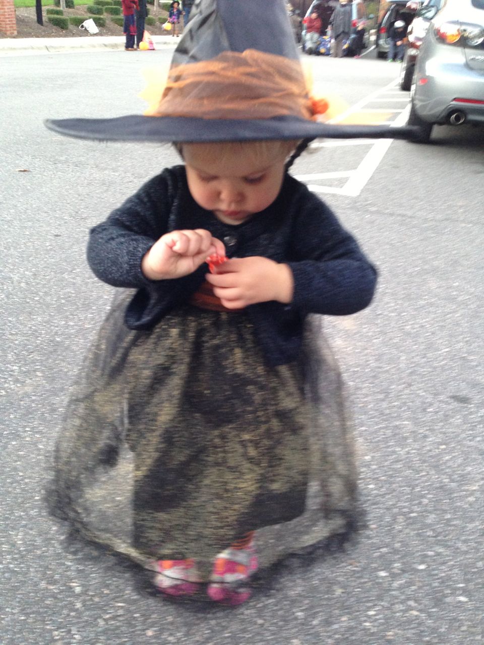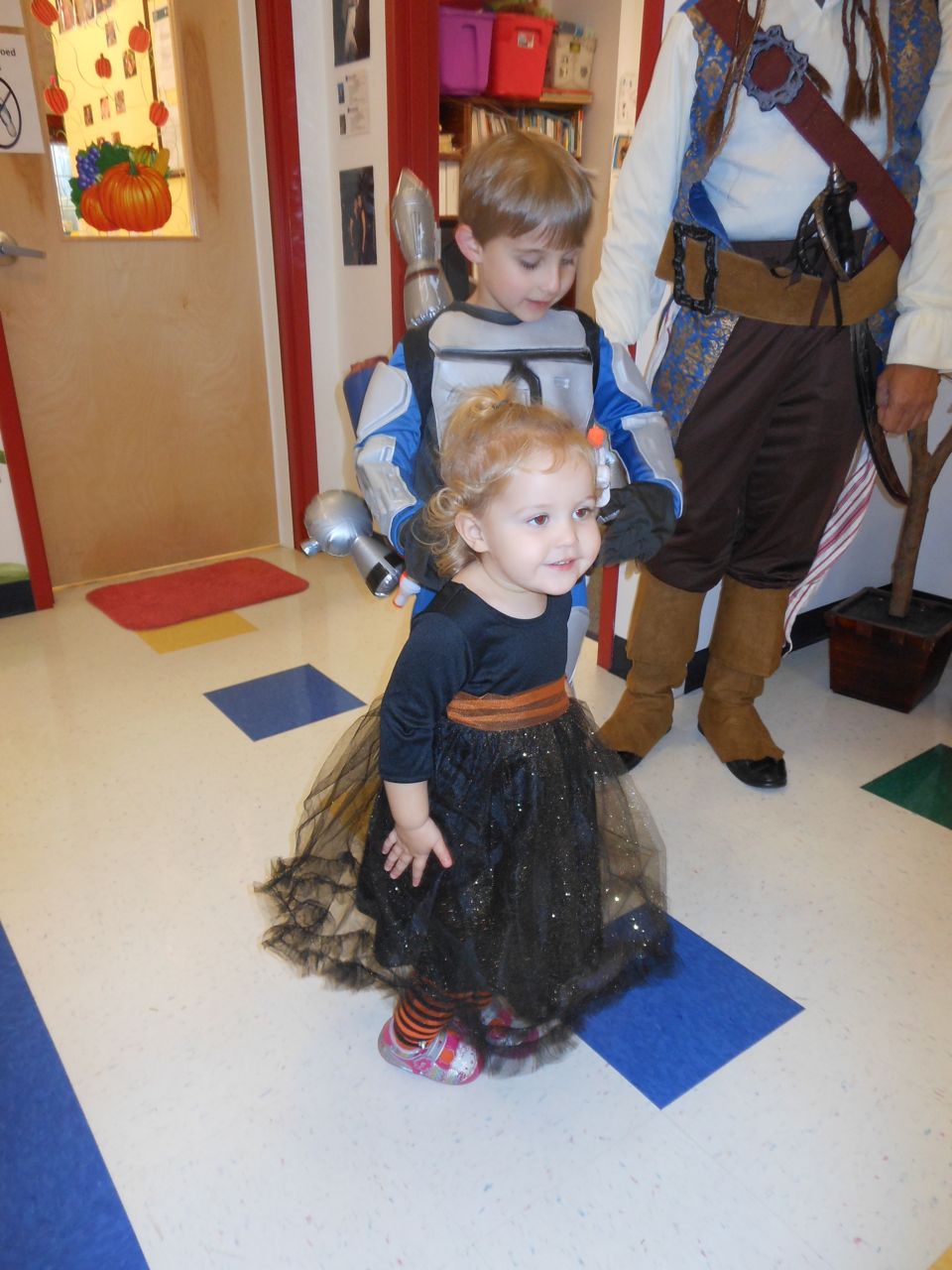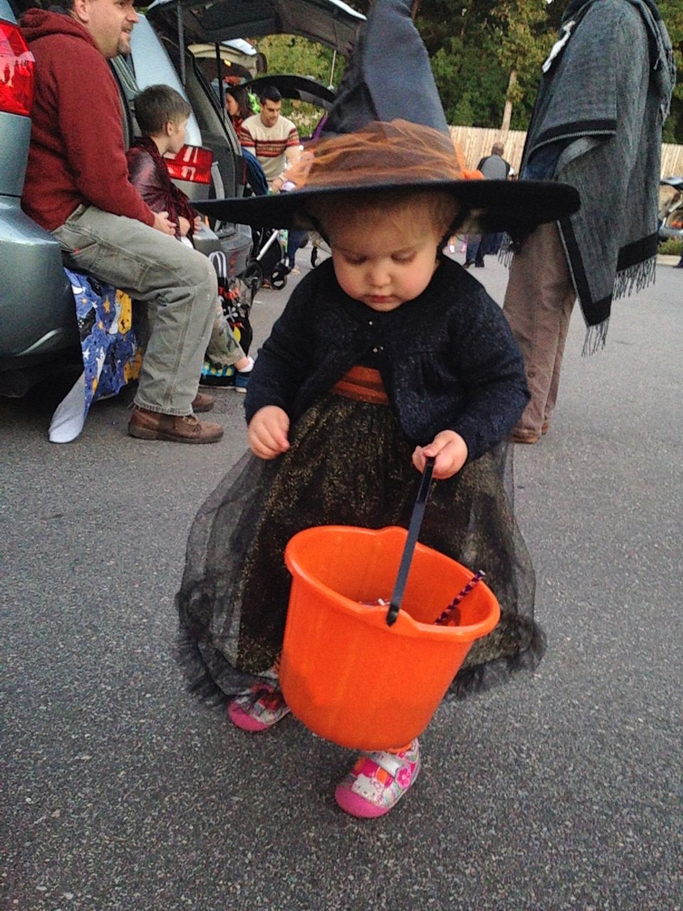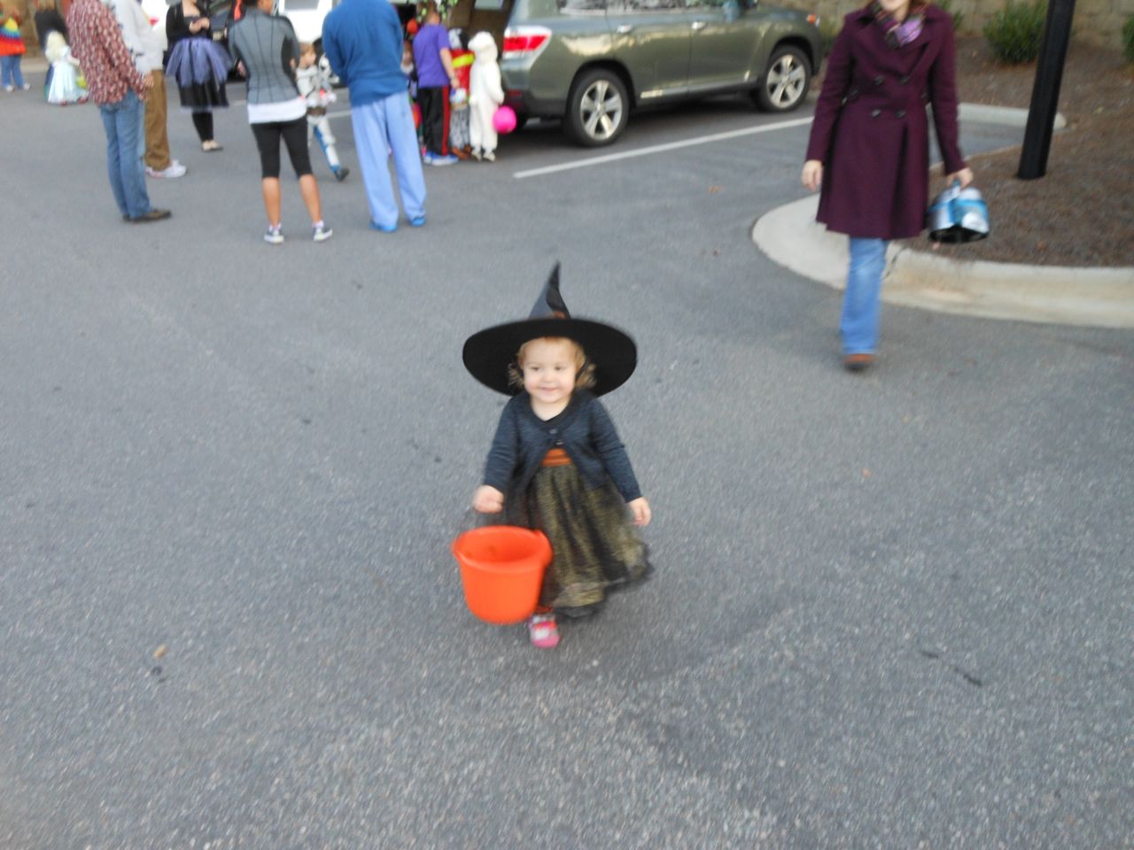 It’s another Trunk-or-Treat event at Goddard school! I’m really glad it’s not on Halloween itself this year–makes for less stress for everyone. 🙂 Brian was very excited to test out his Jango Fett costume, and Kendall was adorable in her sparkly witch outfit! She was power-walking all around the parking lot, pausing only to collect candy and to check out the Hello Kitty inflatable that someone had brought! Brian found Ty almost immediately and took off–they tore around the place, enjoying their status as big kids! Later, they wanted to hang out in the van and watch a movie. We were cool with that idea, at least we would know where they were! Much candy was given and collected, and we were (predictably!) the last family to leave the parking lot! Brian seems to love staying to the very end of Goddard events. 🙂