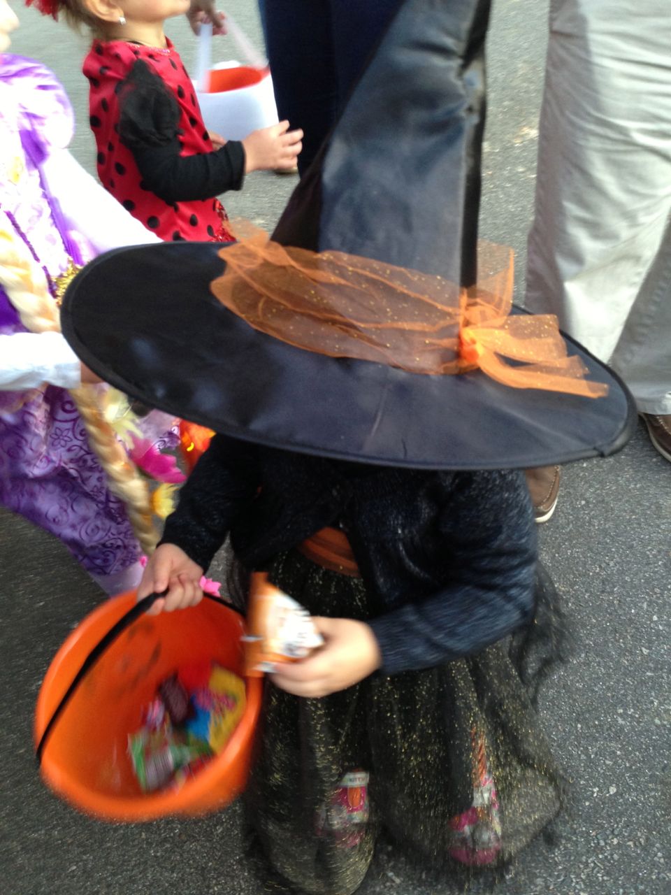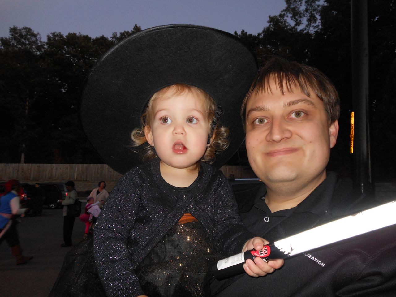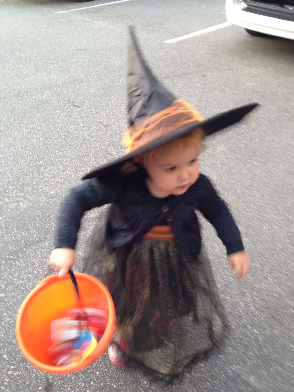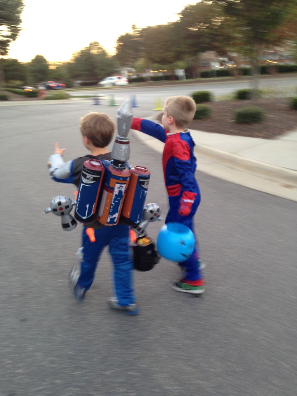 It’s another Trunk-or-Treat event at Goddard school! I’m really glad it’s not on Halloween itself this year–makes for less stress for everyone. 🙂 Brian was very excited to test out his Jango Fett costume, and Kendall was adorable in her sparkly witch outfit! She was power-walking all around the parking lot, pausing only to collect candy and to check out the Hello Kitty inflatable that someone had brought! Brian found Ty almost immediately and took off–they tore around the place, enjoying their status as big kids! Later, they wanted to hang out in the van and watch a movie. We were cool with that idea, at least we would know where they were! Much candy was given and collected, and we were (predictably!) the last family to leave the parking lot! Brian seems to love staying to the very end of Goddard events. 🙂