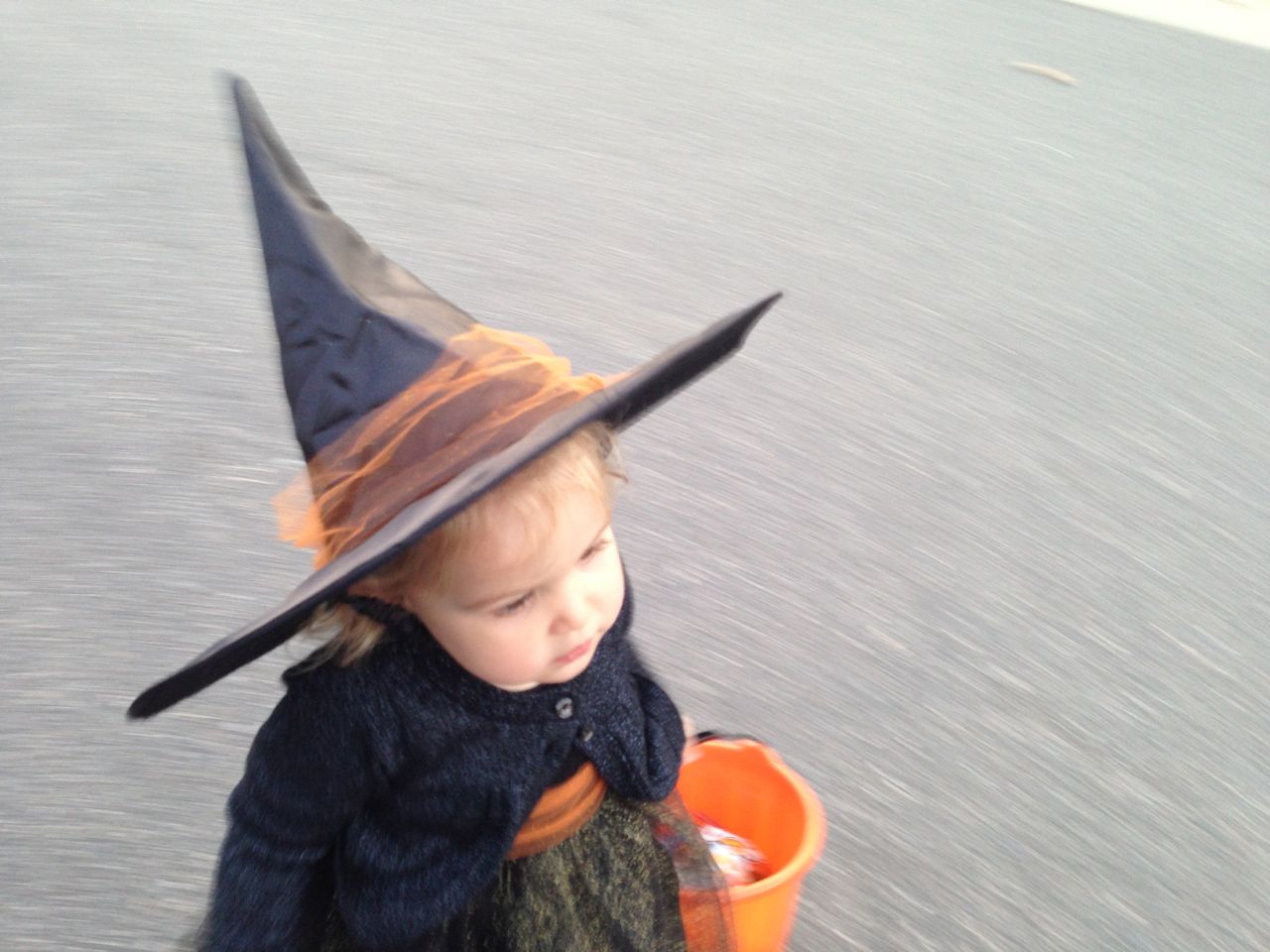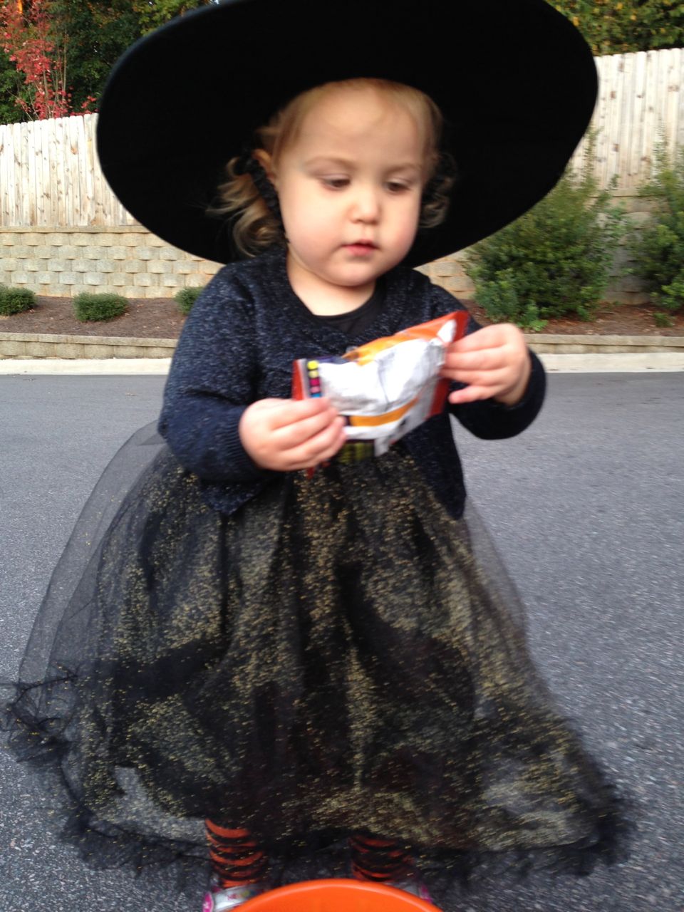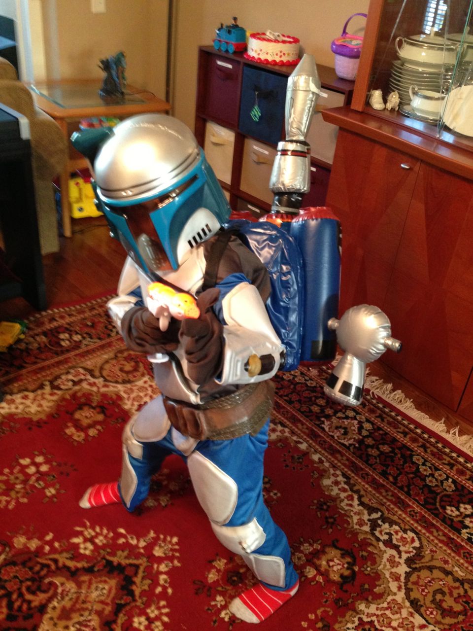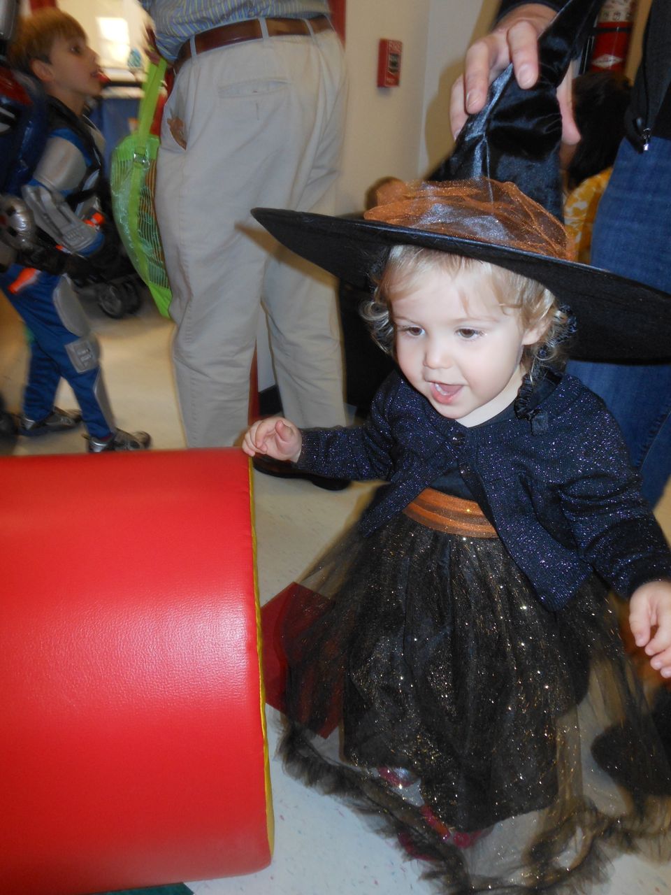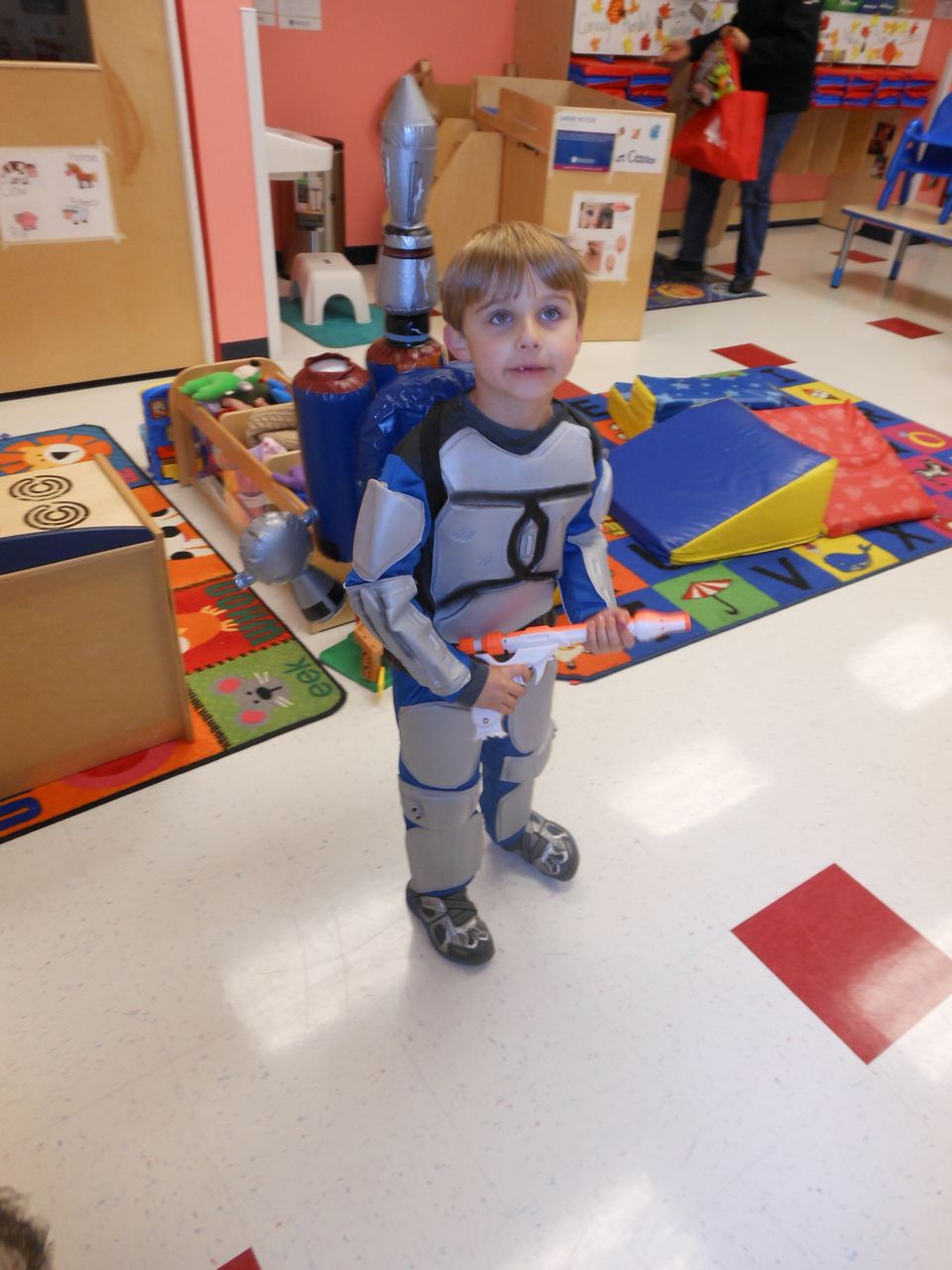 It’s another Trunk-or-Treat event at Goddard school! I’m really glad it’s not on Halloween itself this year–makes for less stress for everyone. 🙂 Brian was very excited to test out his Jango Fett costume, and Kendall was adorable in her sparkly witch outfit! She was power-walking all around the parking lot, pausing only to collect candy and to check out the Hello Kitty inflatable that someone had brought! Brian found Ty almost immediately and took off–they tore around the place, enjoying their status as big kids! Later, they wanted to hang out in the van and watch a movie. We were cool with that idea, at least we would know where they were! Much candy was given and collected, and we were (predictably!) the last family to leave the parking lot! Brian seems to love staying to the very end of Goddard events. 🙂