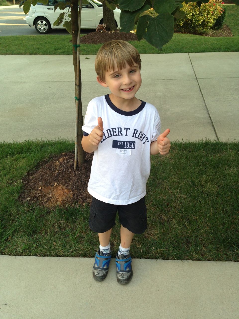Today Brian wore his new Root Elementary t-shirt! I thought he looked like such a big kid. 🙂 After school the kids played in the driveway for awhile–Brian still loves that fishing pole!