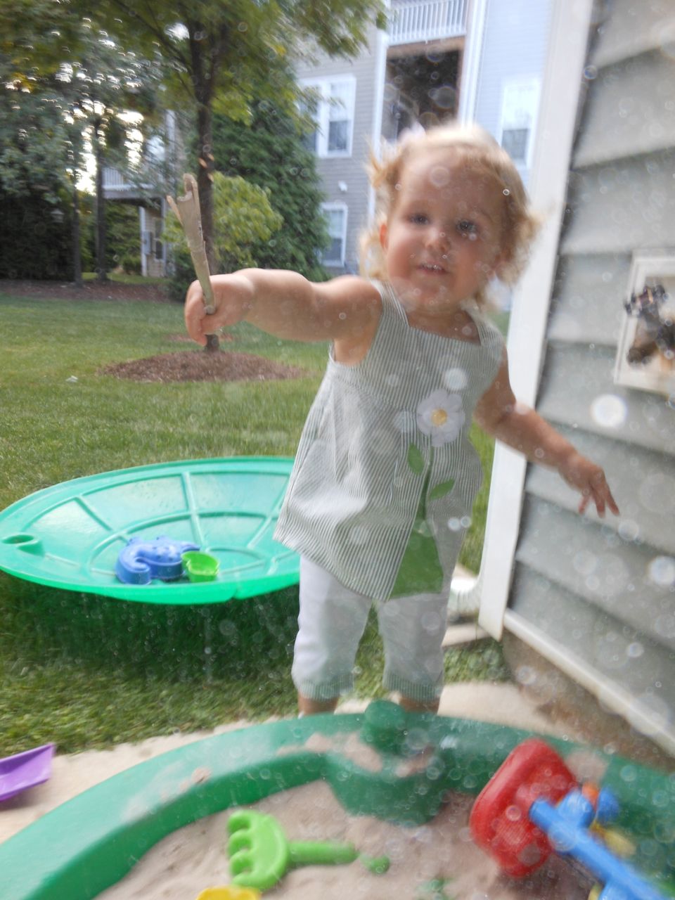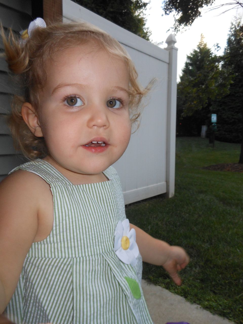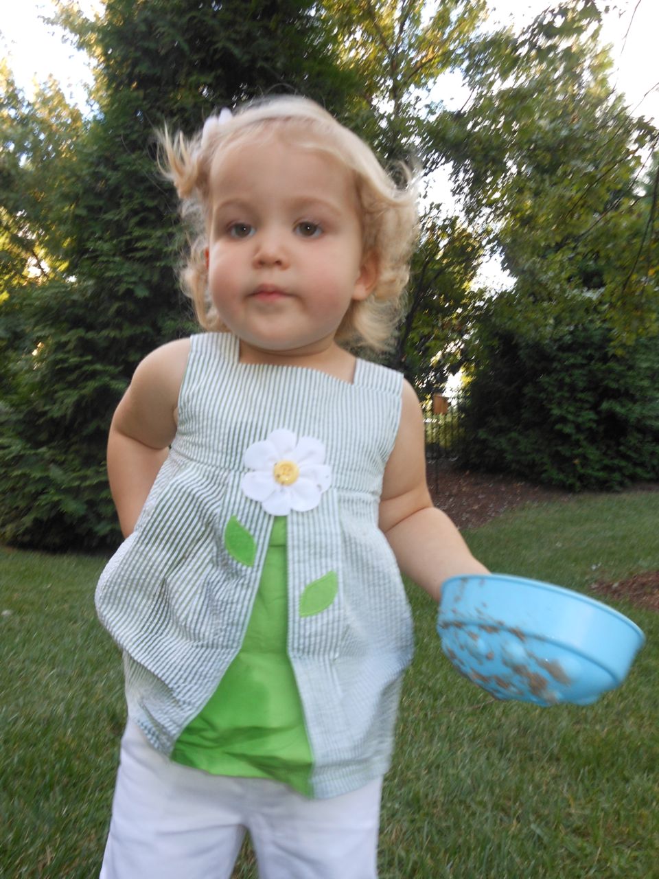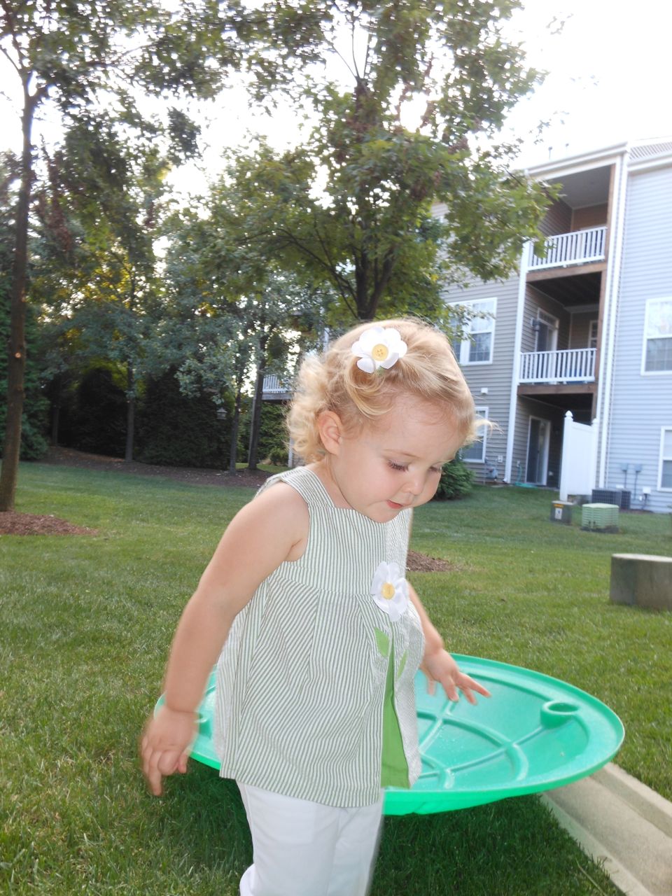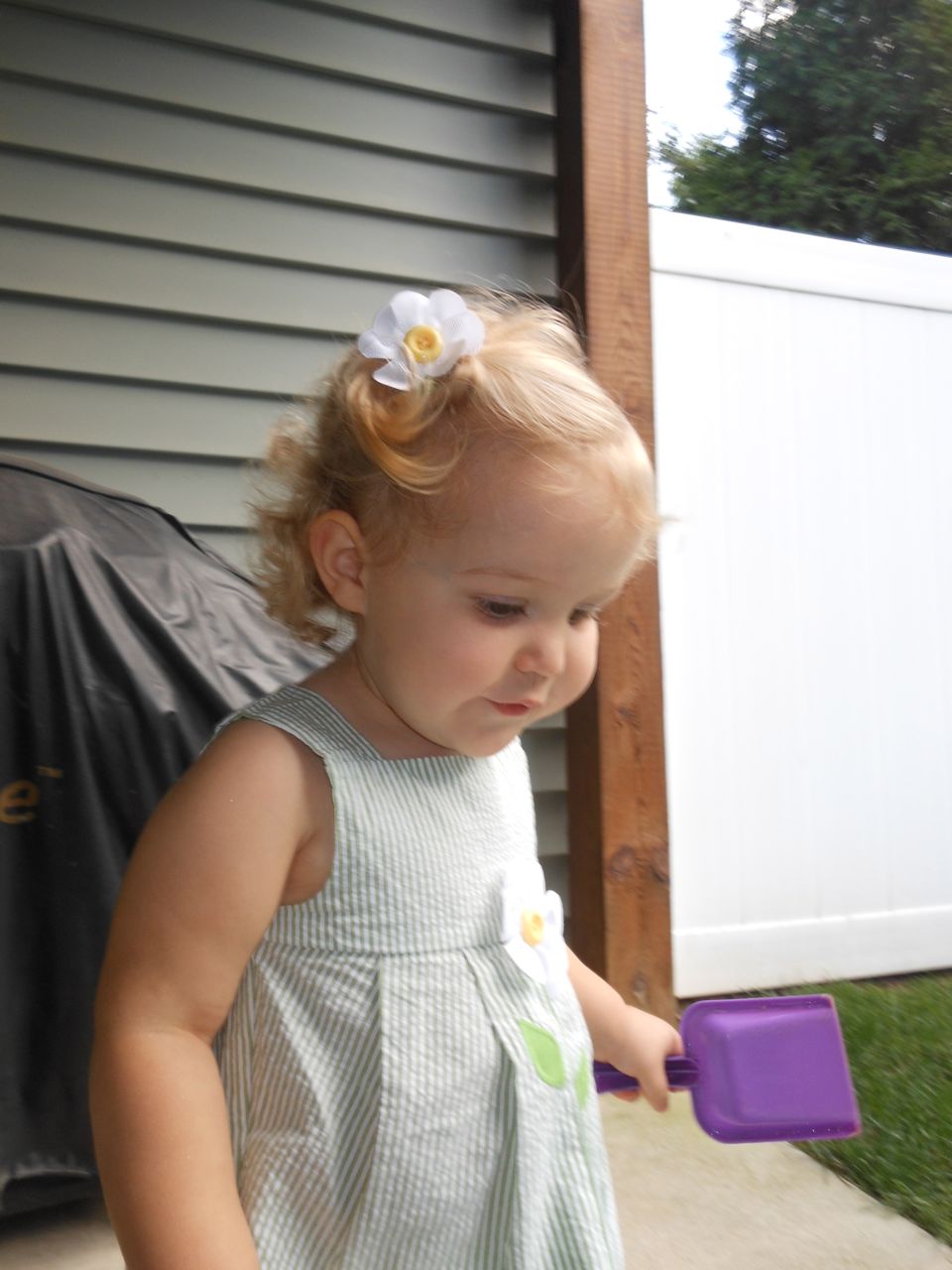Now that we’re past Labor Day, I guess technically Kendall shouldn’t wear this outfit.. (Is that rule only about white shoes, or do white pants count, too? I can’t remember these things!) But it’s just too cute, and you can’t really see it in her portraits. So, since we had a little time after school today, I let Kendall play in the sandbox while I snapped a bunch of photos. Let’s enjoy the last of summer however we can! Even if that means flinging sand on Mommy’s camera. 😉