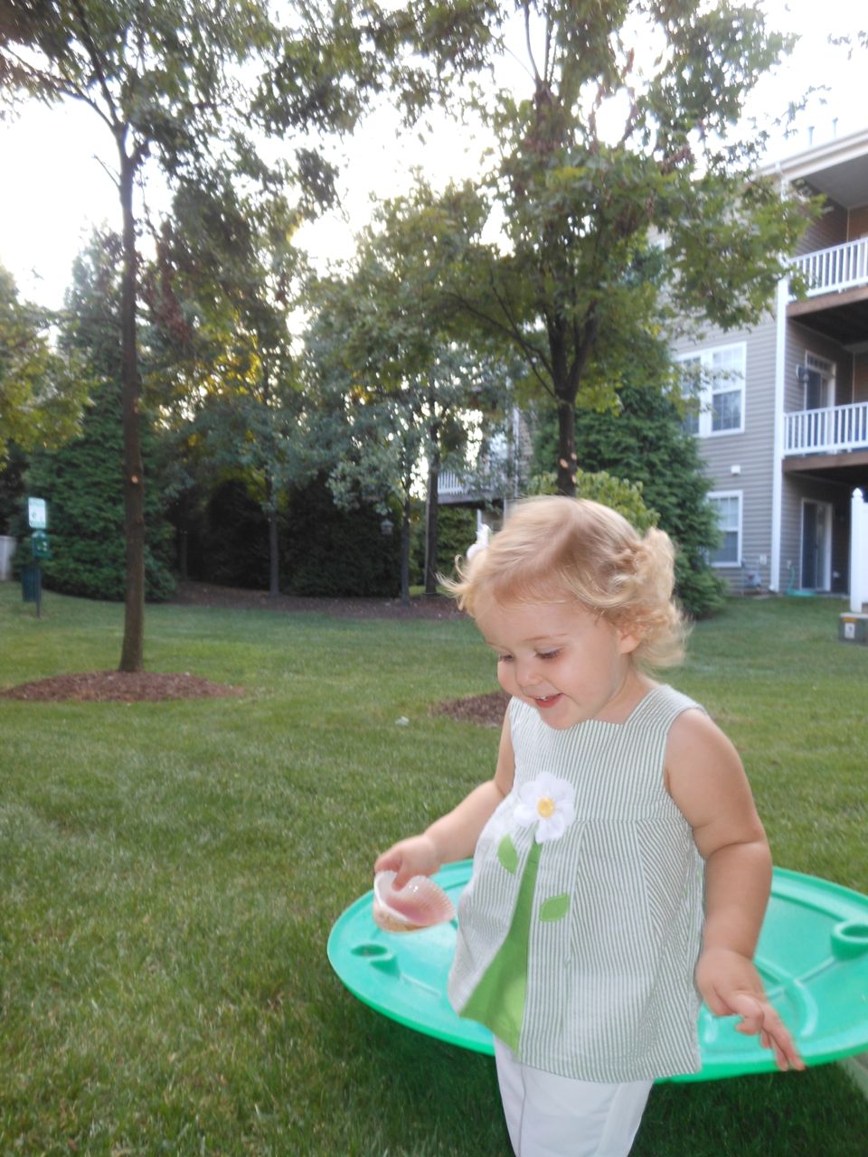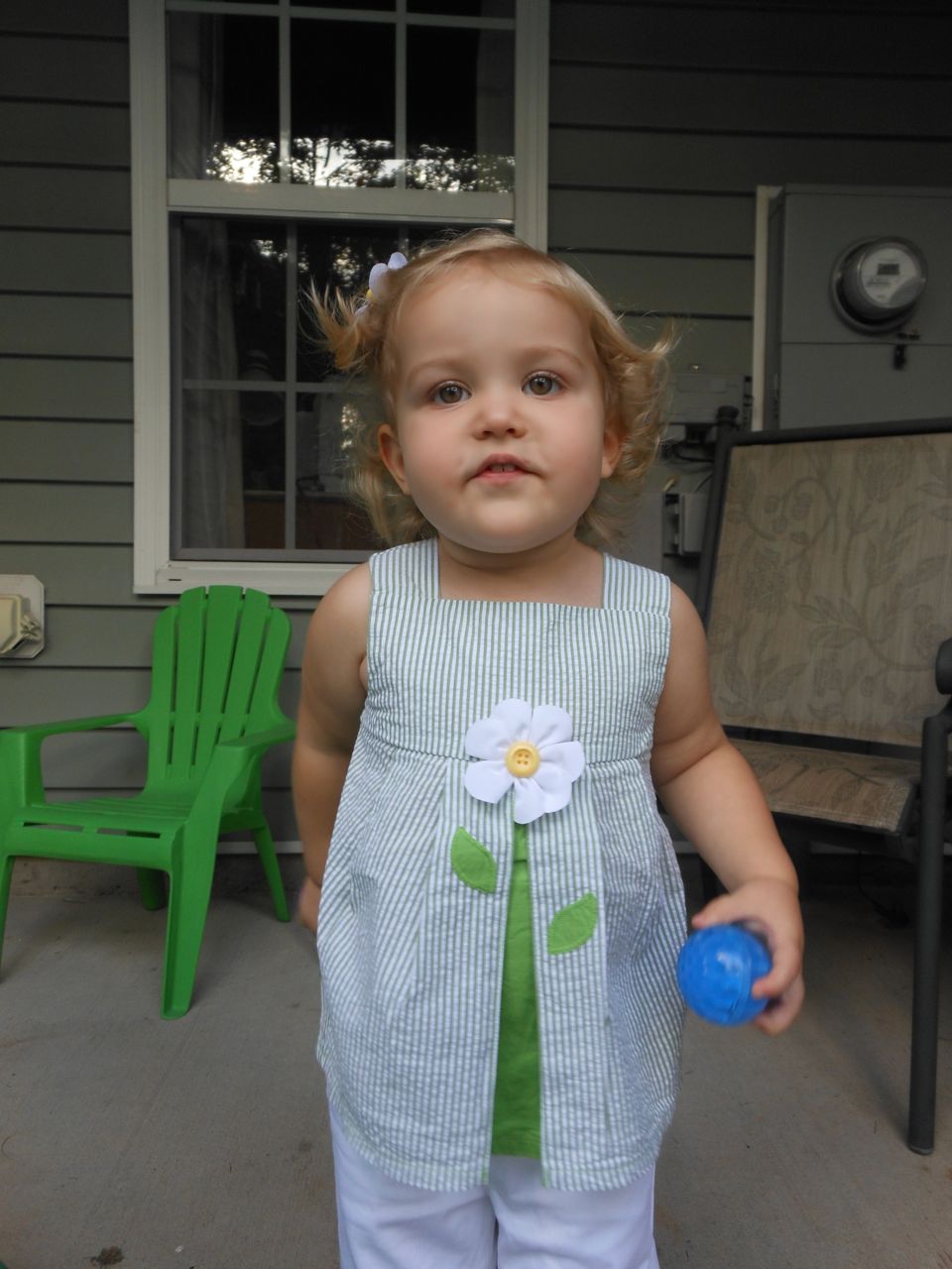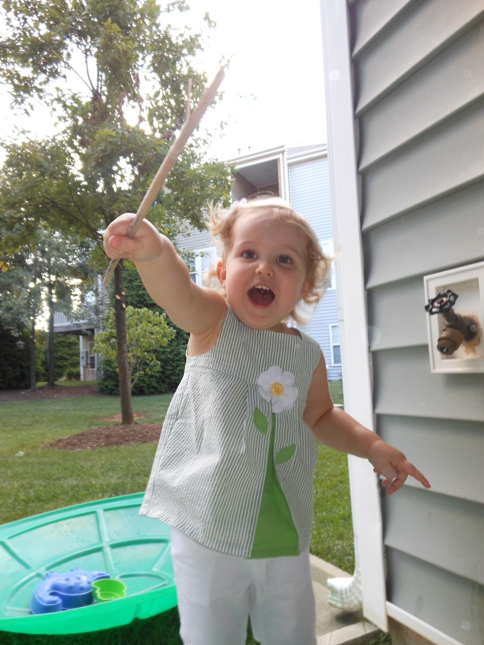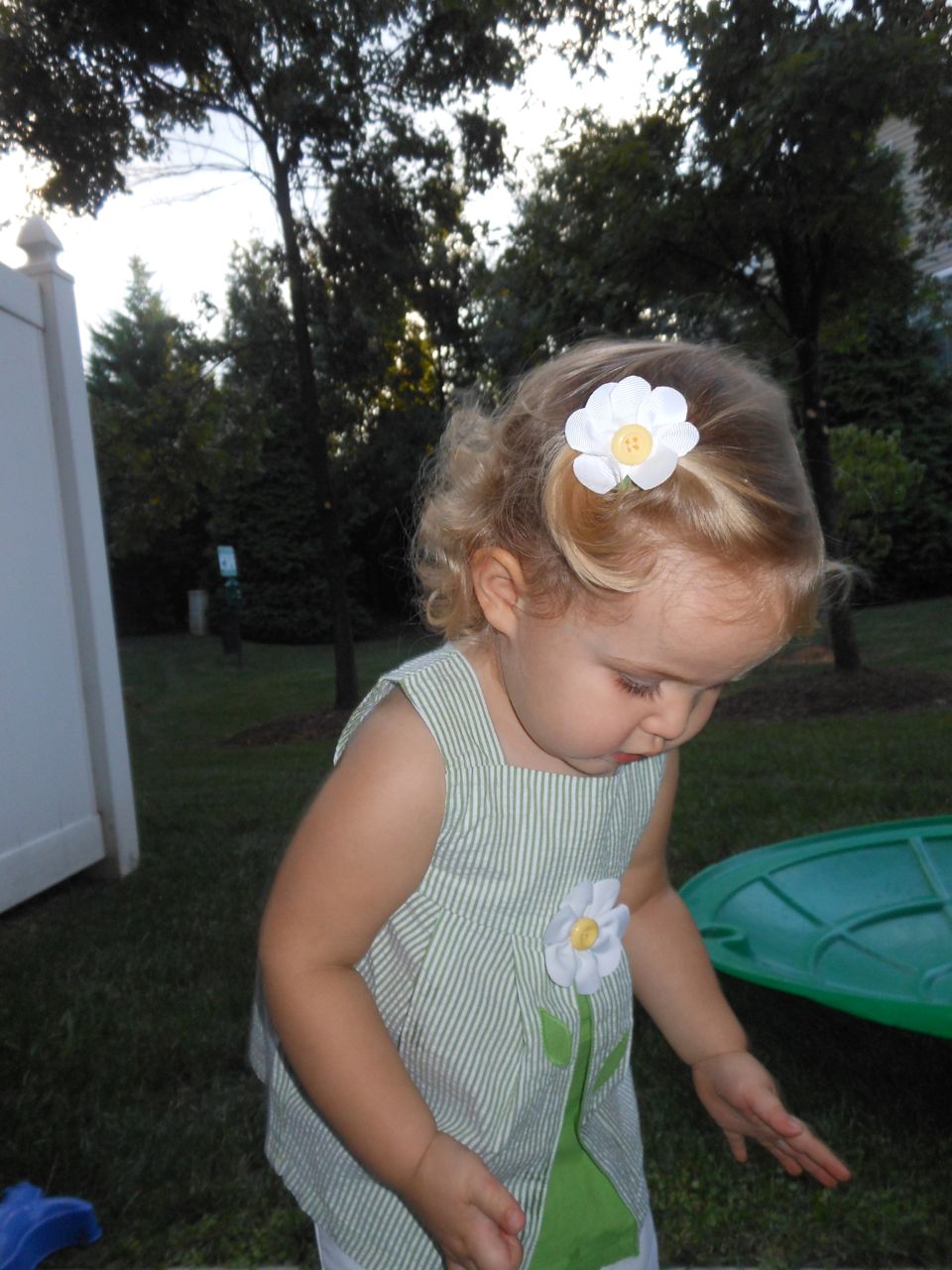 Now that we’re past Labor Day, I guess technically Kendall shouldn’t wear this outfit.. (Is that rule only about white shoes, or do white pants count, too? I can’t remember these things!) But it’s just too cute, and you can’t really see it in her portraits. So, since we had a little time after school today, I let Kendall play in the sandbox while I snapped a bunch of photos. Let’s enjoy the last of summer however we can! Even if that means flinging sand on Mommy’s camera. 😉