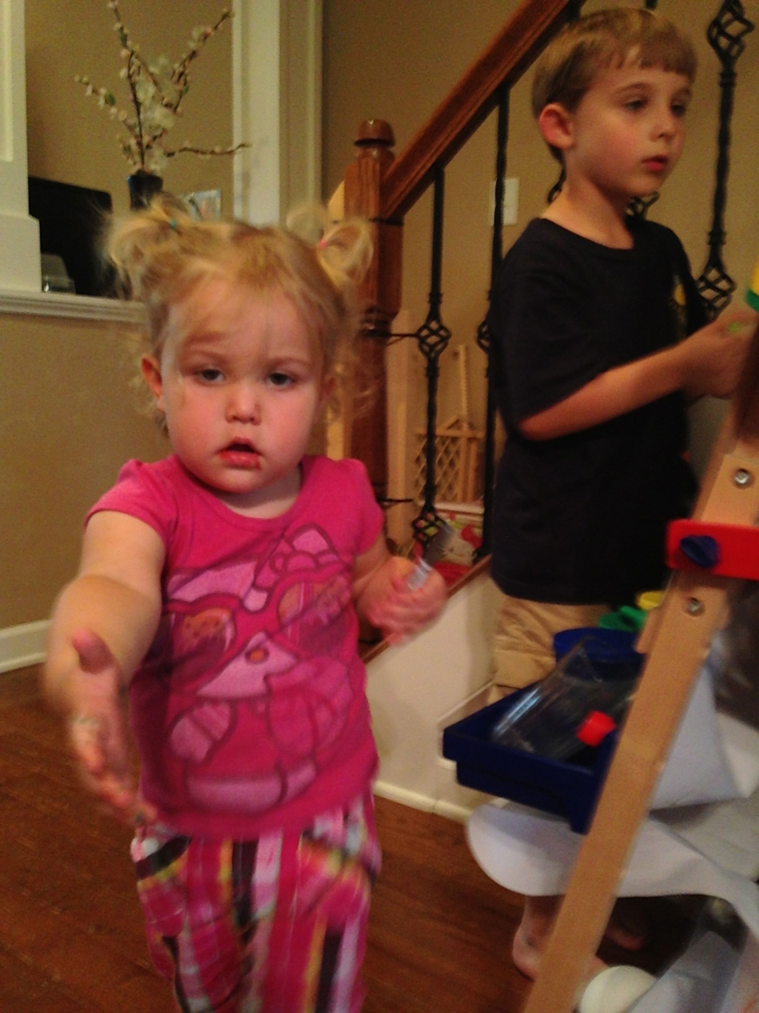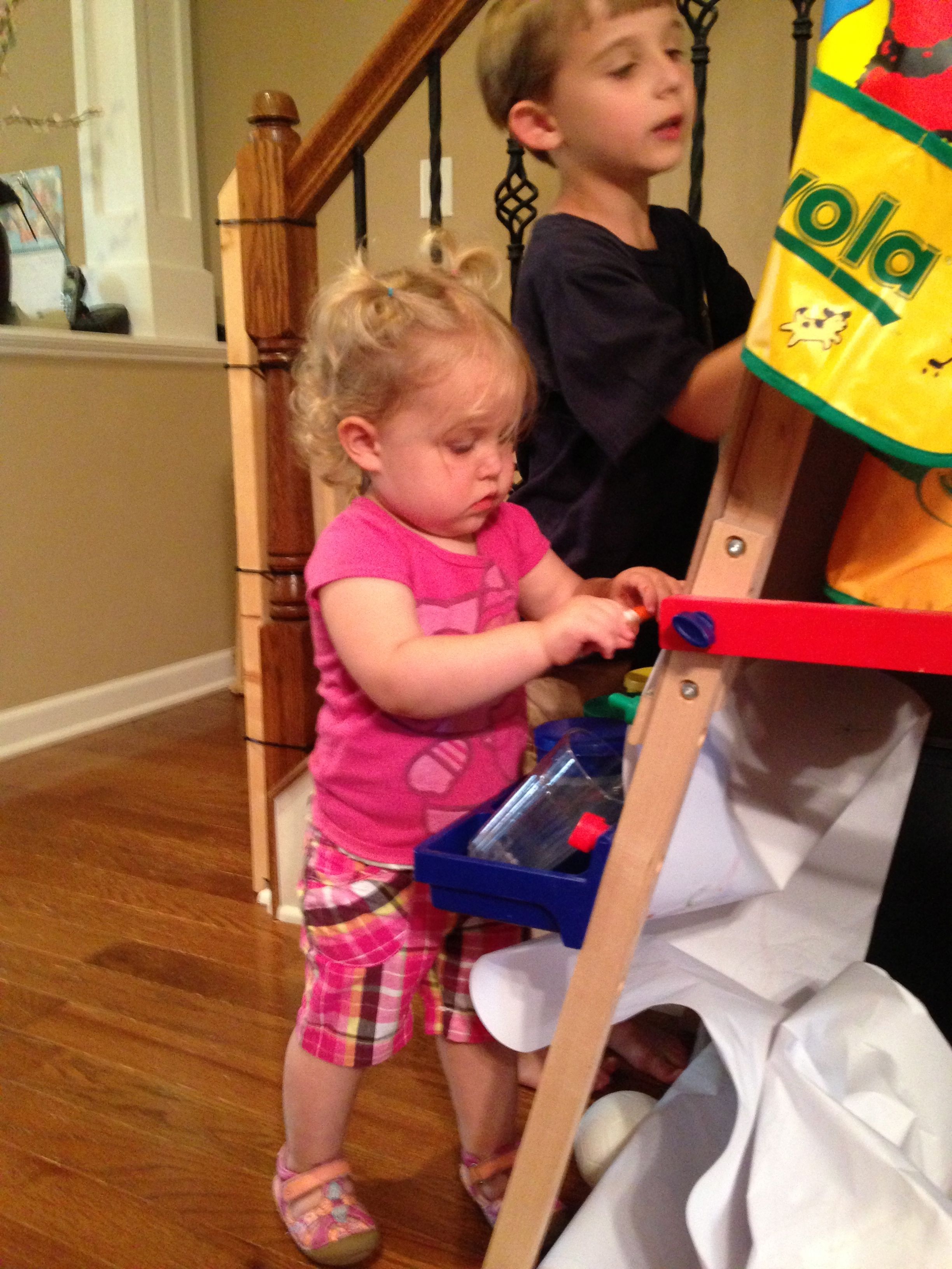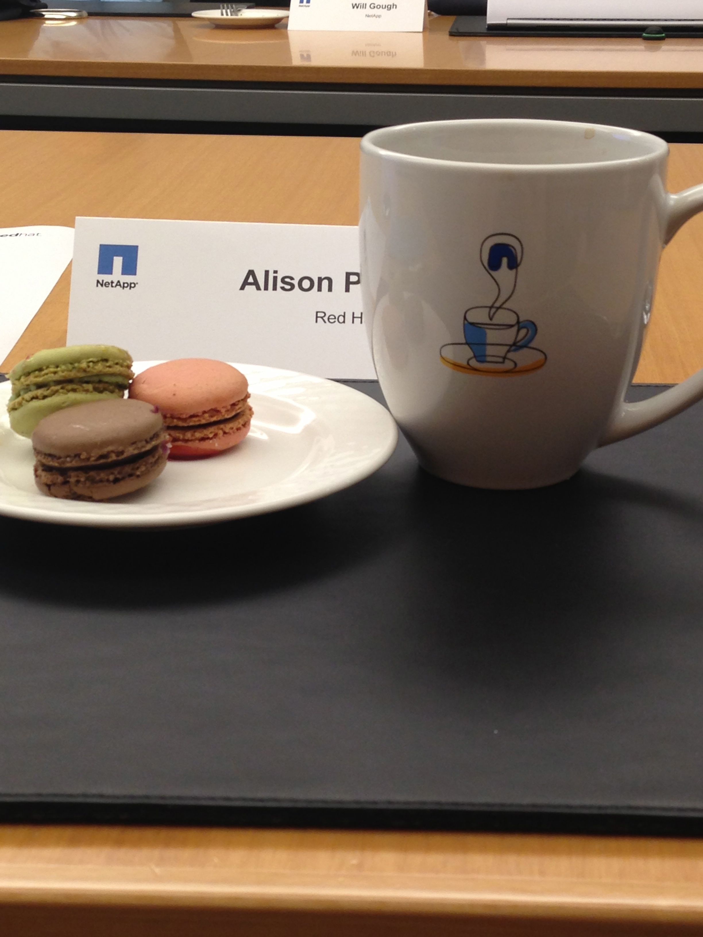 It’s Monday morning, it’s time for school–but first, the kids just have to get in some art time! They were so cute working together at the easel. Also, a random picture of my snack at a meeting at NetApp–I was pretty happy about the macaroons. 😉 They know how to feed you over there, that’s for sure.