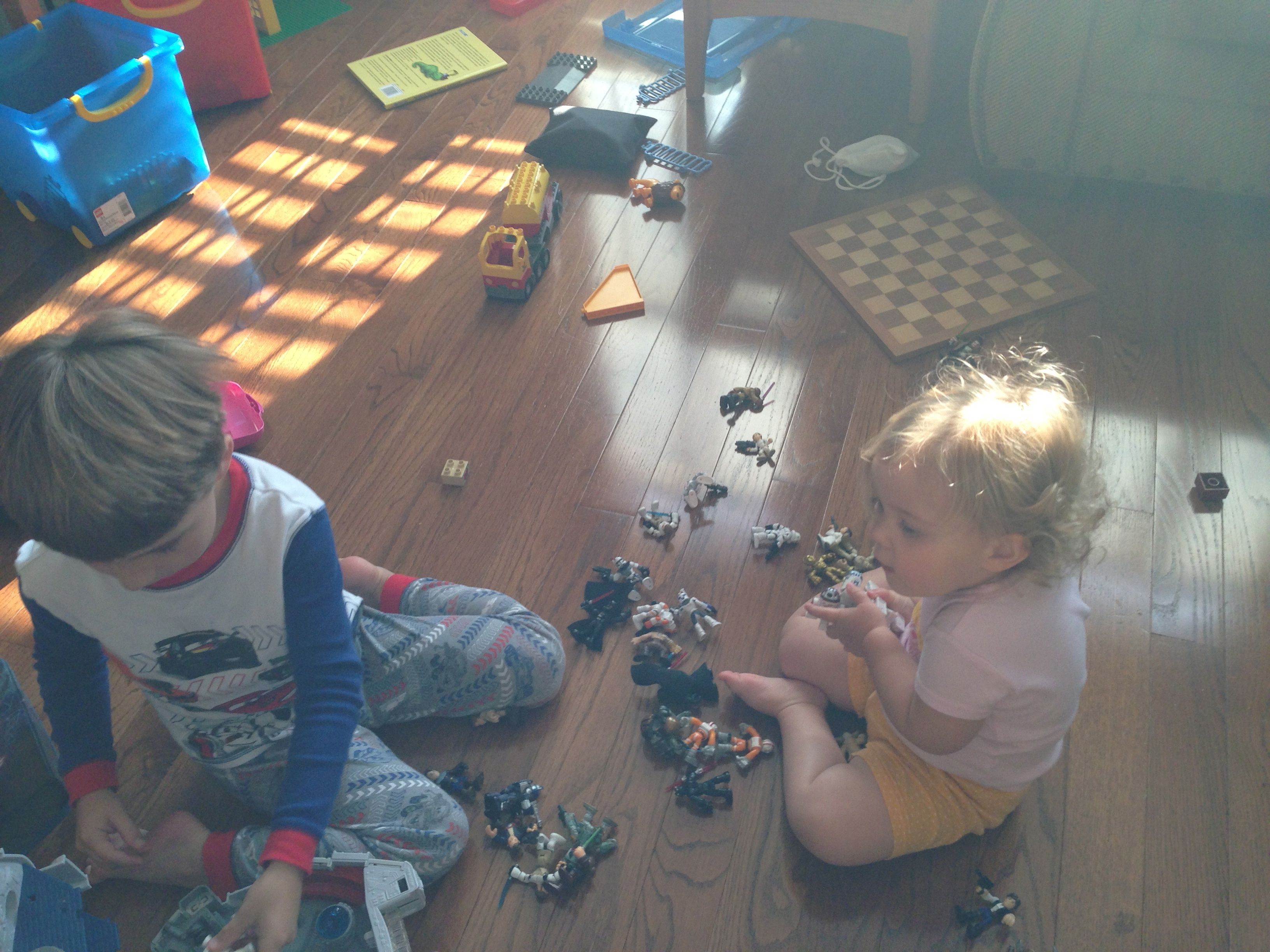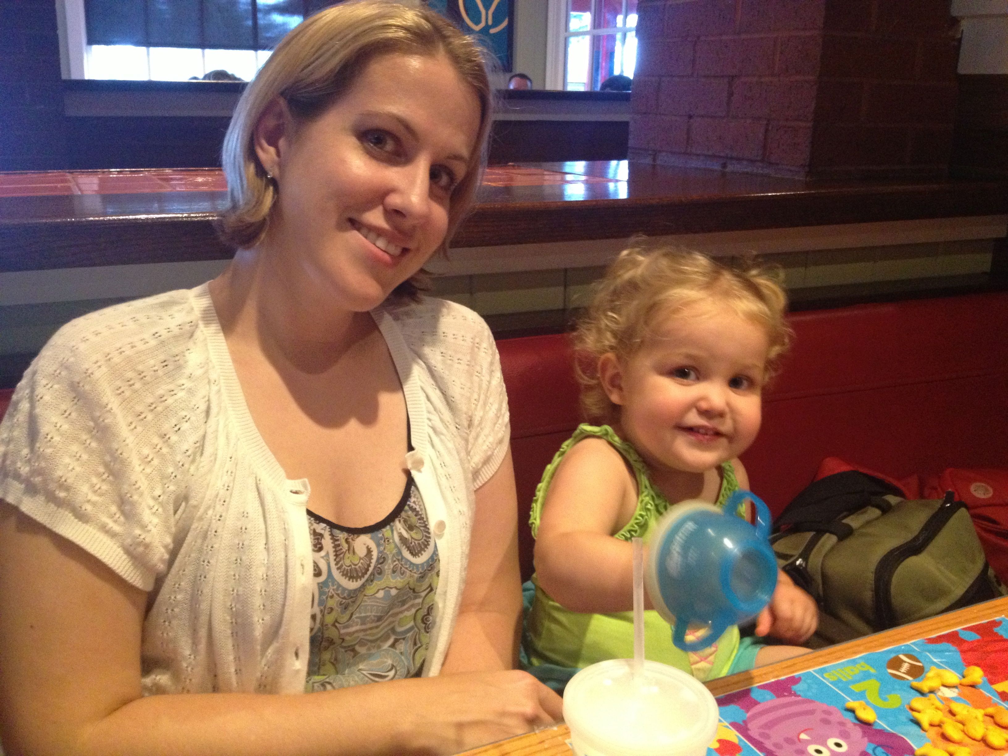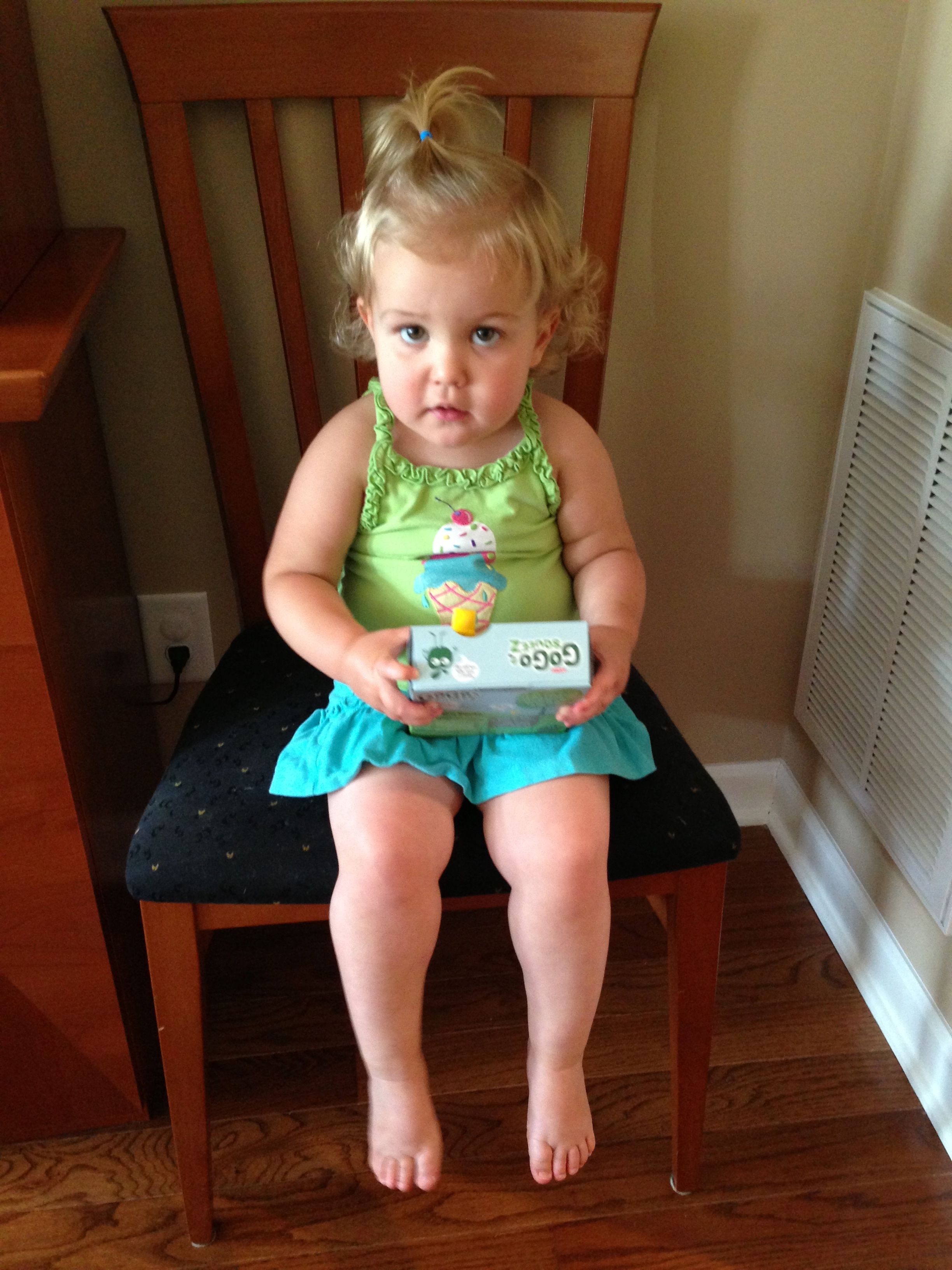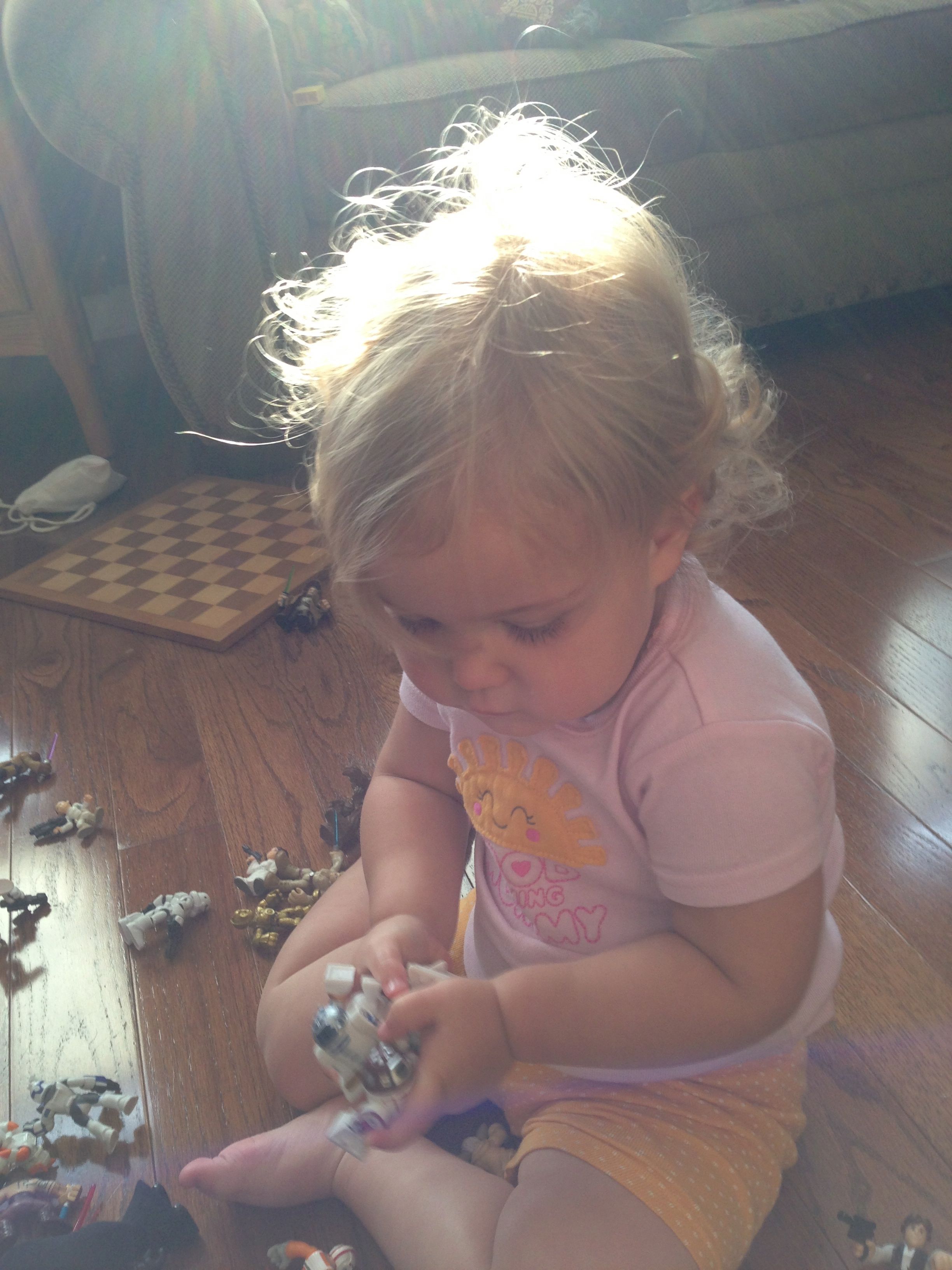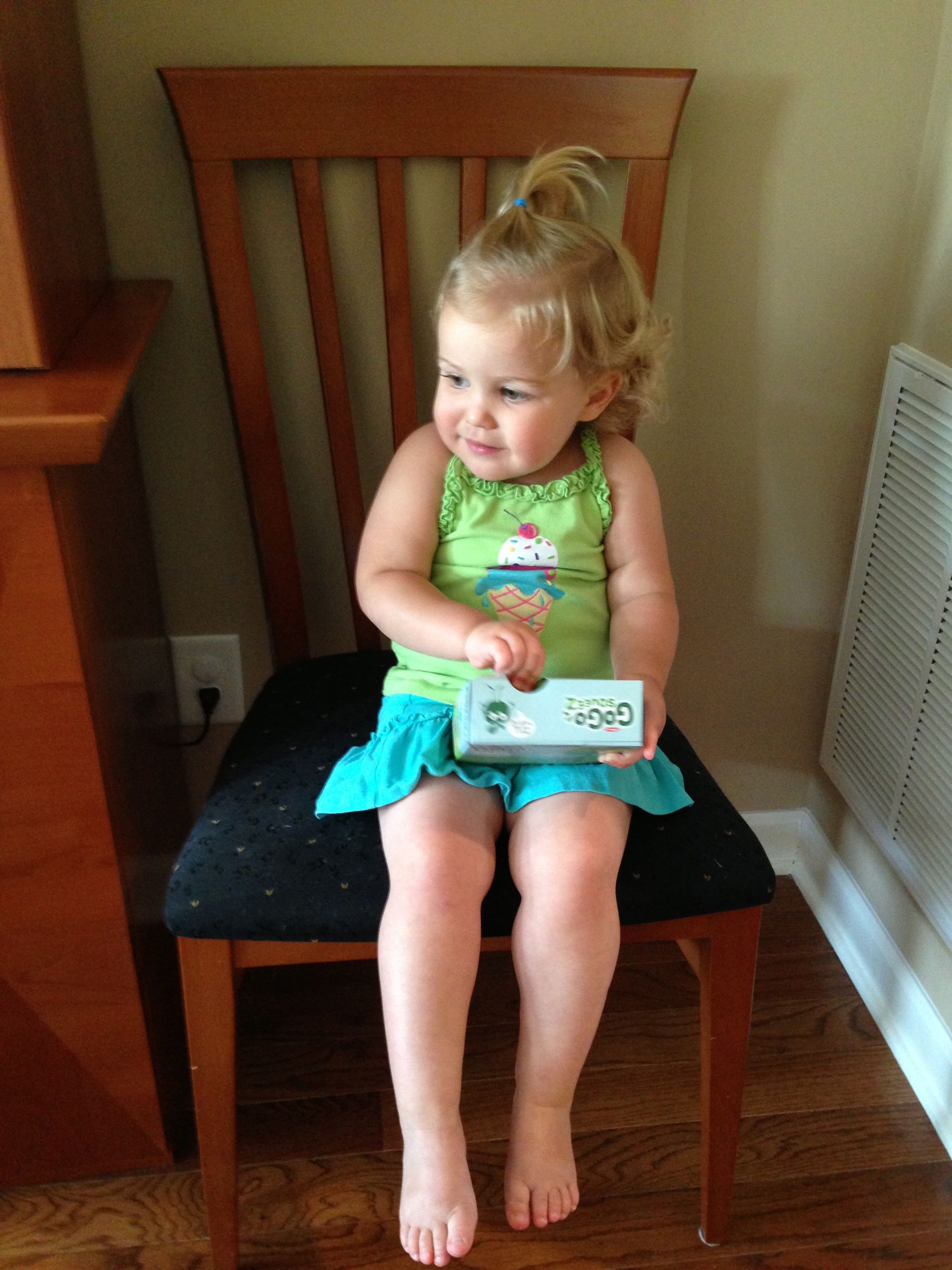 It’s Friday, it’s time to party! Even before school, the kids were ready to play. They pulled out so many toys before I even got downstairs..! Kendall was very silly with her bagel, enthusiastically getting blueberry cream cheese all over her face. Brian somehow managed to get a cookie, and celebrated that he had the king (what can I say, he loves the Chessmen.) After school, Brian said he wanted to go to the “place where I get to circle pictures of what I want with crayons”–which I knew must mean Chili’s. So, we said okay, and headed over. We had our dinner (and chocolate lava cake!) and on the way out, Brian noticed someone’s car had a Boba Fett front license plate on it–he said I had to take a picture. 🙂 When we got home, the kids were so sugared up and it was still early, so we had some extra playtime. They went a little wild with the AquaDoodle!
