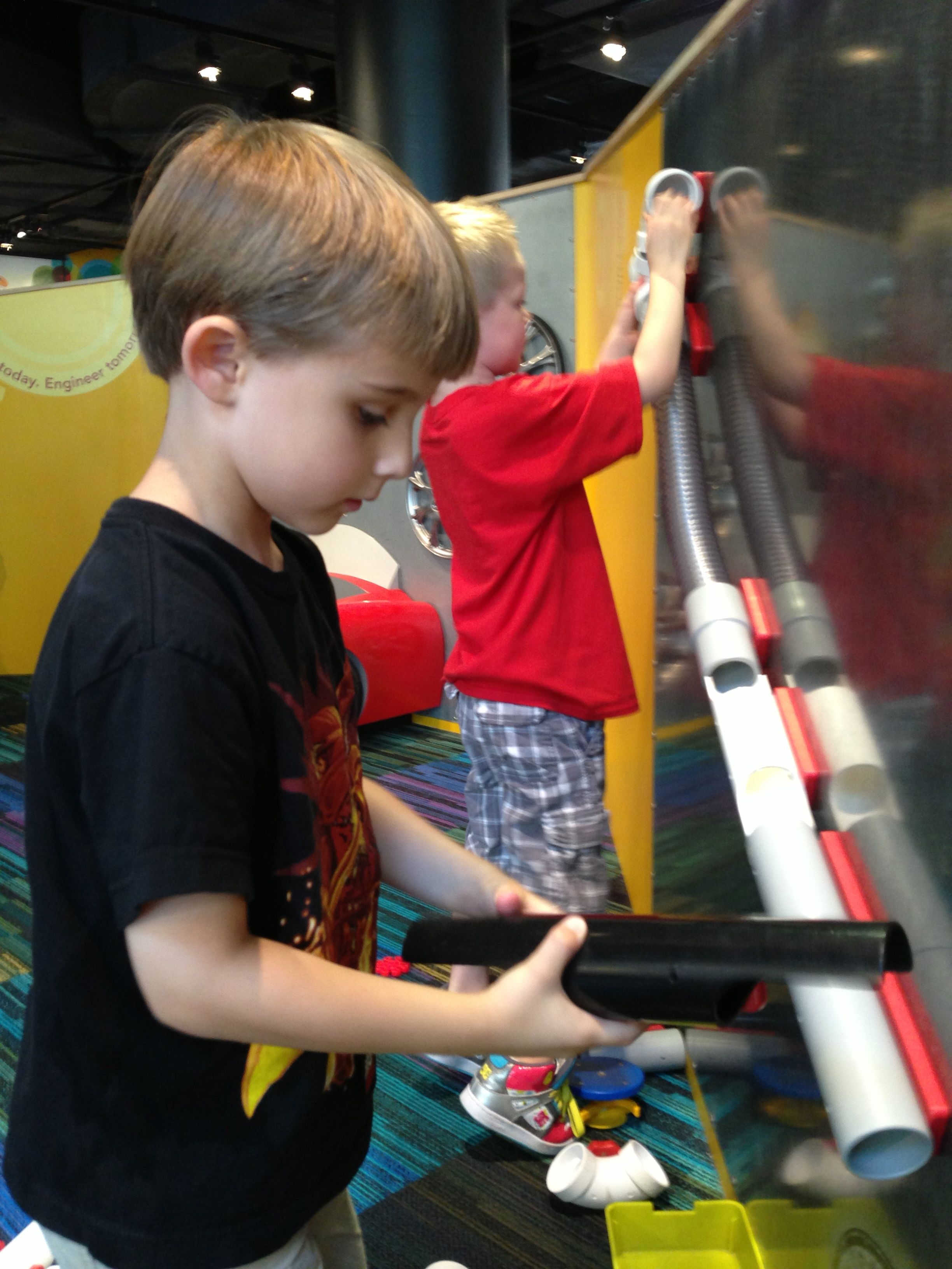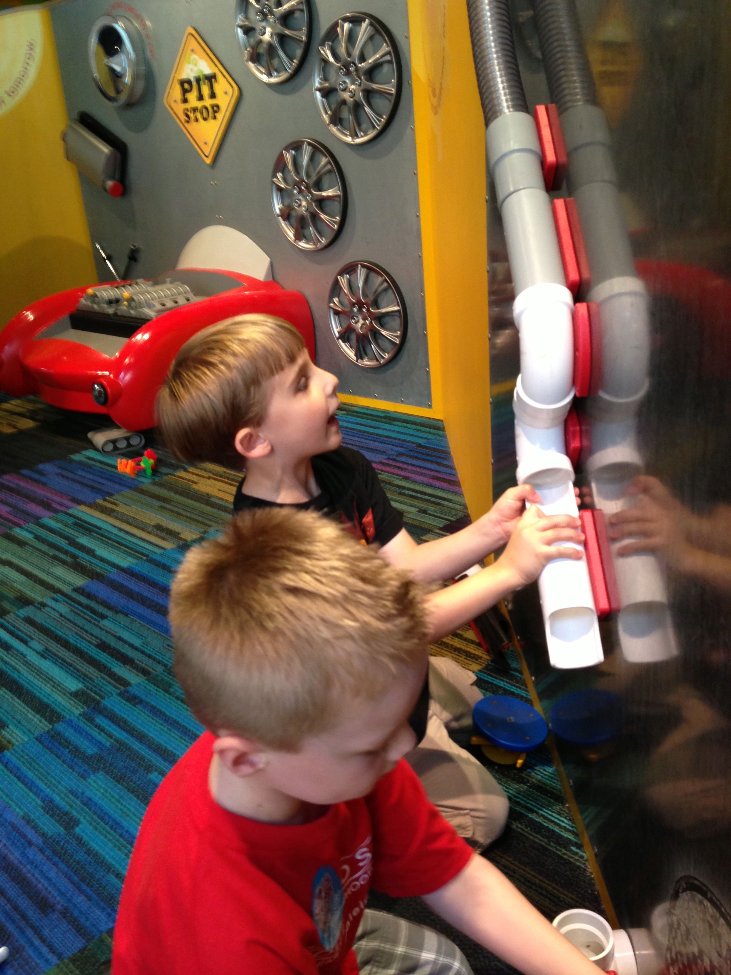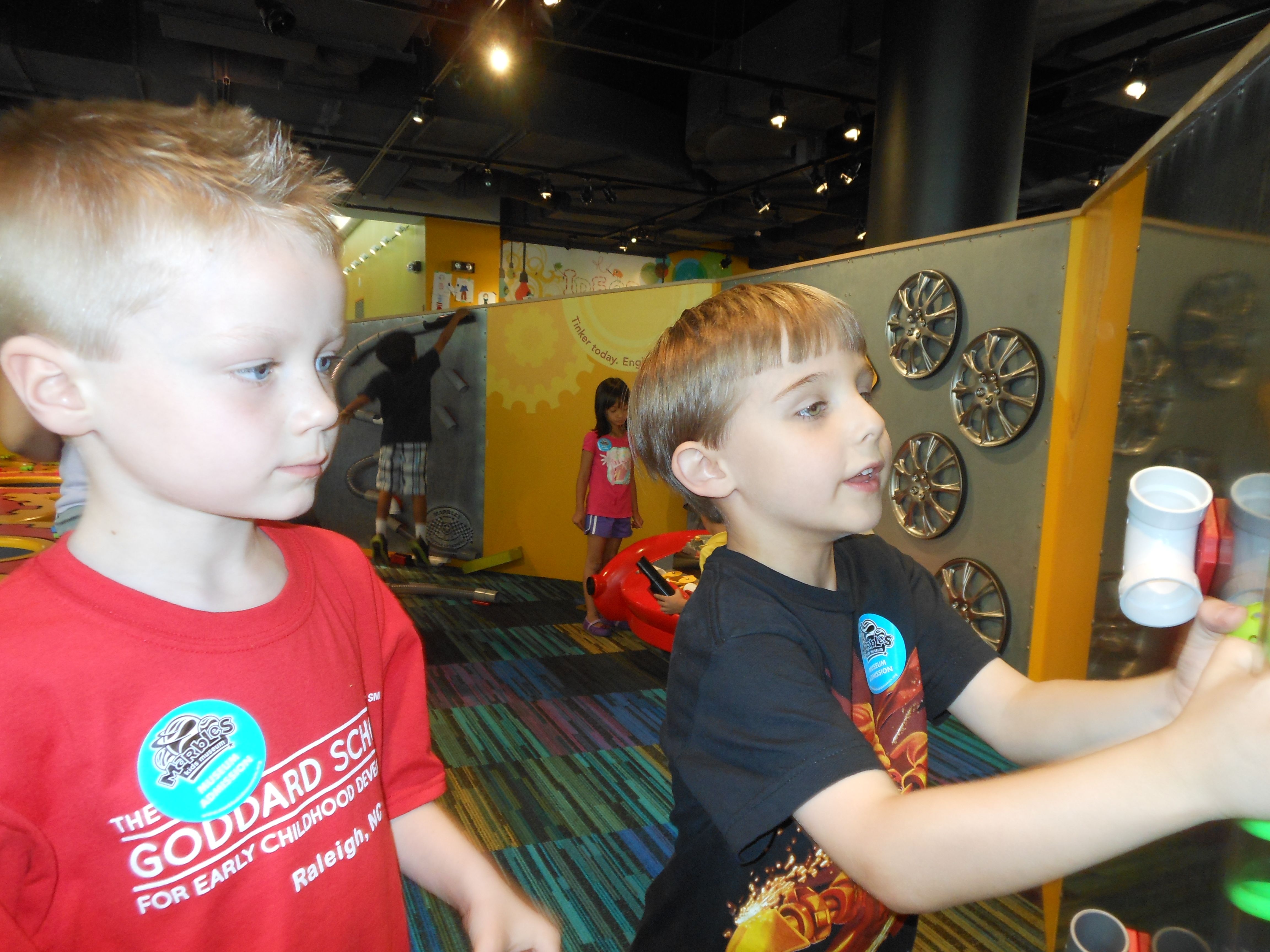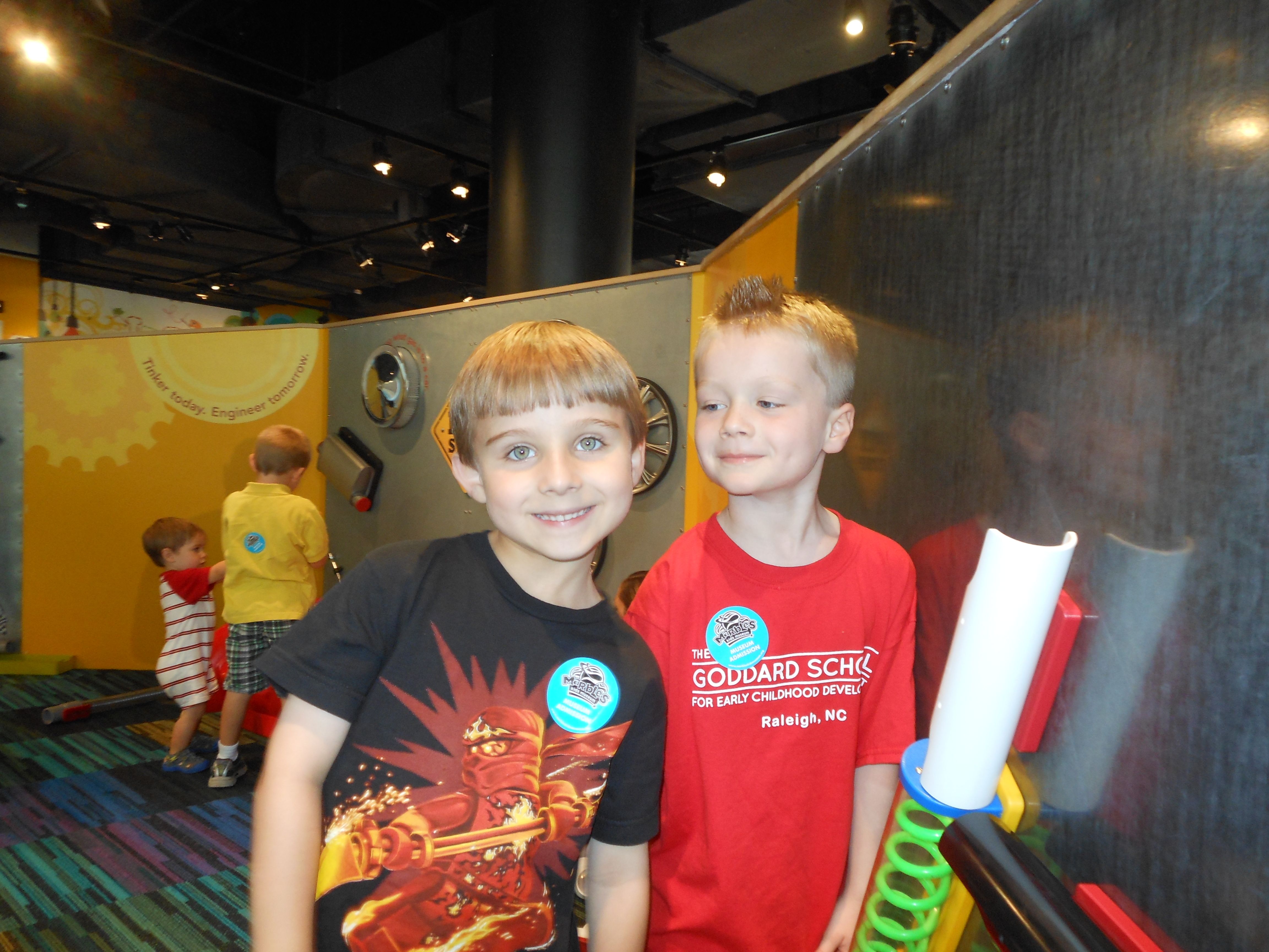 Woo! It was another big day at Marbles Kids Museum. It was Goddard School day, so our admission was covered (sweet!) Also there’s a new healthy eating exhibit sponsored by the Goddard School, so that was cool to see. Our school’s owners were there, and lots of familiar faces from school. Brian was super excited that Ty was there, and they played together most of the time. Kendall enjoyed pretty much everything, the kitchen and the ambulance were highlights. Brian and Ty spent a lot of time at the Pizza Parlor, the K-Nex, and marble run. Going to Marbles is always a ton of fun (but sort of exhausting, too!)
