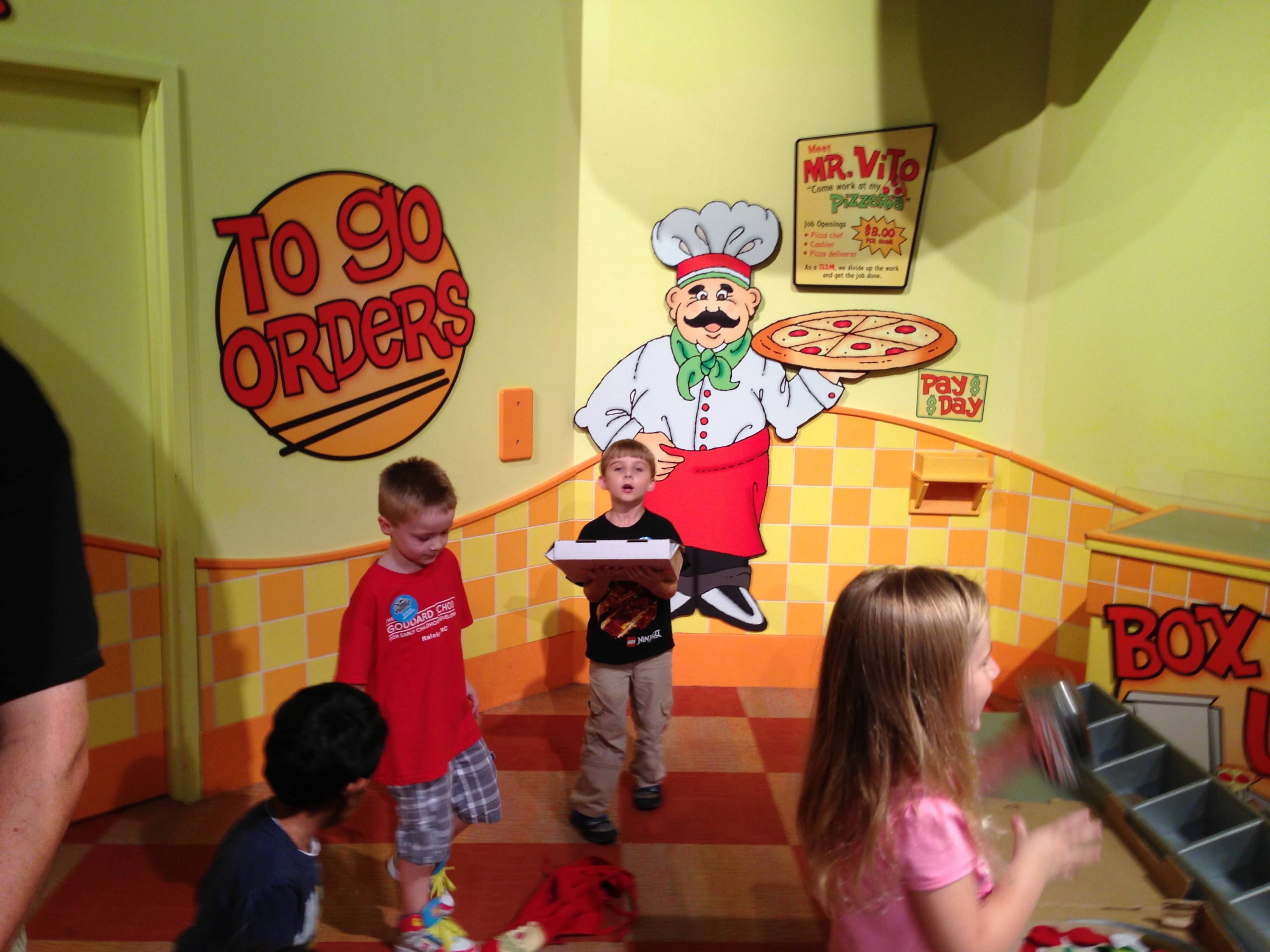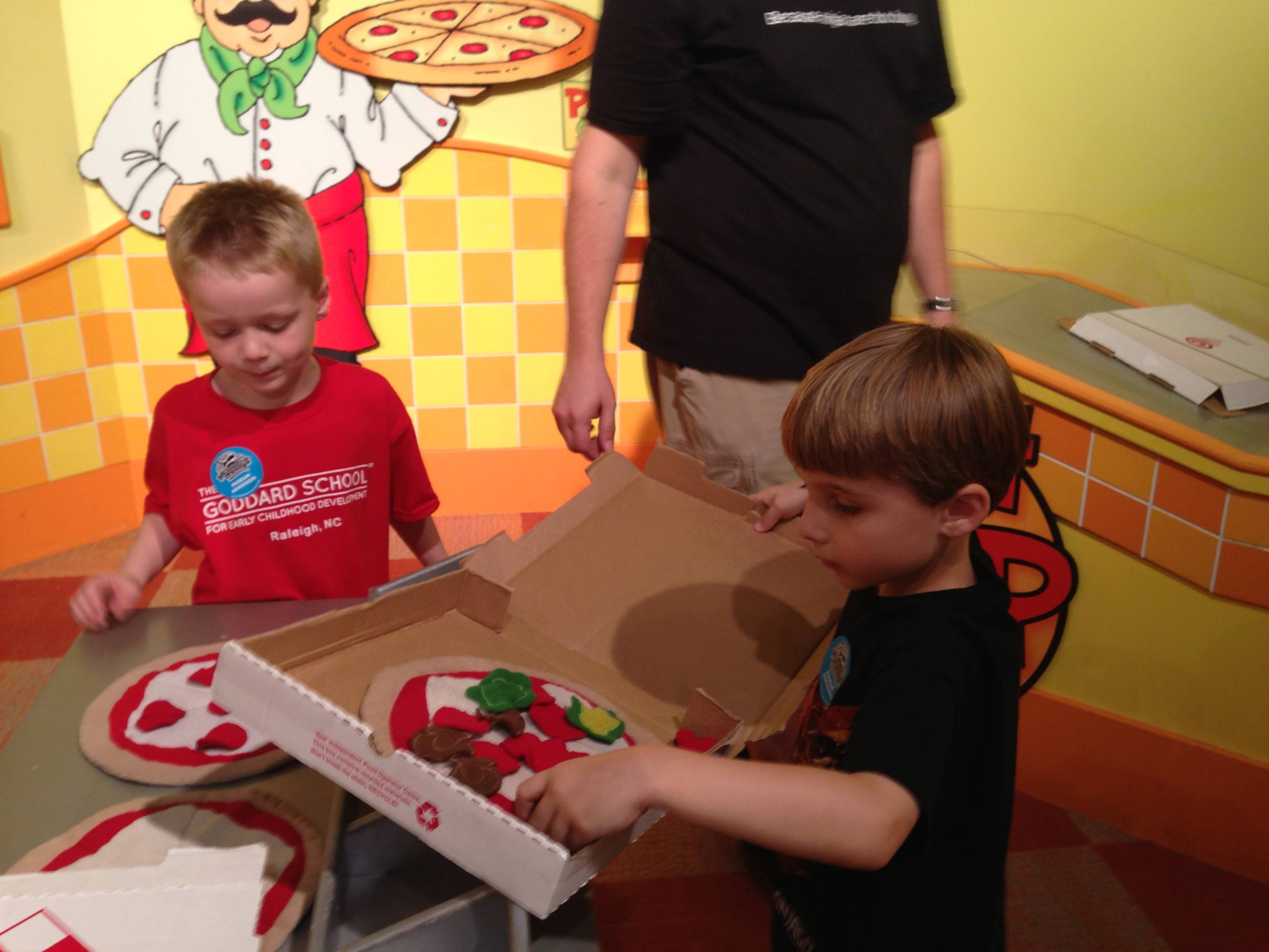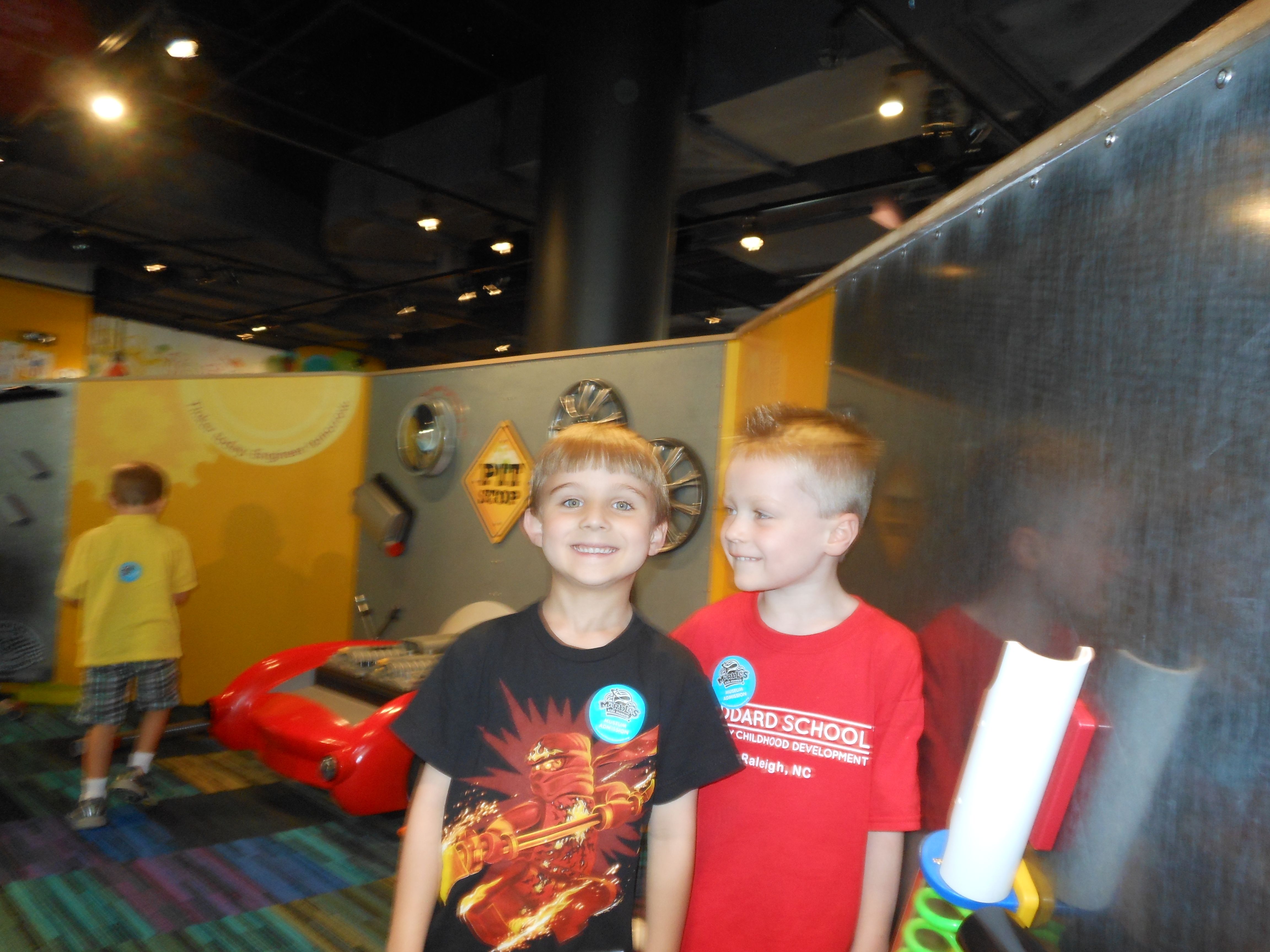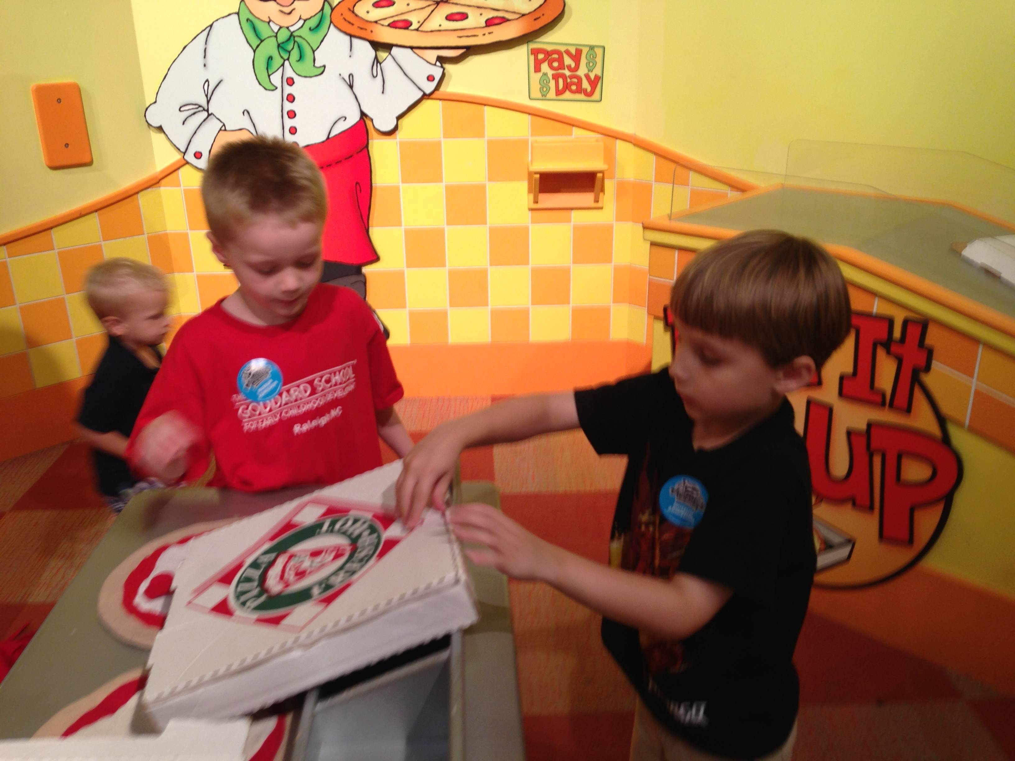 Woo! It was another big day at Marbles Kids Museum. It was Goddard School day, so our admission was covered (sweet!) Also there’s a new healthy eating exhibit sponsored by the Goddard School, so that was cool to see. Our school’s owners were there, and lots of familiar faces from school. Brian was super excited that Ty was there, and they played together most of the time. Kendall enjoyed pretty much everything, the kitchen and the ambulance were highlights. Brian and Ty spent a lot of time at the Pizza Parlor, the K-Nex, and marble run. Going to Marbles is always a ton of fun (but sort of exhausting, too!)