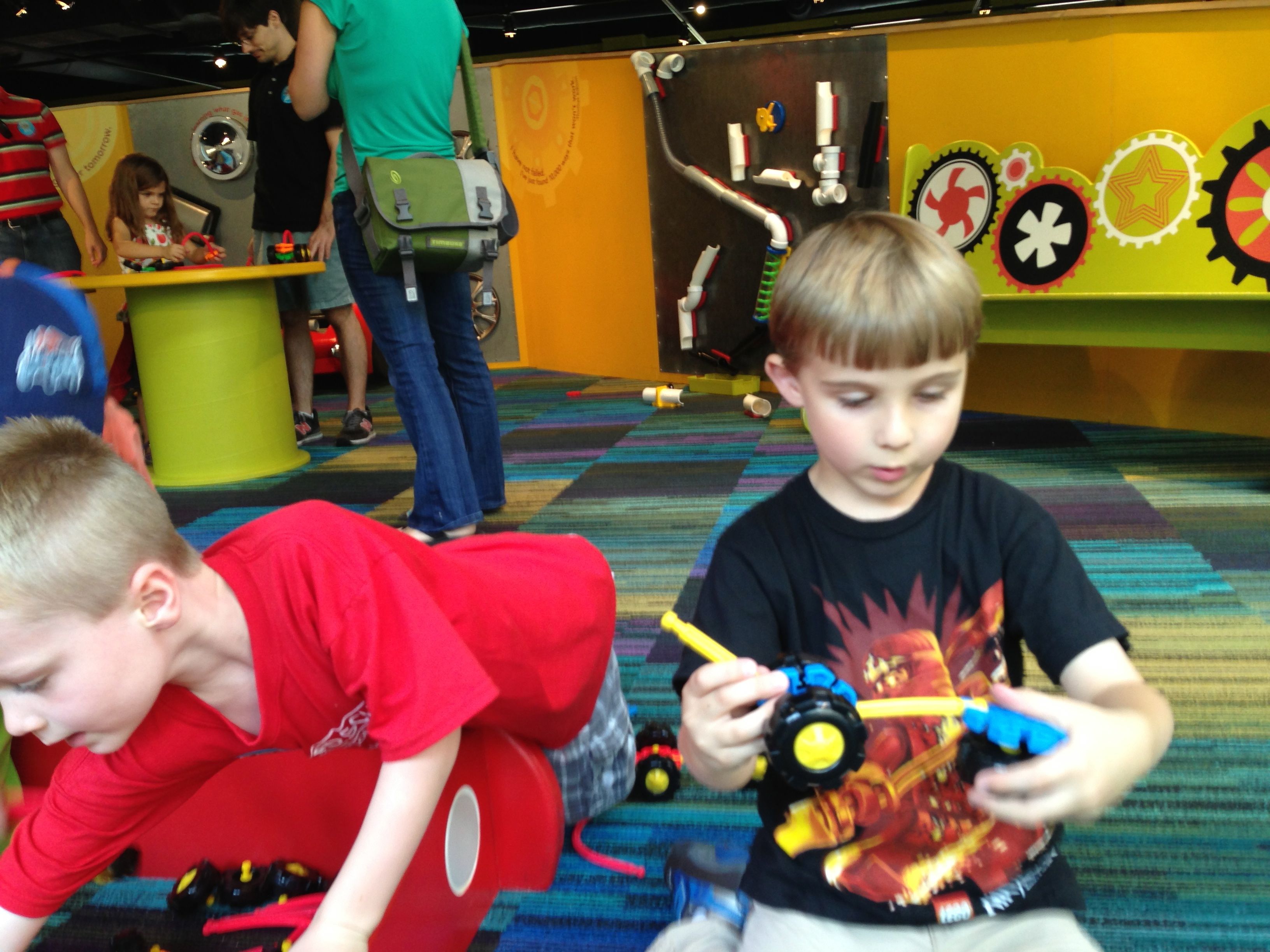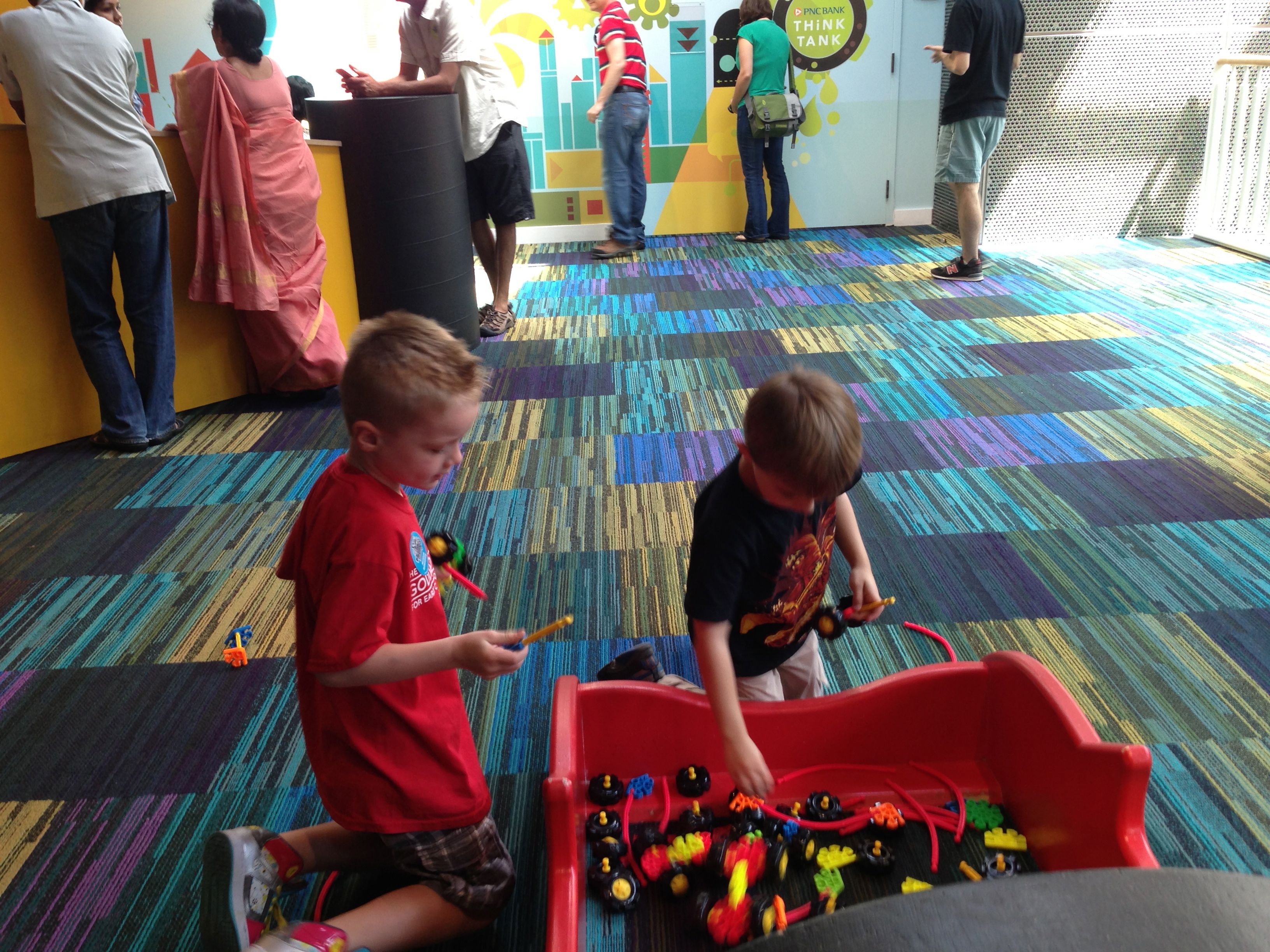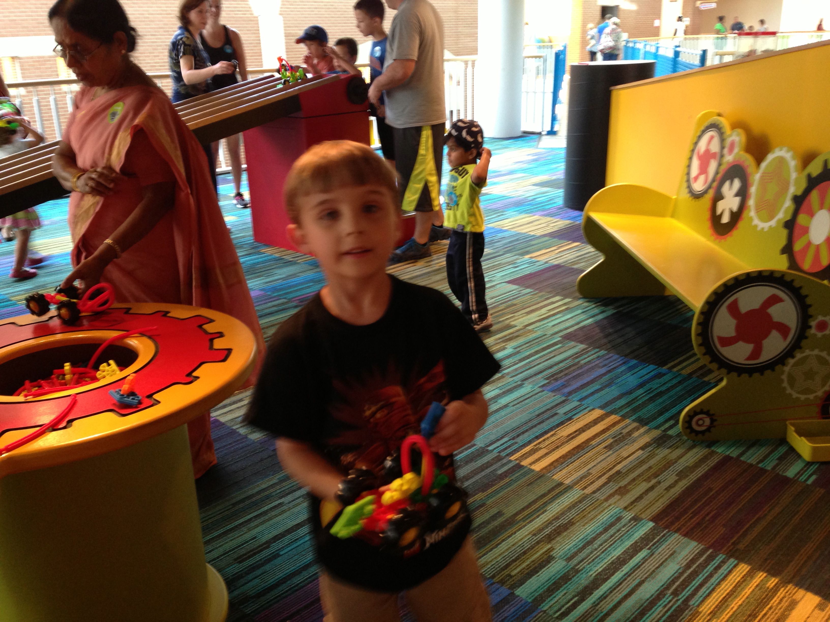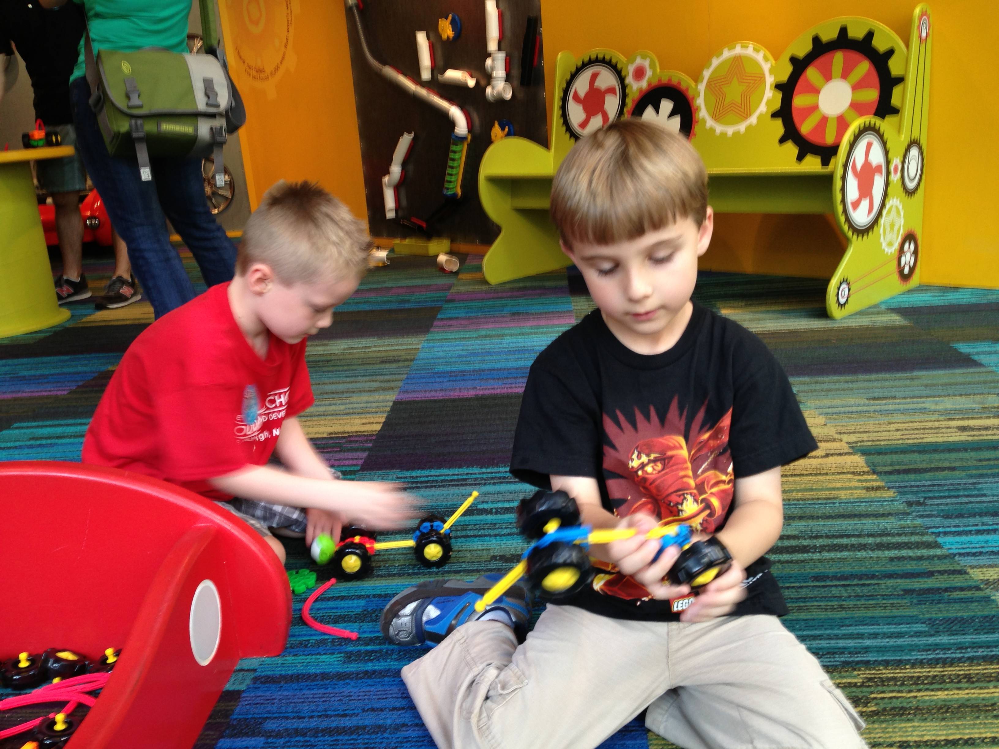 Woo! It was another big day at Marbles Kids Museum. It was Goddard School day, so our admission was covered (sweet!) Also there’s a new healthy eating exhibit sponsored by the Goddard School, so that was cool to see. Our school’s owners were there, and lots of familiar faces from school. Brian was super excited that Ty was there, and they played together most of the time. Kendall enjoyed pretty much everything, the kitchen and the ambulance were highlights. Brian and Ty spent a lot of time at the Pizza Parlor, the K-Nex, and marble run. Going to Marbles is always a ton of fun (but sort of exhausting, too!)