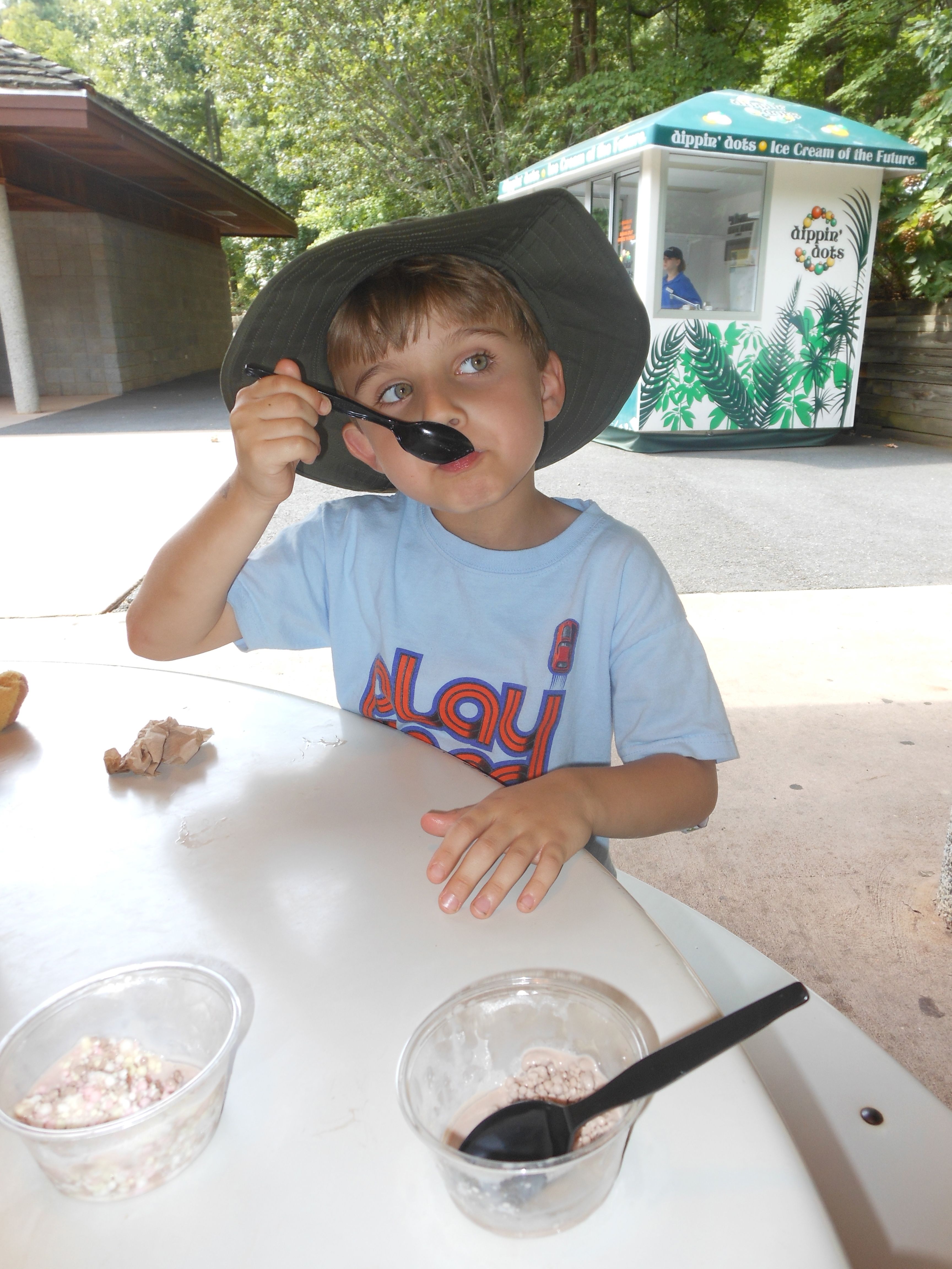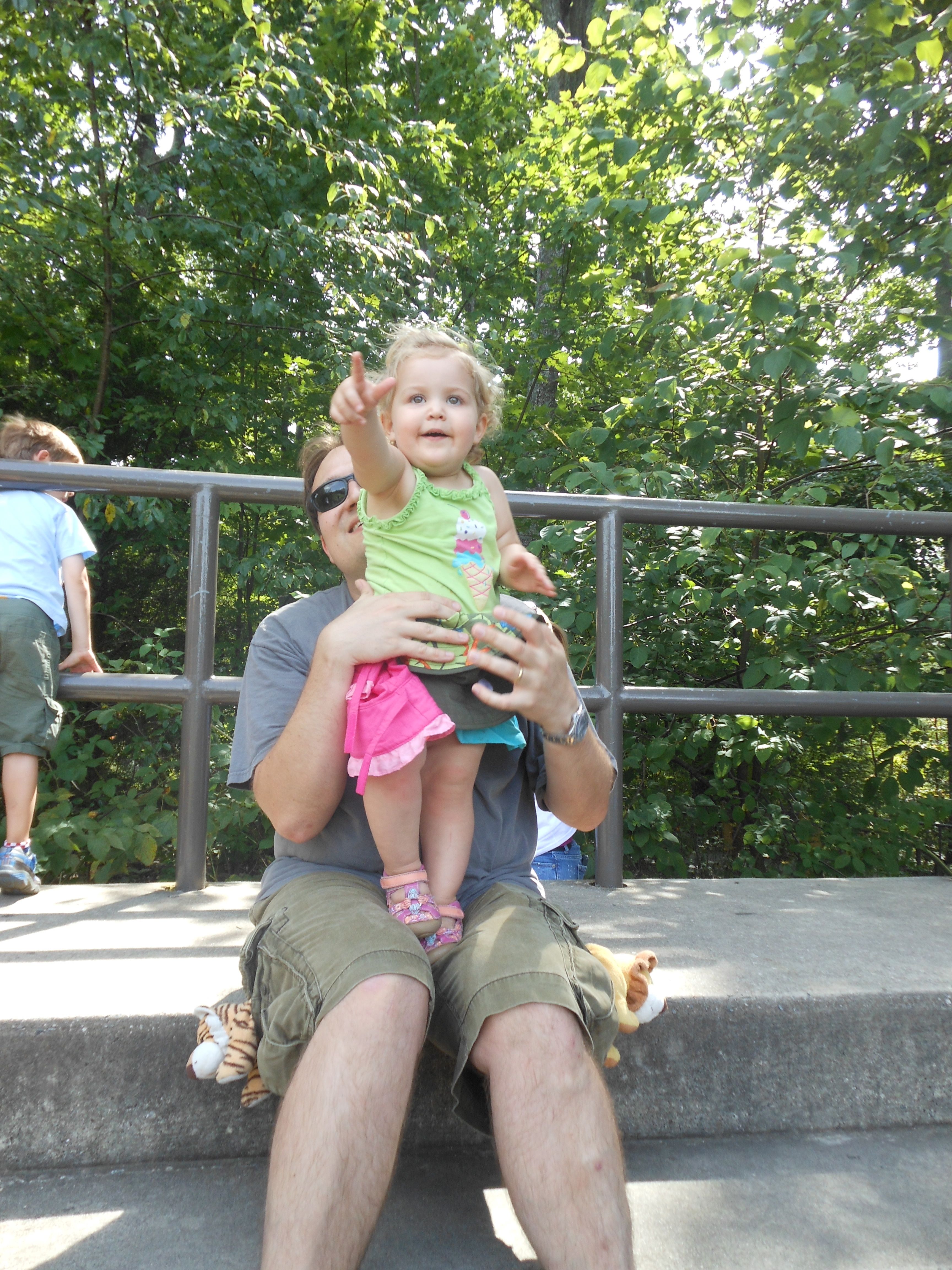 Today we packed up and hit the road early to visit the zoo! The kids watched Star Wars on the drive, and then we set out to explore. It was a really hot day, but we still visited all of our usual stops along the trail. I was happy to see my favorites, the ocelot, the bobcat, and the otters. Kendall seemed to be really interested in the grizzly bear, saying “bear” a few times (mostly before I was recording, of course) and of course everyone loves the zebras and giraffes. A new favorite today was the puffin exhibit. It was so amazing to see them “flying” underwater, very relaxing to watch (plus their habitat is quite cool, and dark–totally worth the fishy smell to get out of the heat!) We had a nice pizza lunch, rode the tram and the zebra bus, had Dippin’ Dots for a treat, took a break to watch the geyser, and even fit in some playground time. The harbor seals really put on a show for us, it was so cool to see them up close. We did the obligatory gift shop visit, and the kids chose the big fuzzy snakes as their prize. Can’t say those would have been my first choice, but, they seemed really into them, so, we went with it. 😉