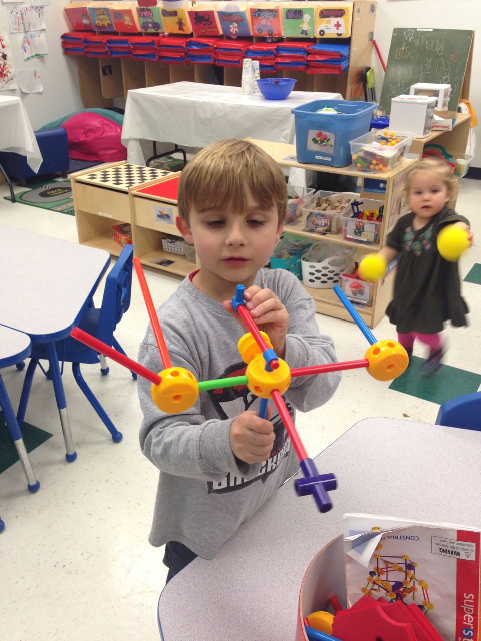 Sometimes Brian insists upon going inside Goddard School, if we end up picking him up first!  Today was one of those days, but for a special reason–a Goddard school Thanksgiving party!  We had a nice meal with some of the other families, and Brian was very happy to play with some of his old favorites!  Tinker toys never get old, do they?