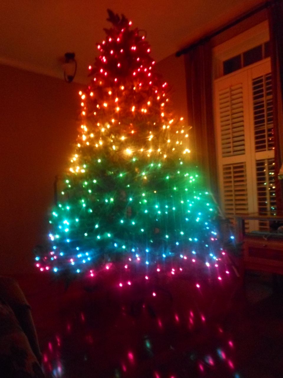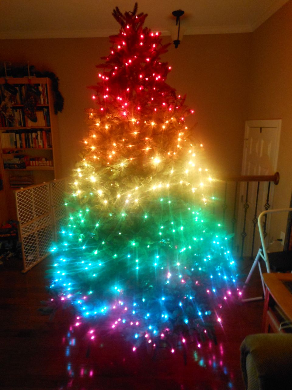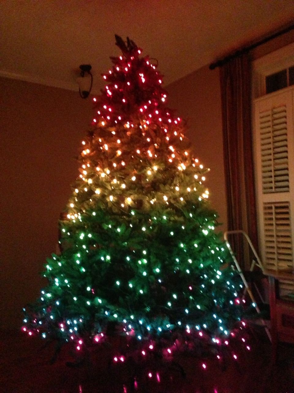 We put our Christmas tree up today! Although, we had another rude awakening this year–all three extra-long, heavy-duty multicolored strings of lights that we’d had for years had stopped working. So now, not only is our tree no longer pre-lit, (the original lights previously painstakingly removed by Brandon..) Our backup-plan lights are a no-go (even after a valiant effort at fixing them, by Brandon). So, we improvised! Years ago, when we were heavy into our dinner-parties-and-entertaining phase, I’d bought strings of lights in just about every color you could imagine, thinking I’d use them for themed parties. Purple, amber, and green for Mardi Gras, red white and blue for July 4th, and so on. We hadn’t used those lights in quite awhile, but we ran the idea of a rainbow tree by the kids, and they loved the idea! So, we embarked on our plan, and we were all quite pleased with the results! We had hoped to get it decorated today as well, but, that just leaves more fun for tomorrow, I guess! Plus, the rainbow tree looks pretty fabulous all by itself. 😉 Also included, some pictures of the kids doing some blessedly quiet workbook activities.