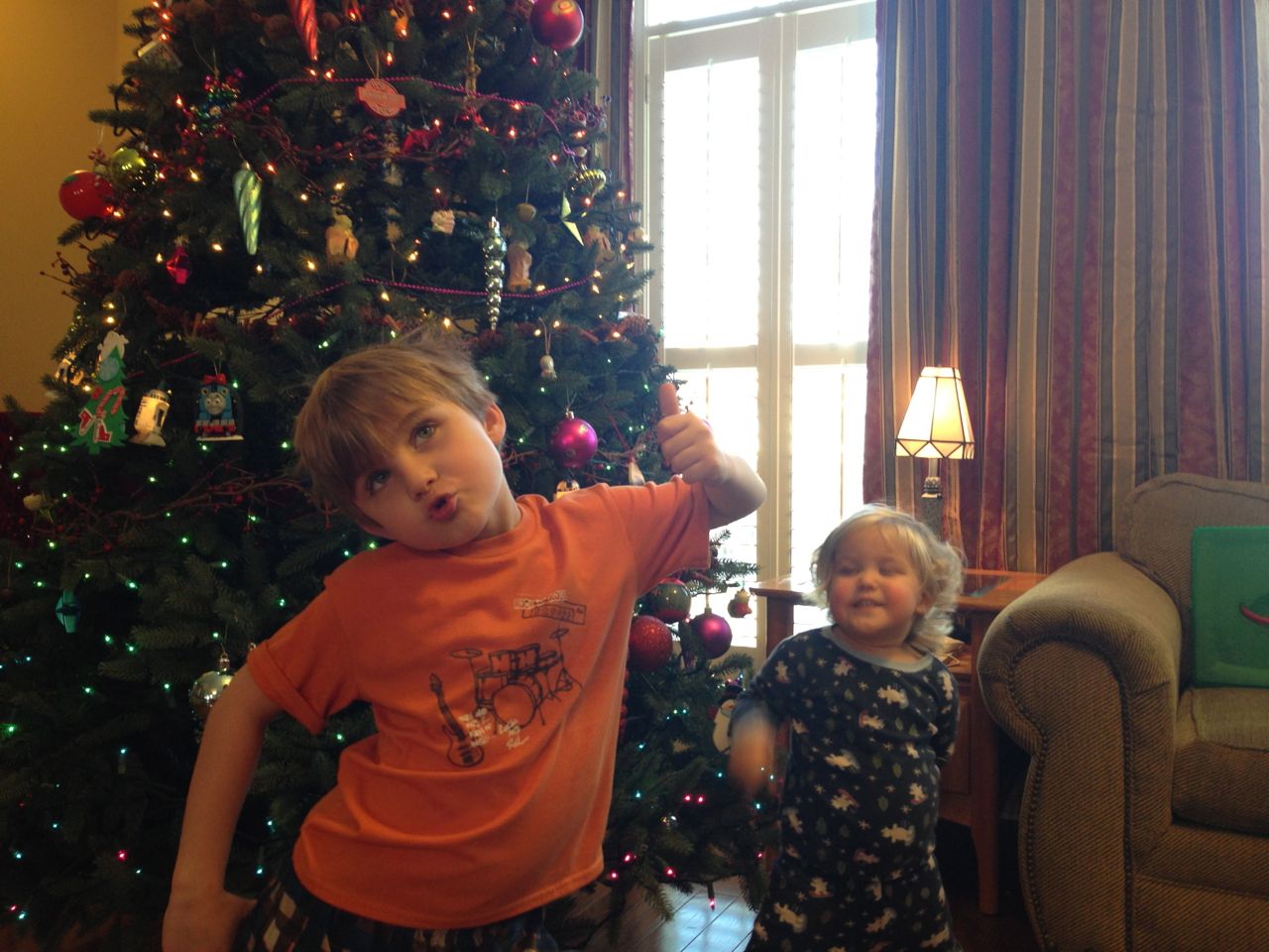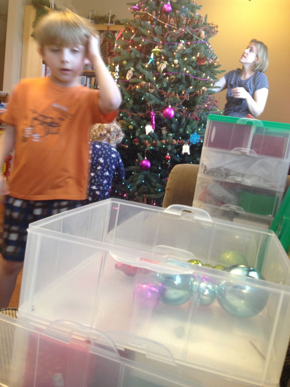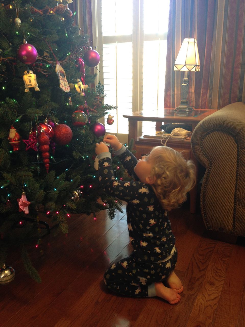 We finished up our Thanksgiving break today by being very industrious, even though we stayed in our PJs past noon! We managed to get the tree decorated fully, with the train underneath and all. Brian loves these Mameshiba characters so much right now, he made his own Mameshiba ornament! He drew a very nice edamame. 🙂 I got the motivation to do a bit of cooking, and made a lovely homemade chicken soup, totally from scratch, including a whole chicken. At the same time, I made a big crock pot full of beef stew. We’ll be set for a few meals this week, plus some to set by in the freezer. I used these tiny star-shaped pasta called stelline in the chicken soup–I showed them to Kendall (who was watching me as I cooked) and she wanted to touch them. I put a few on the table, and to my surprise, she ate them up, uncooked and all! Silly girl. She did like them better in the soup, I think!