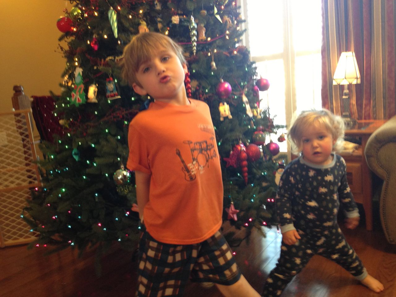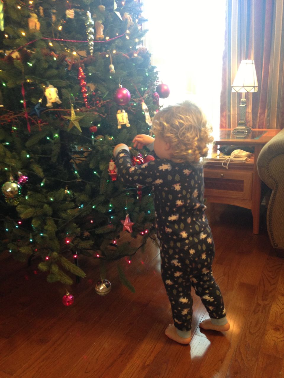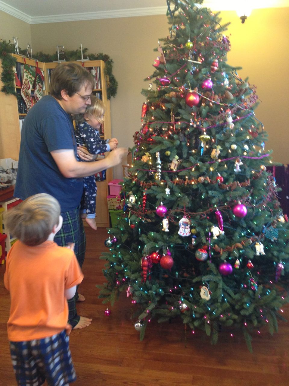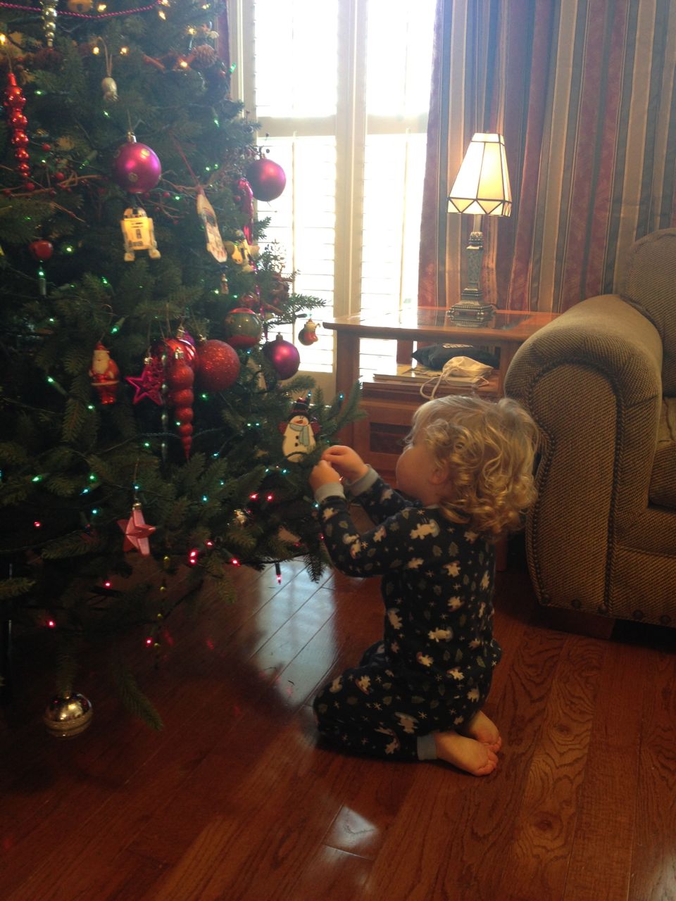 We finished up our Thanksgiving break today by being very industrious, even though we stayed in our PJs past noon! We managed to get the tree decorated fully, with the train underneath and all. Brian loves these Mameshiba characters so much right now, he made his own Mameshiba ornament! He drew a very nice edamame. 🙂 I got the motivation to do a bit of cooking, and made a lovely homemade chicken soup, totally from scratch, including a whole chicken. At the same time, I made a big crock pot full of beef stew. We’ll be set for a few meals this week, plus some to set by in the freezer. I used these tiny star-shaped pasta called stelline in the chicken soup–I showed them to Kendall (who was watching me as I cooked) and she wanted to touch them. I put a few on the table, and to my surprise, she ate them up, uncooked and all! Silly girl. She did like them better in the soup, I think!