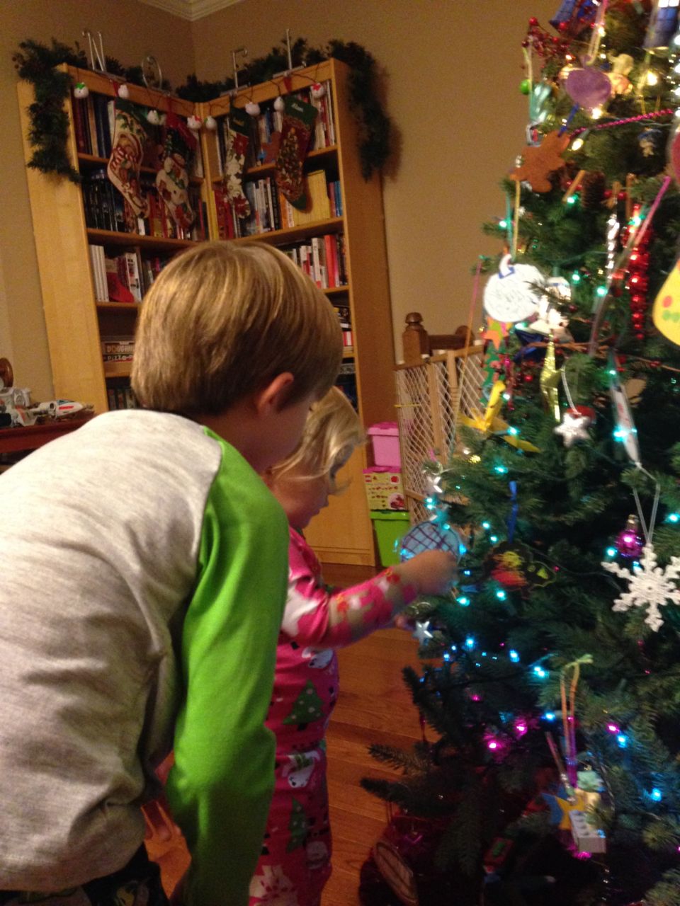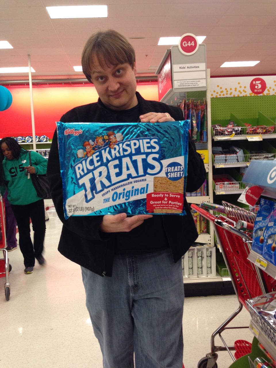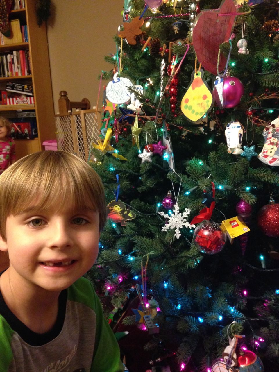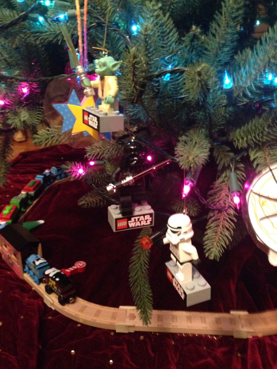 The kids really enjoyed the Christmas tree today! They love the new Lego Star Wars Hallmark ornaments, and the Thomas train is always a hit. We went to Target, and let them get a set of small star ornaments to add to the tree, and they had a great time decorating with them. Brandon was surprised by the gigantic rice crispies treat–we didn’t buy it, but still, whoa. 😉