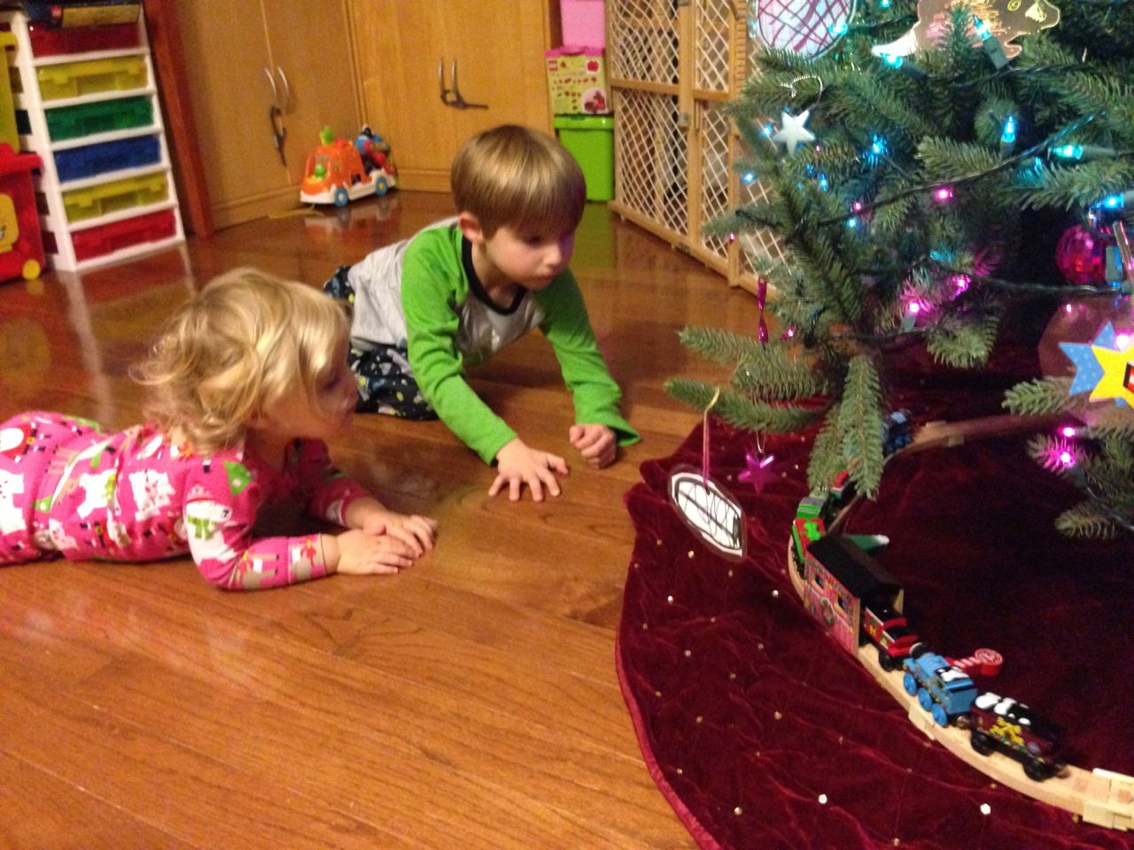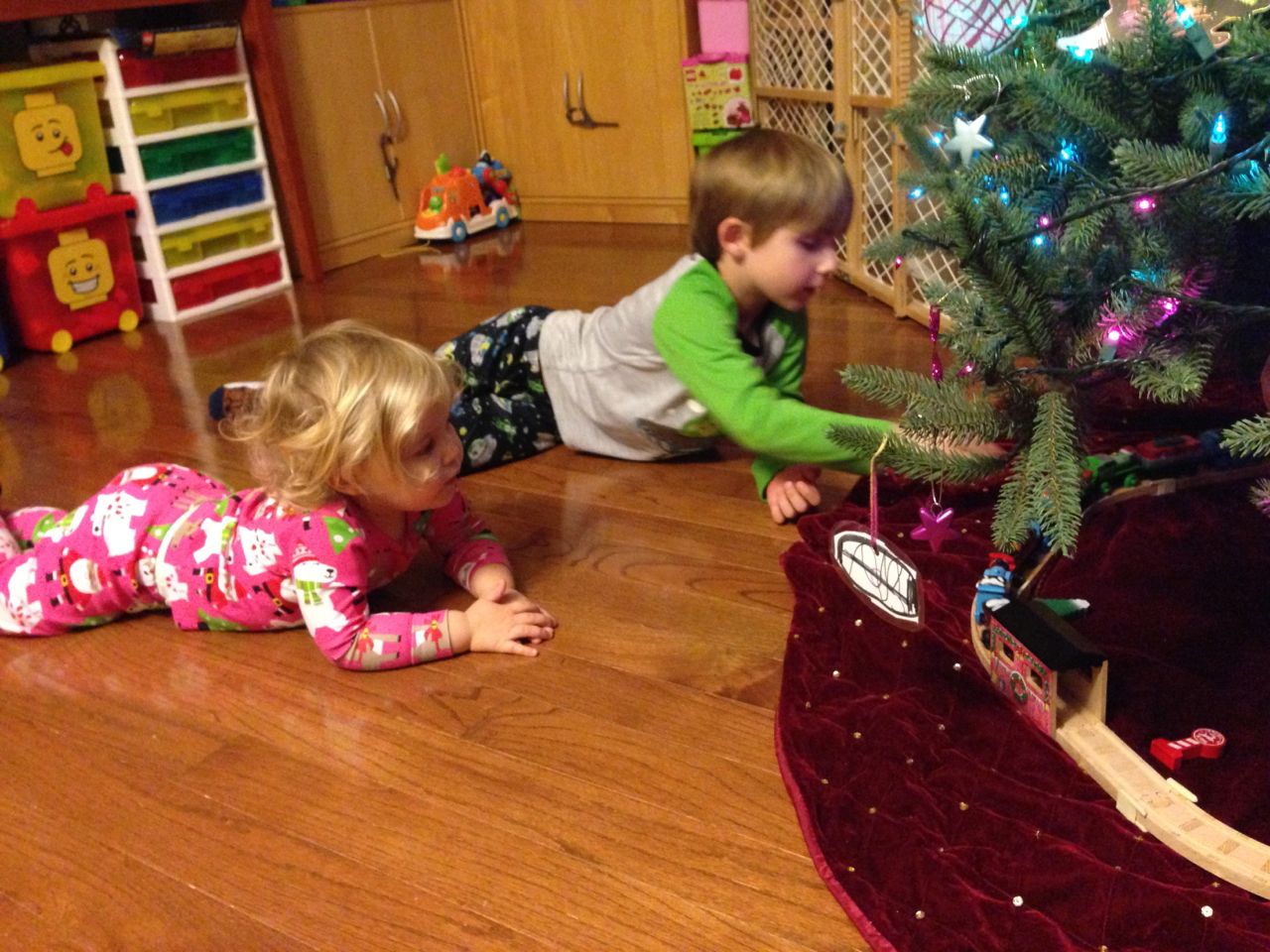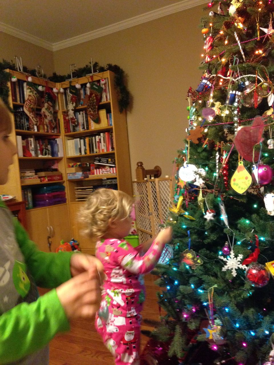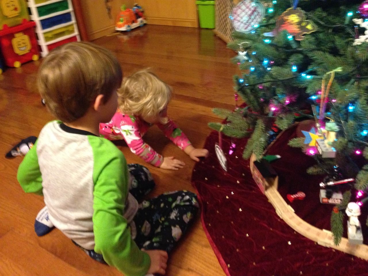 The kids really enjoyed the Christmas tree today! They love the new Lego Star Wars Hallmark ornaments, and the Thomas train is always a hit. We went to Target, and let them get a set of small star ornaments to add to the tree, and they had a great time decorating with them. Brandon was surprised by the gigantic rice crispies treat–we didn’t buy it, but still, whoa. 😉