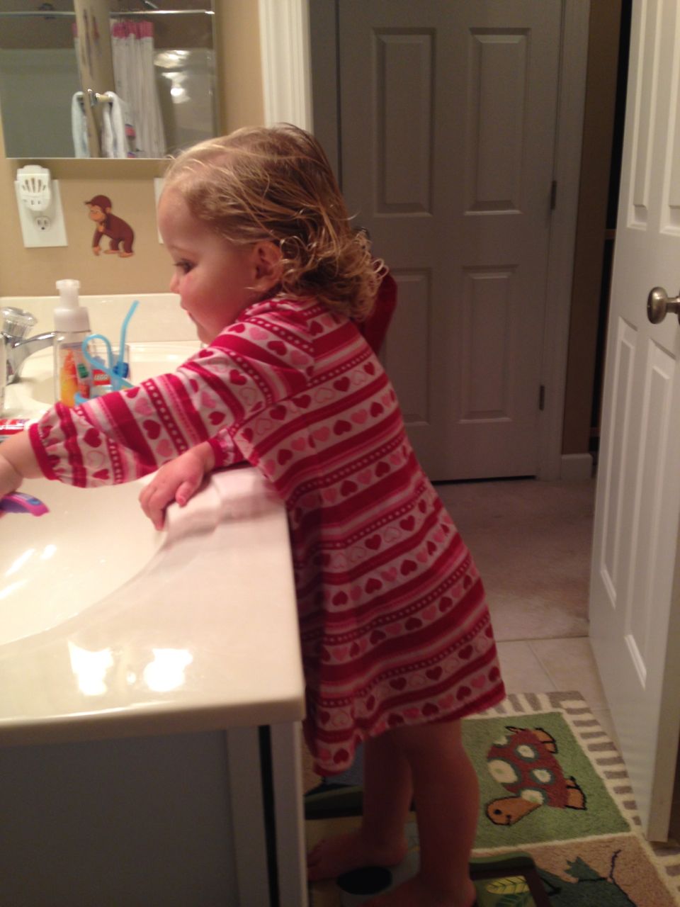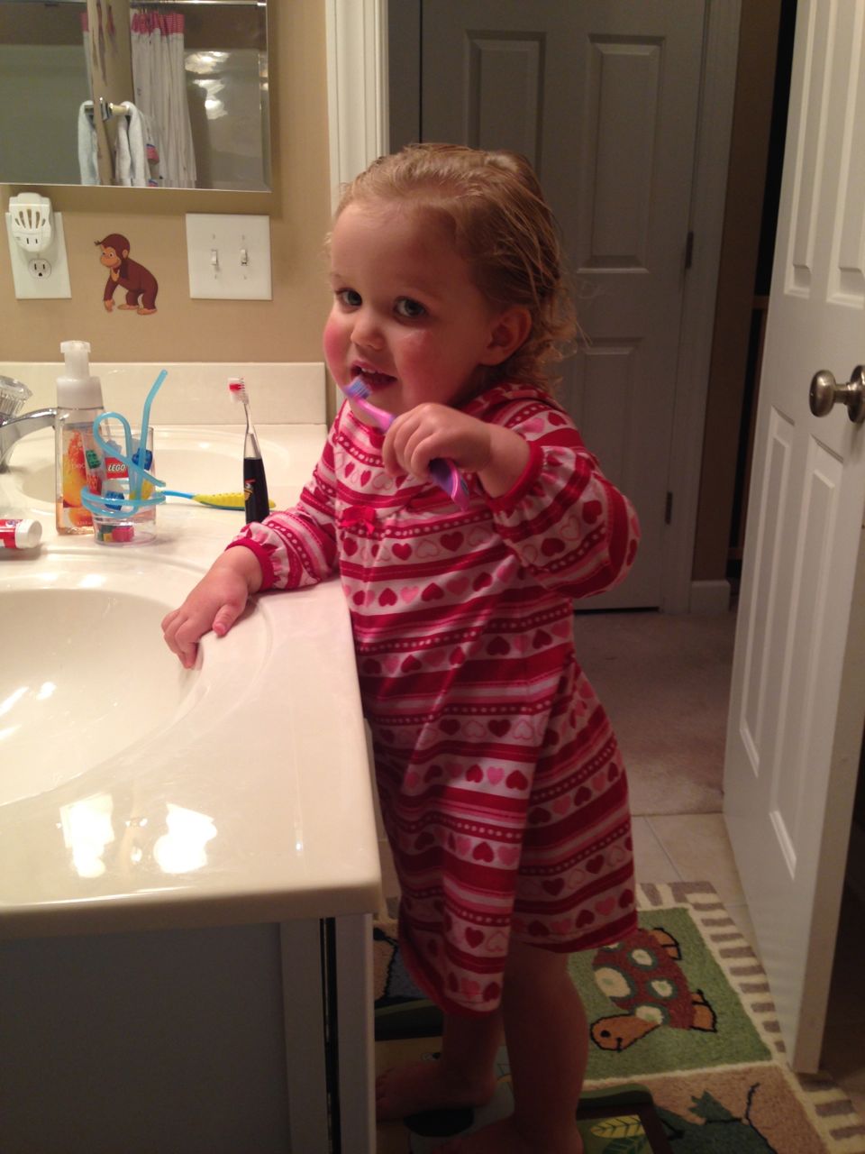 Your paintings have such fine details, Brian. Kendall, such a big girl brushing your teeth.