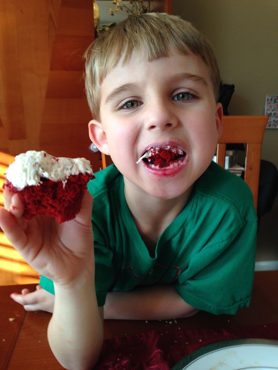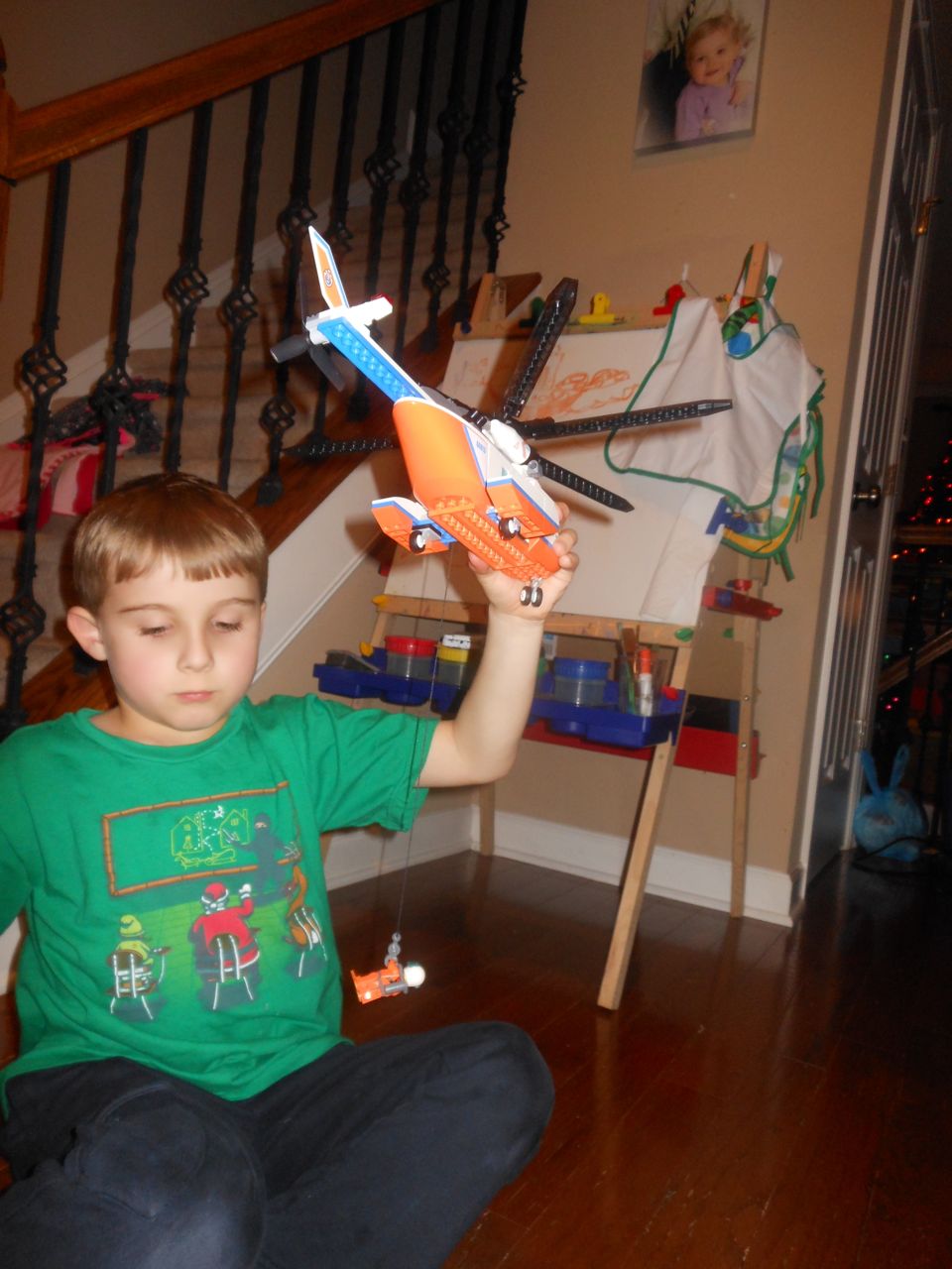 After presents, Brian begged and begged for Nana and Sytse to play hockey with him, so we all went downstairs to play for awhile. I gave Brandon one of his more “gag” gifts–a Star Wars sweatshirt styled like one of those ugly holiday sweaters! I thought it was pretty darn awesome, but I didn’t know if Brandon would like it as much as I do–luckily, he thought it was great, and appreciated the details like I do. 🙂 Soon after that, Nana and Sytse had to leave, and Brian was a little disappointed that they didn’t stay for dessert. I was, too–because of the mix-up at Whole Foods I’d ended up with two cherry pies! Kendall headed off to her nap, and Brian got to enjoy a red velvet cupcake from Nana–pretty awesome! After that, Brian wanted to start building his new Lego City Coast Guard Helicopter set, and I couldn’t think of a reason why not, so we went for it. He built it almost entirely by himself! It has a cool windsurfer guy and a special white shark (usually Lego sharks are gray!) We’re telling ourselves that it’s a Great White shark. Since Brian had the build well in hand, I pained my nails with some wacky red and green glitter so I could feel a little festive. Brandon and I thought we’d have some coffee and a cupcake of our own, and to our horror, we discovered that our little K-cup brewer was no longer working. We started wigging out, since tomorrow is Christmas, and Roger is going to arrive! We thought that arriving to a busted coffee maker, after dealing with all the other indignities of air travel, would just be too much to subject Roger to, so, we started thinking of options real fast. We had only an hour or so until the stores started closing for the holiday, so I grabbed my Christmas cash from Rosemary and rushed out to Target. That’s a new one for me, hitting a store during the last hour of shopping on Christmas Eve–it was… Surreal. But in any case, I rushed to the Keurig aisle, and I may have done a little end-zone-style celebrating after I lifted the very last coffee maker into my cart. Whew! Christmas is saved, there will be convenient coffee for all (plus, we got the upgraded model with the reservoir, so it’ll be even faster now.) 😉
