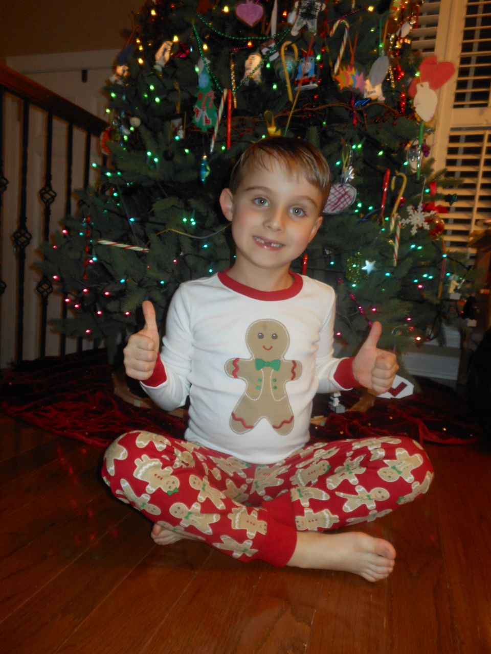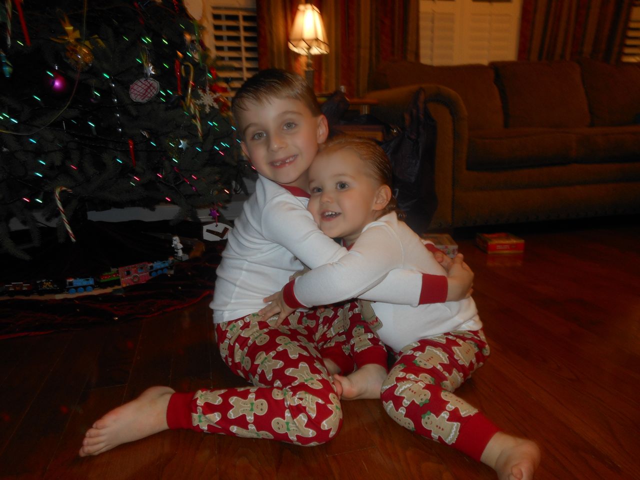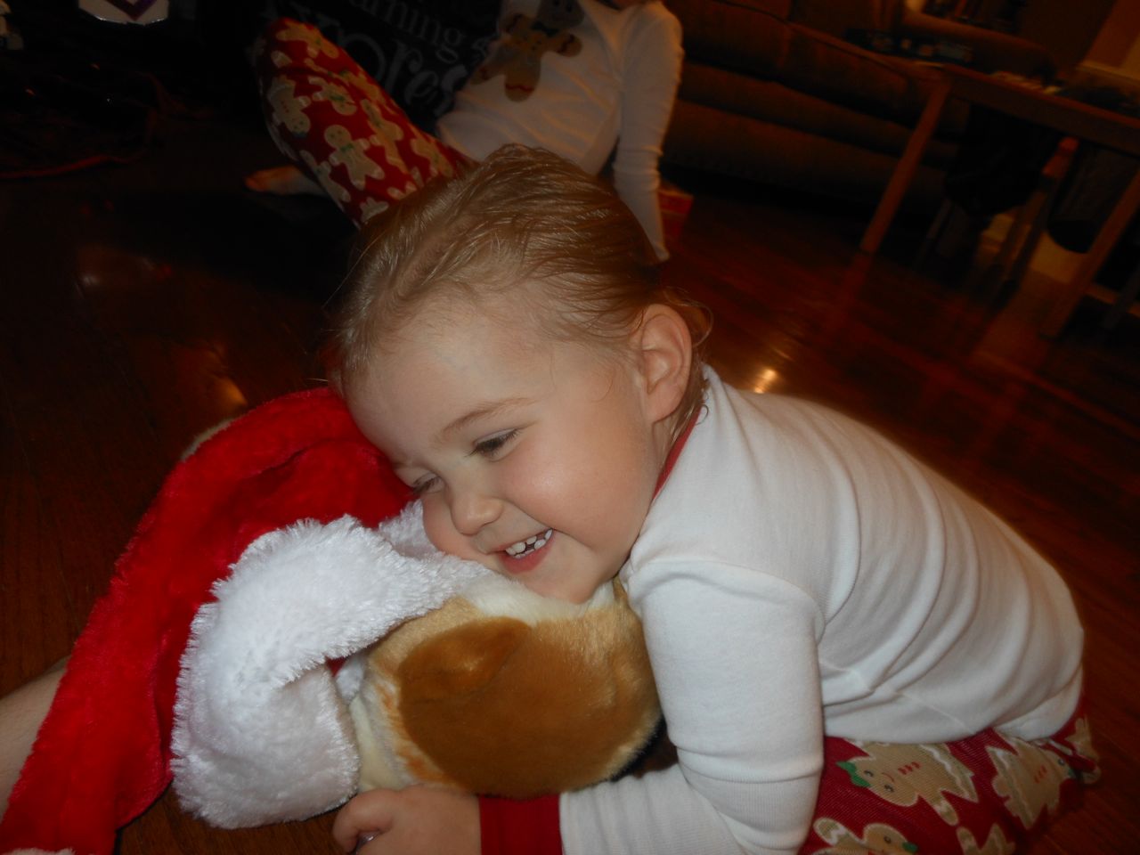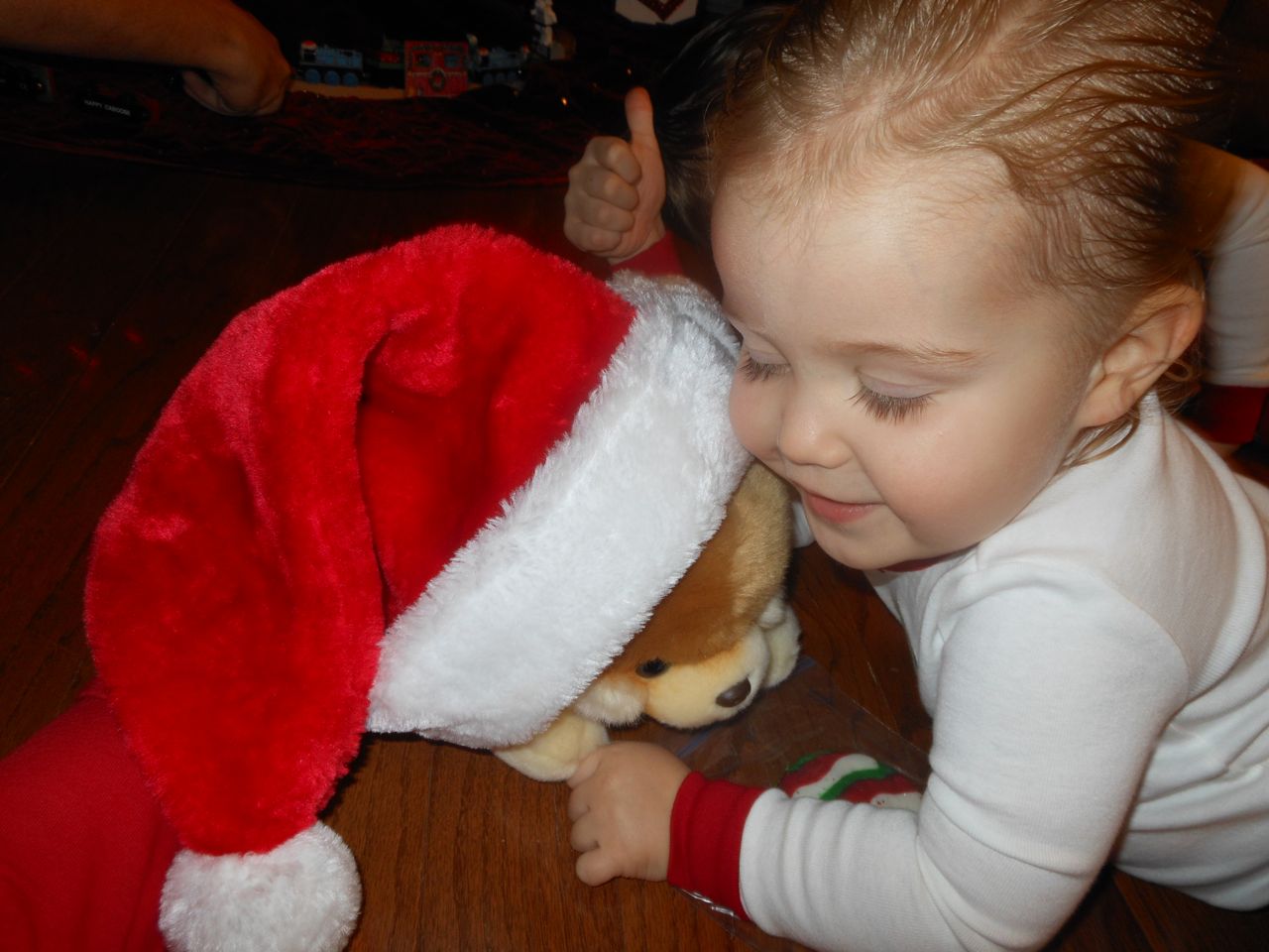 Eventually, even we started questioning our parenting, letting the kids stay up late and have all this sugar..! So we shuffled everyone back upstairs, brushed teeth really well, and then read some of our traditional Christmas Eve books, including the copy of Twas The Night Before Christmas that I read when I was a kid. Kendall was absolutely wild, thanks to the sugar, the excitement, and the lateness of the hour, but still really cute. 😉 It was a challenge, but we finally got the kids settled, and warned them that there is to be absolutely no sneaking downstairs in the morning without us!