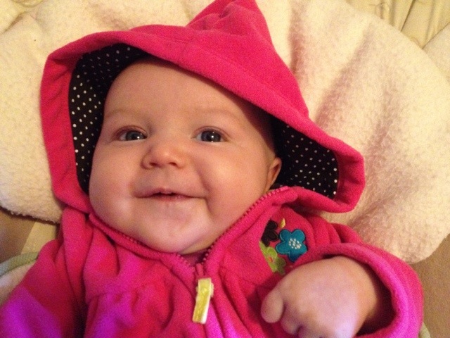 Kendall has started smiling while she’s awake today! I haven’t yet been able to catch her with a really big grin, but here’s a little smile: