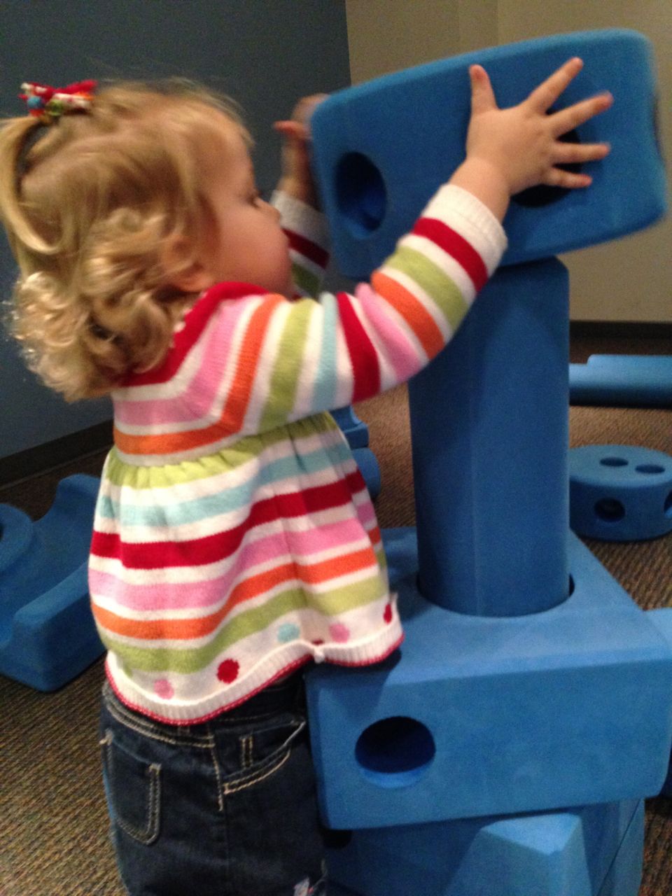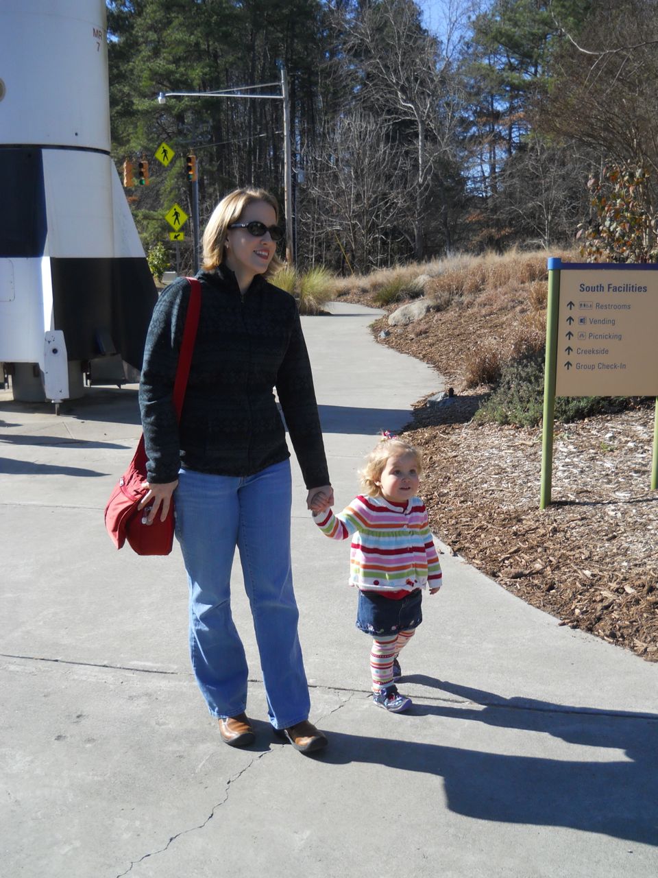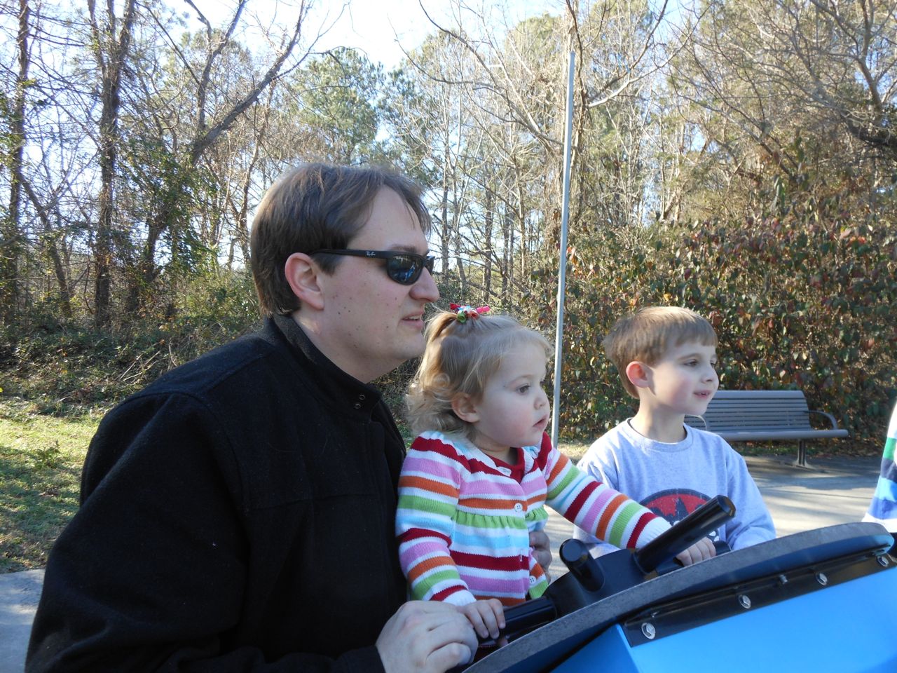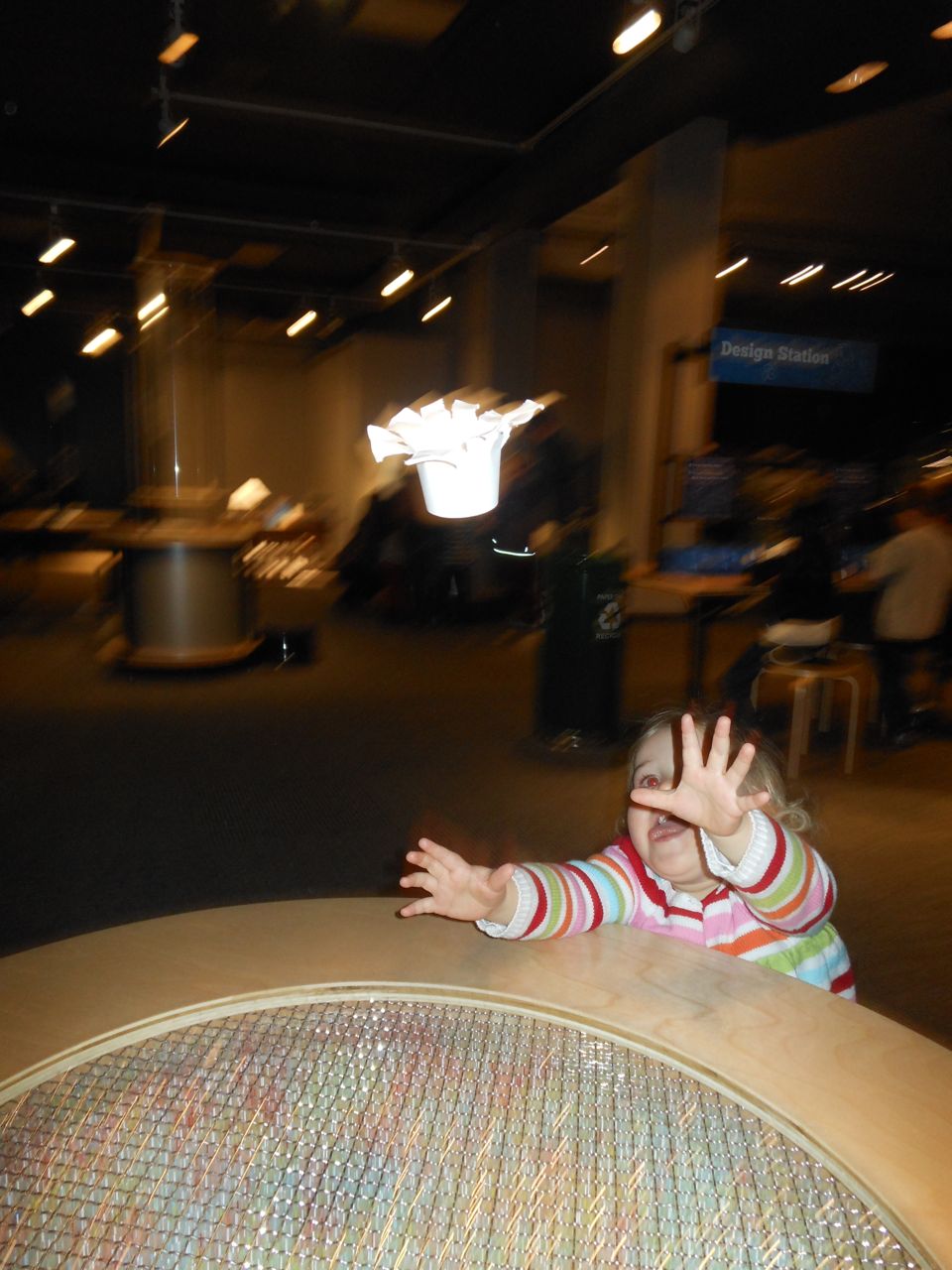 We felt like getting out today, so packed everyone up and headed to Durham’s Life+Science Museum. Kendall and Brian used the new Hello Kitty carseat blankets I made last night! The kids are pretty familiar with the museum at this point, and they had a great time showing Grandpa all of their favorite exhibits. The museum changes things up pretty regularly, so there were some new surprises in addition to some favorites. Brian still loves the boats, and Kendall still loves the mist/cloud maker and other weather-related exhibits. We visited the dinosaurs outside, even though it was chilly. The kids enjoyed building with the giant foam blocks, and Brian had a great time constructing a spaceship to test out at the wind column. We got lunch at the cafe (along with every other museum patron, it seemed!) and it was tasty, even if it took awhile. 😉 We stayed for a really long time, but eventually had to head home for Kendall’s nap. This evening, the boys went out to the hockey game, and I stayed home and played with Kendall. She had a great time cooking and shopping with the new play kitchen. She insisted on cuddling with Boba Fett at bedtime! He doesn’t look all that cuddly to me, but she just has to have him! Maybe I’ll see if there’s a softer version out there. 🙂