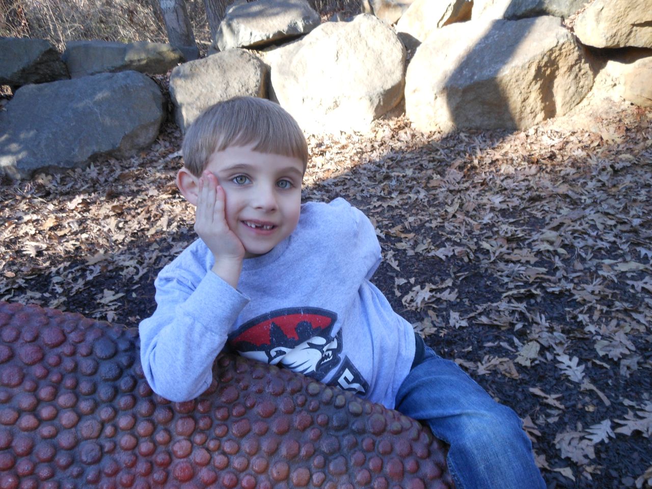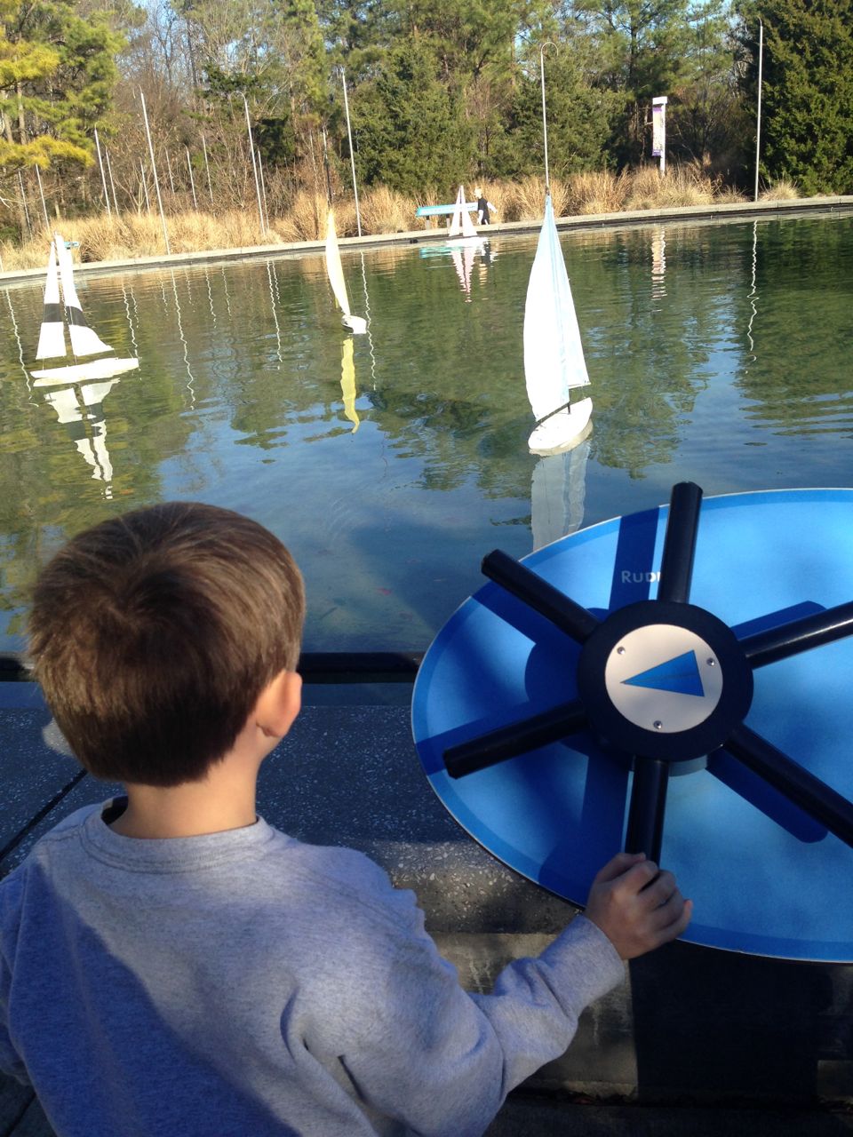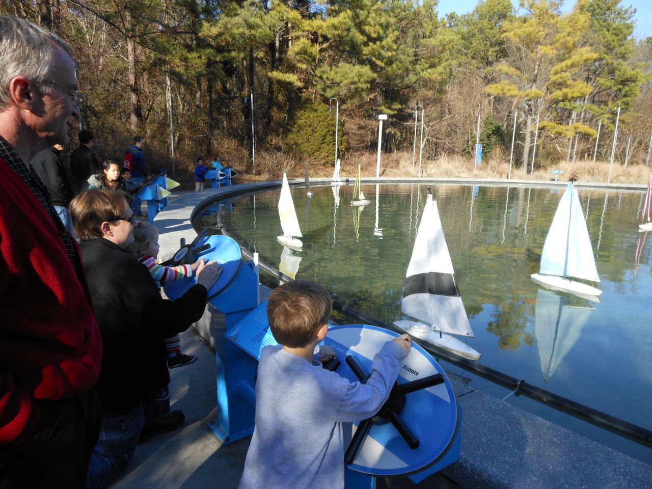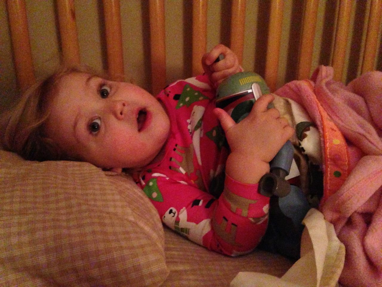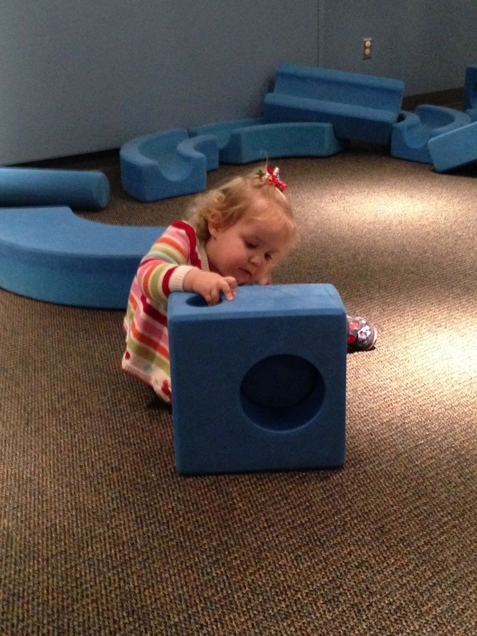 We felt like getting out today, so packed everyone up and headed to Durham’s Life+Science Museum. Kendall and Brian used the new Hello Kitty carseat blankets I made last night! The kids are pretty familiar with the museum at this point, and they had a great time showing Grandpa all of their favorite exhibits. The museum changes things up pretty regularly, so there were some new surprises in addition to some favorites. Brian still loves the boats, and Kendall still loves the mist/cloud maker and other weather-related exhibits. We visited the dinosaurs outside, even though it was chilly. The kids enjoyed building with the giant foam blocks, and Brian had a great time constructing a spaceship to test out at the wind column. We got lunch at the cafe (along with every other museum patron, it seemed!) and it was tasty, even if it took awhile. 😉 We stayed for a really long time, but eventually had to head home for Kendall’s nap. This evening, the boys went out to the hockey game, and I stayed home and played with Kendall. She had a great time cooking and shopping with the new play kitchen. She insisted on cuddling with Boba Fett at bedtime! He doesn’t look all that cuddly to me, but she just has to have him! Maybe I’ll see if there’s a softer version out there. 🙂