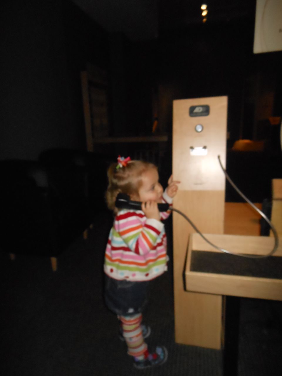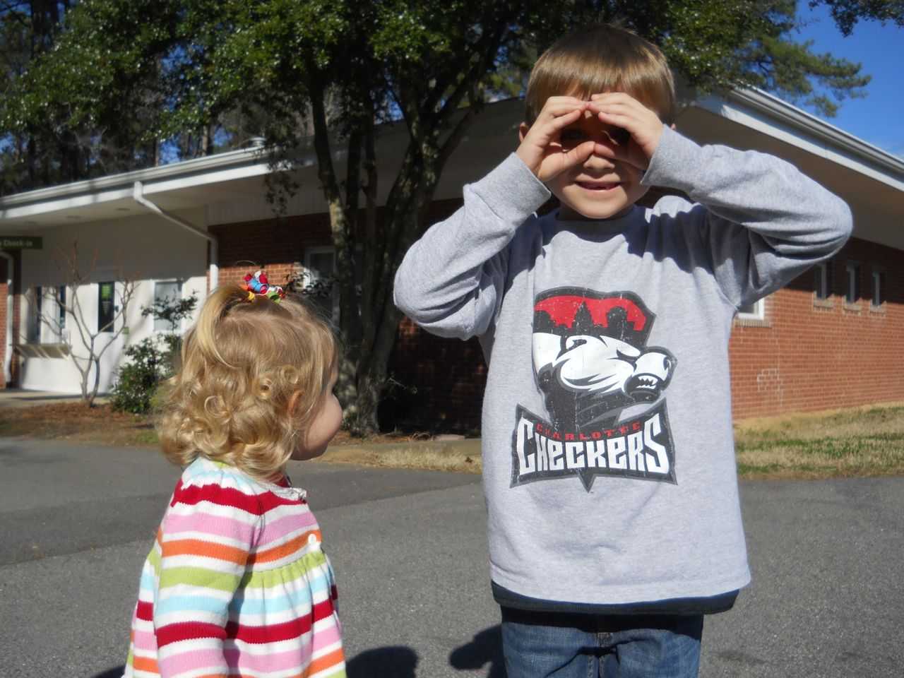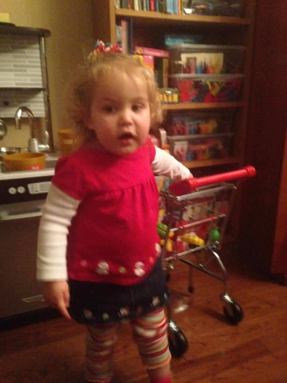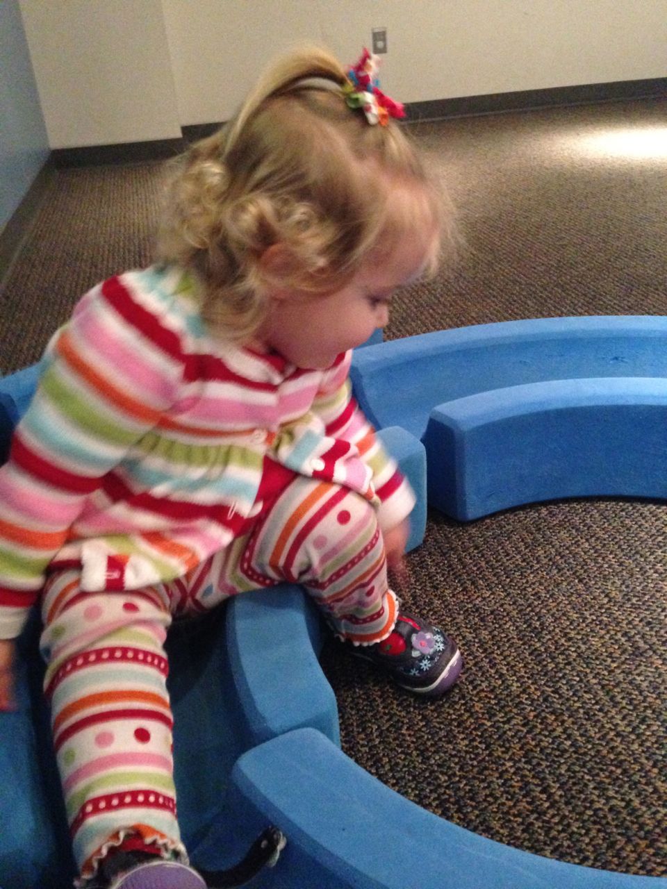 We felt like getting out today, so packed everyone up and headed to Durham’s Life+Science Museum. Kendall and Brian used the new Hello Kitty carseat blankets I made last night! The kids are pretty familiar with the museum at this point, and they had a great time showing Grandpa all of their favorite exhibits. The museum changes things up pretty regularly, so there were some new surprises in addition to some favorites. Brian still loves the boats, and Kendall still loves the mist/cloud maker and other weather-related exhibits. We visited the dinosaurs outside, even though it was chilly. The kids enjoyed building with the giant foam blocks, and Brian had a great time constructing a spaceship to test out at the wind column. We got lunch at the cafe (along with every other museum patron, it seemed!) and it was tasty, even if it took awhile. 😉 We stayed for a really long time, but eventually had to head home for Kendall’s nap. This evening, the boys went out to the hockey game, and I stayed home and played with Kendall. She had a great time cooking and shopping with the new play kitchen. She insisted on cuddling with Boba Fett at bedtime! He doesn’t look all that cuddly to me, but she just has to have him! Maybe I’ll see if there’s a softer version out there. 🙂