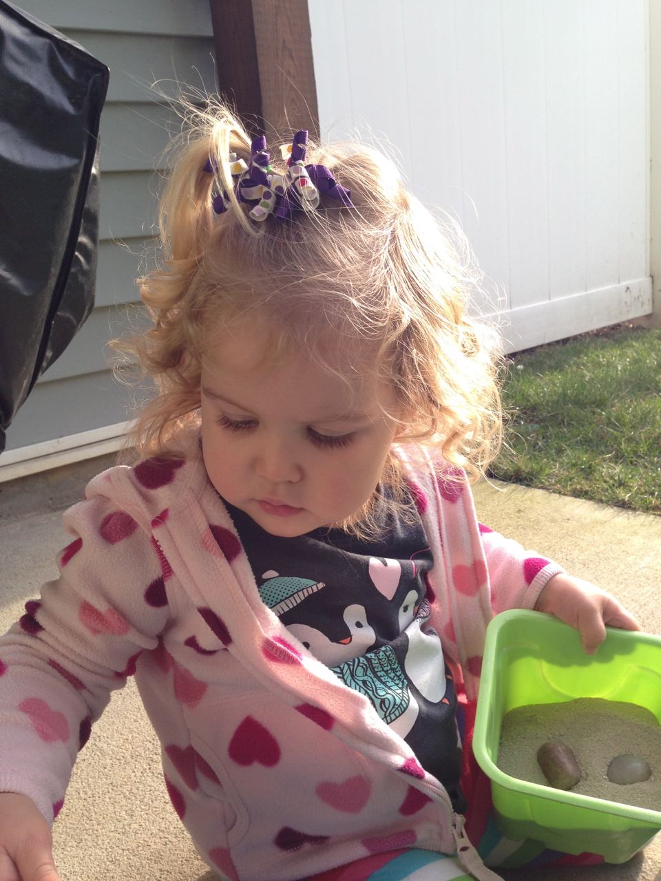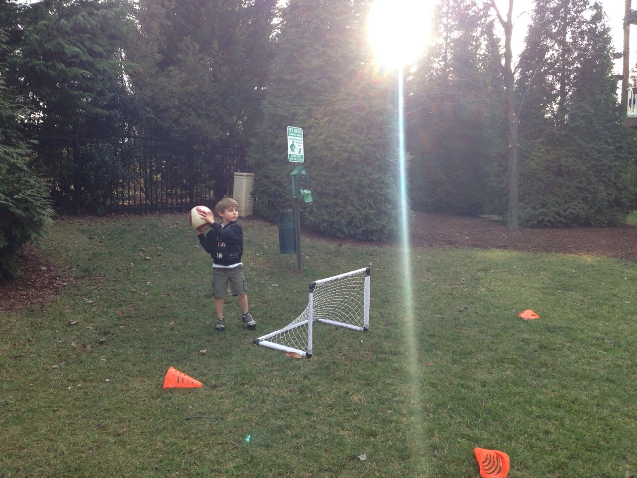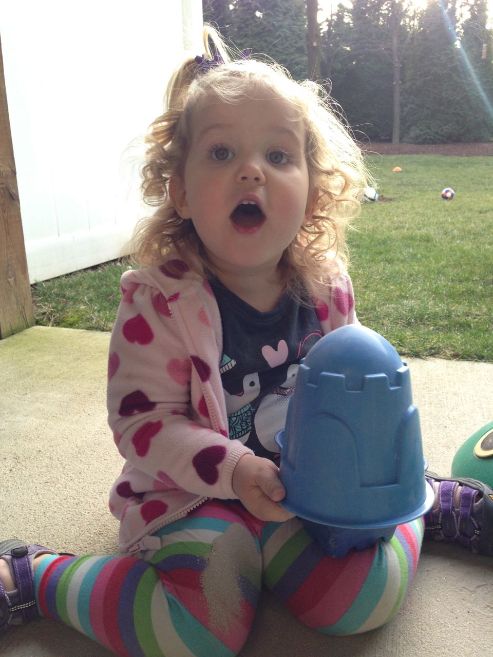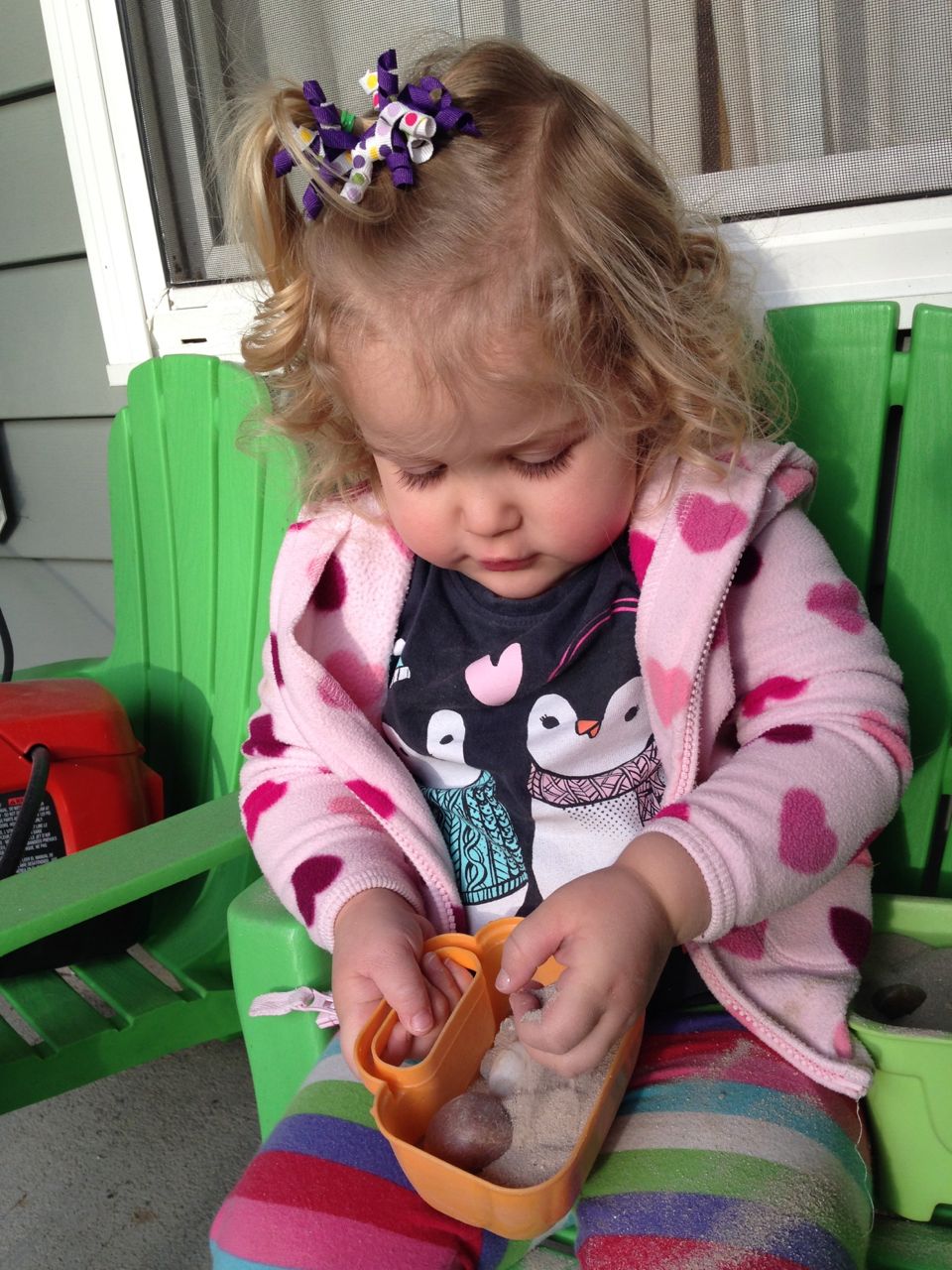 We’re all so grateful for some decent weather, we decided to play outside this afternoon! Brandon and Brian played soccer while Kendall and I played in the sandbox. We added some smooth river rocks to the sandbox, and Kendall had a good time cooking with those.. She was pretending all the pinkish rocks were strawberries. I asked her if the white ones were coconut, and she very seriously told me “nooooo!” Later, Kendall wanted to get into the soccer game, and she had fun, although she might have frustrated Brian a bit at first! Eventually, like the rest of us, he can’t help but laugh at her antics. We switched over to Frisbee which is always entertaining–we never know where the kids are going to aim! Sometimes even directly at your humble photographer. 😉