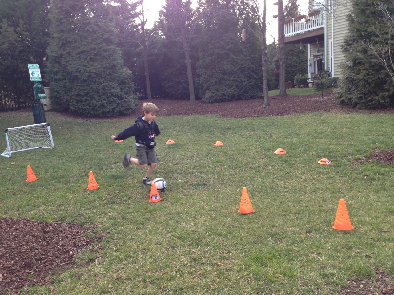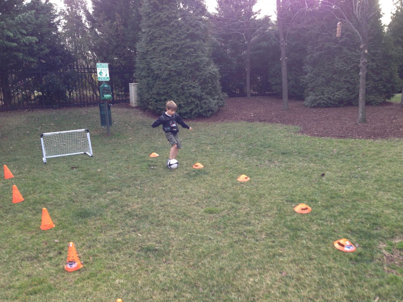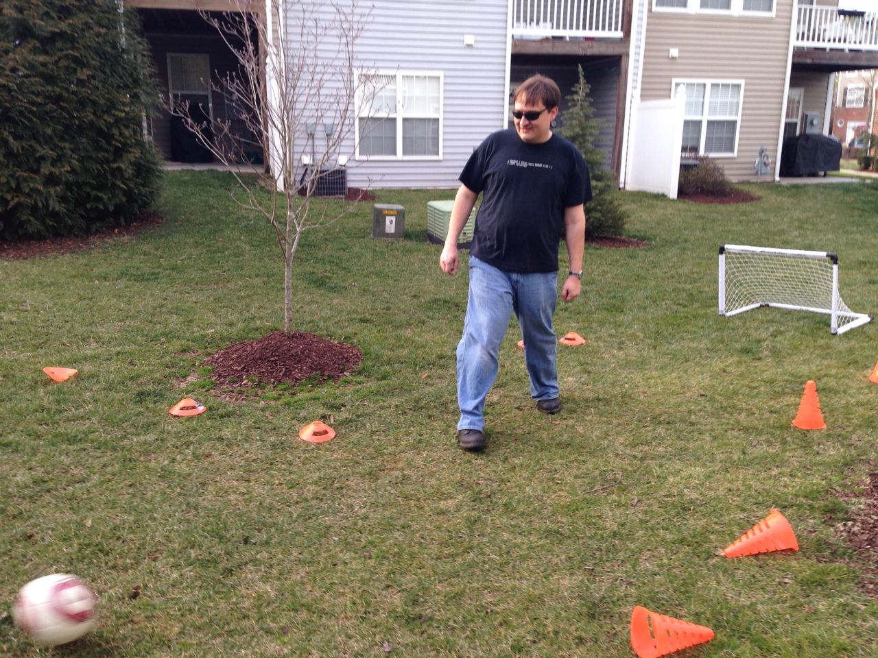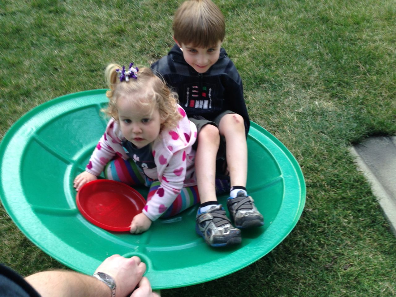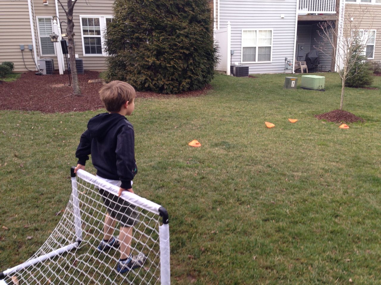 We’re all so grateful for some decent weather, we decided to play outside this afternoon! Brandon and Brian played soccer while Kendall and I played in the sandbox. We added some smooth river rocks to the sandbox, and Kendall had a good time cooking with those.. She was pretending all the pinkish rocks were strawberries. I asked her if the white ones were coconut, and she very seriously told me “nooooo!” Later, Kendall wanted to get into the soccer game, and she had fun, although she might have frustrated Brian a bit at first! Eventually, like the rest of us, he can’t help but laugh at her antics. We switched over to Frisbee which is always entertaining–we never know where the kids are going to aim! Sometimes even directly at your humble photographer. 😉