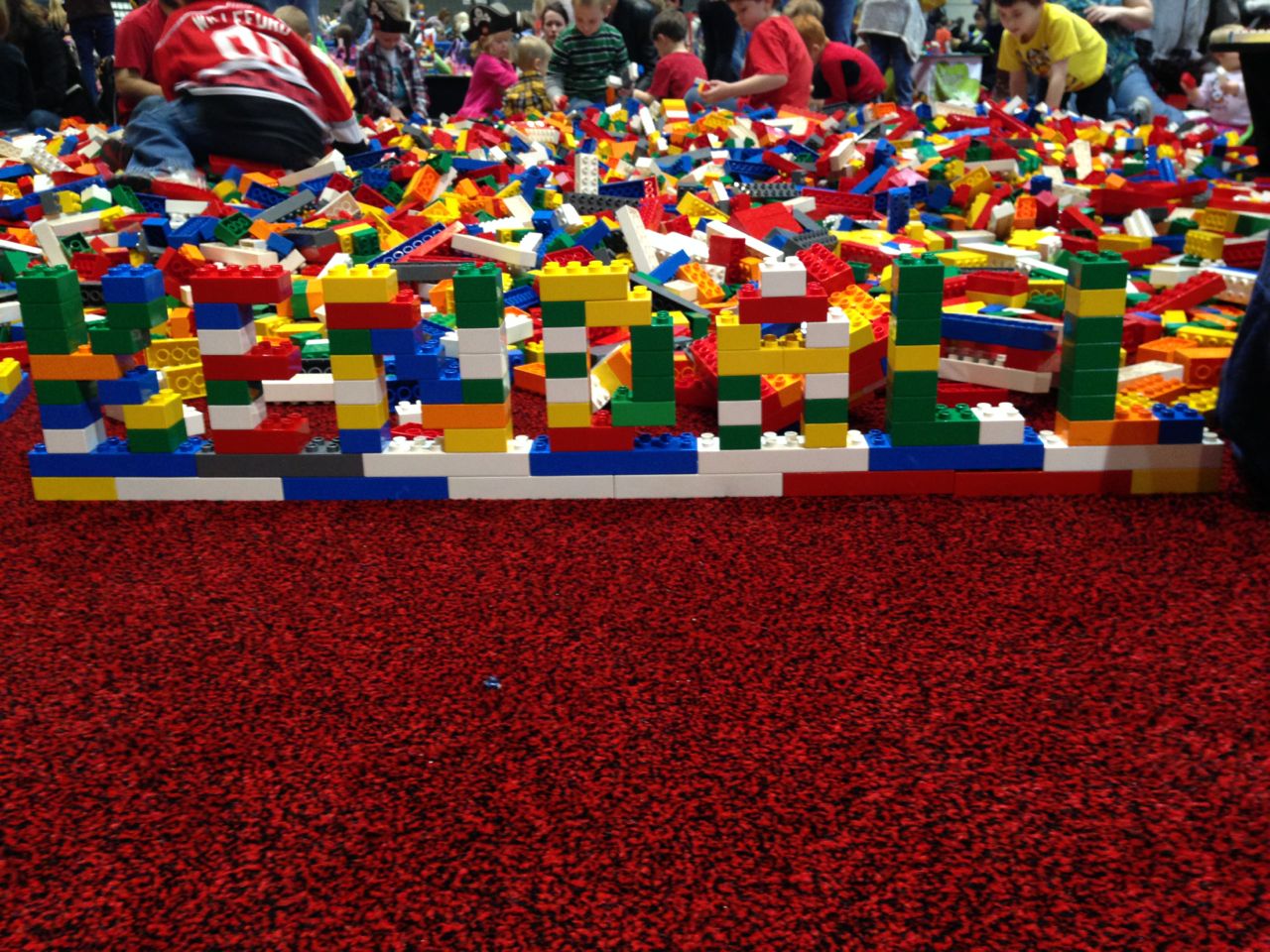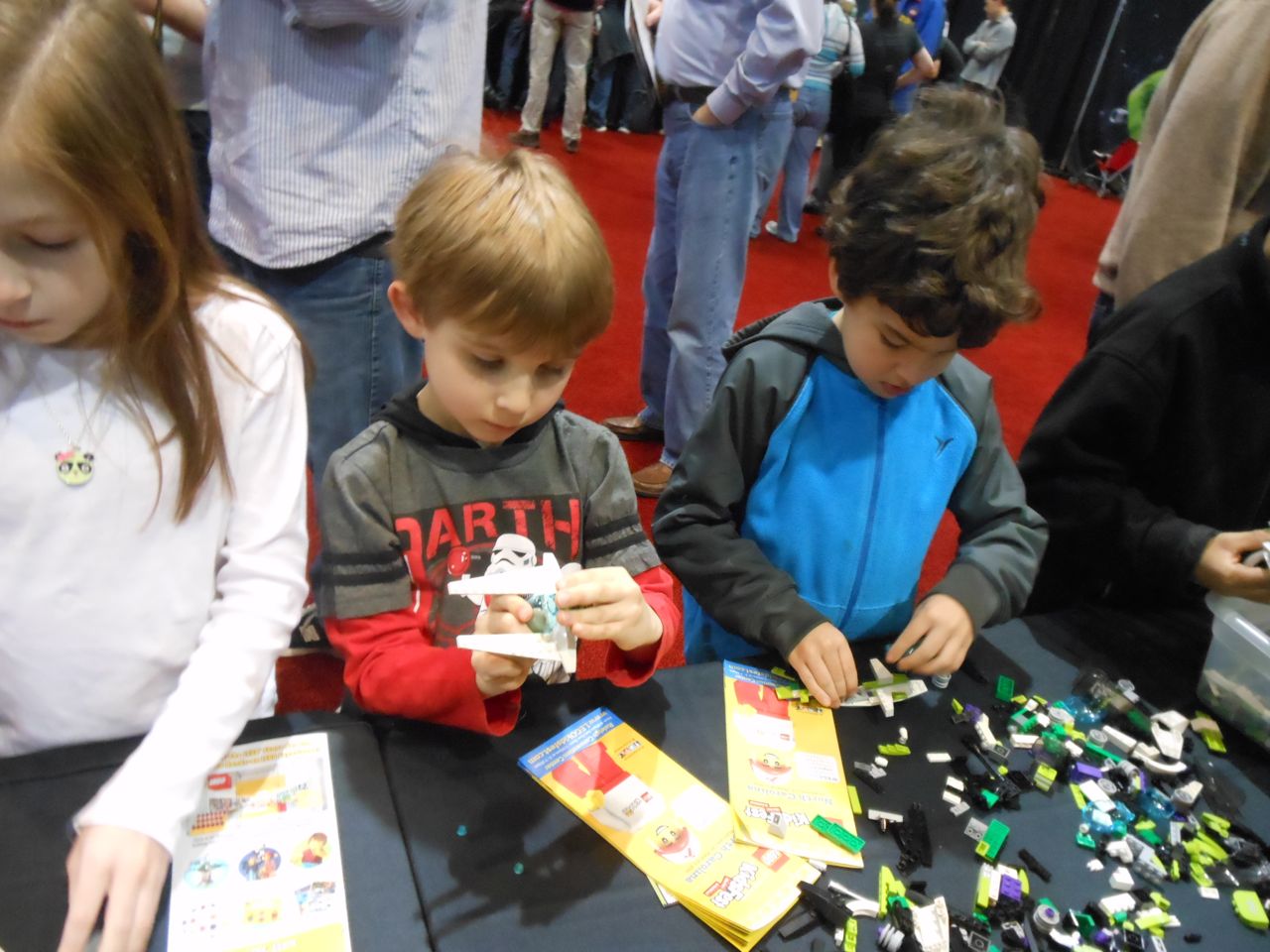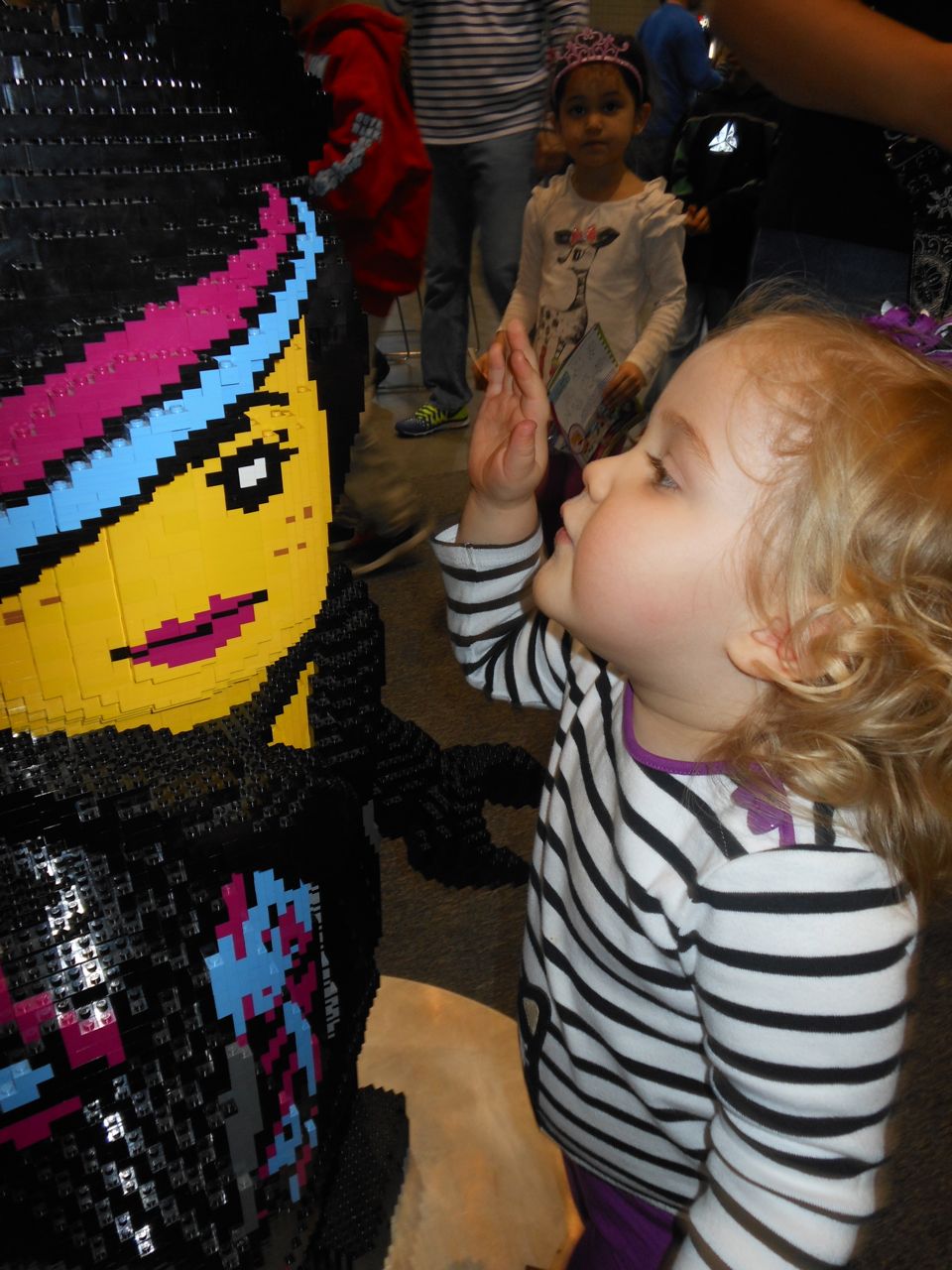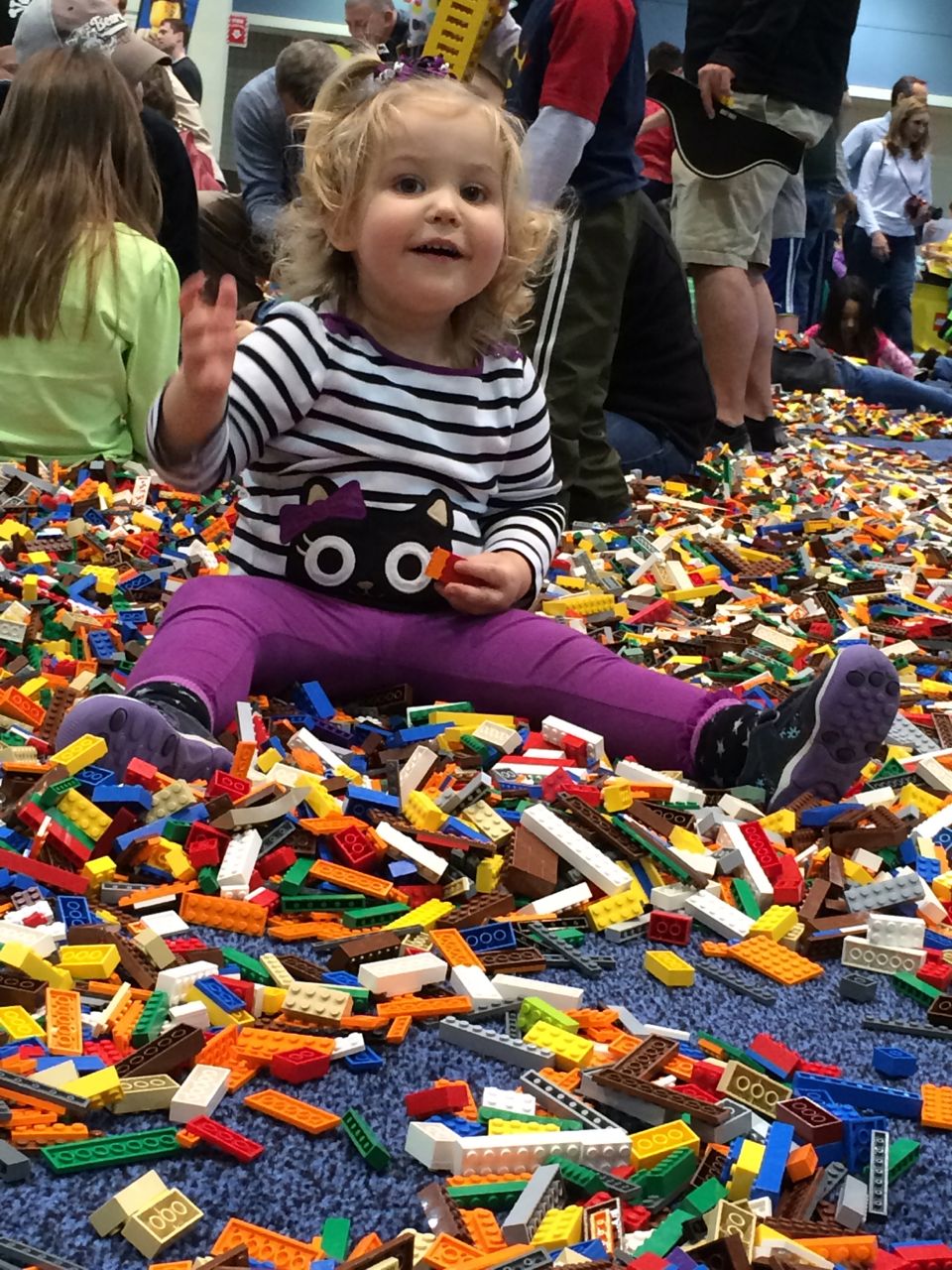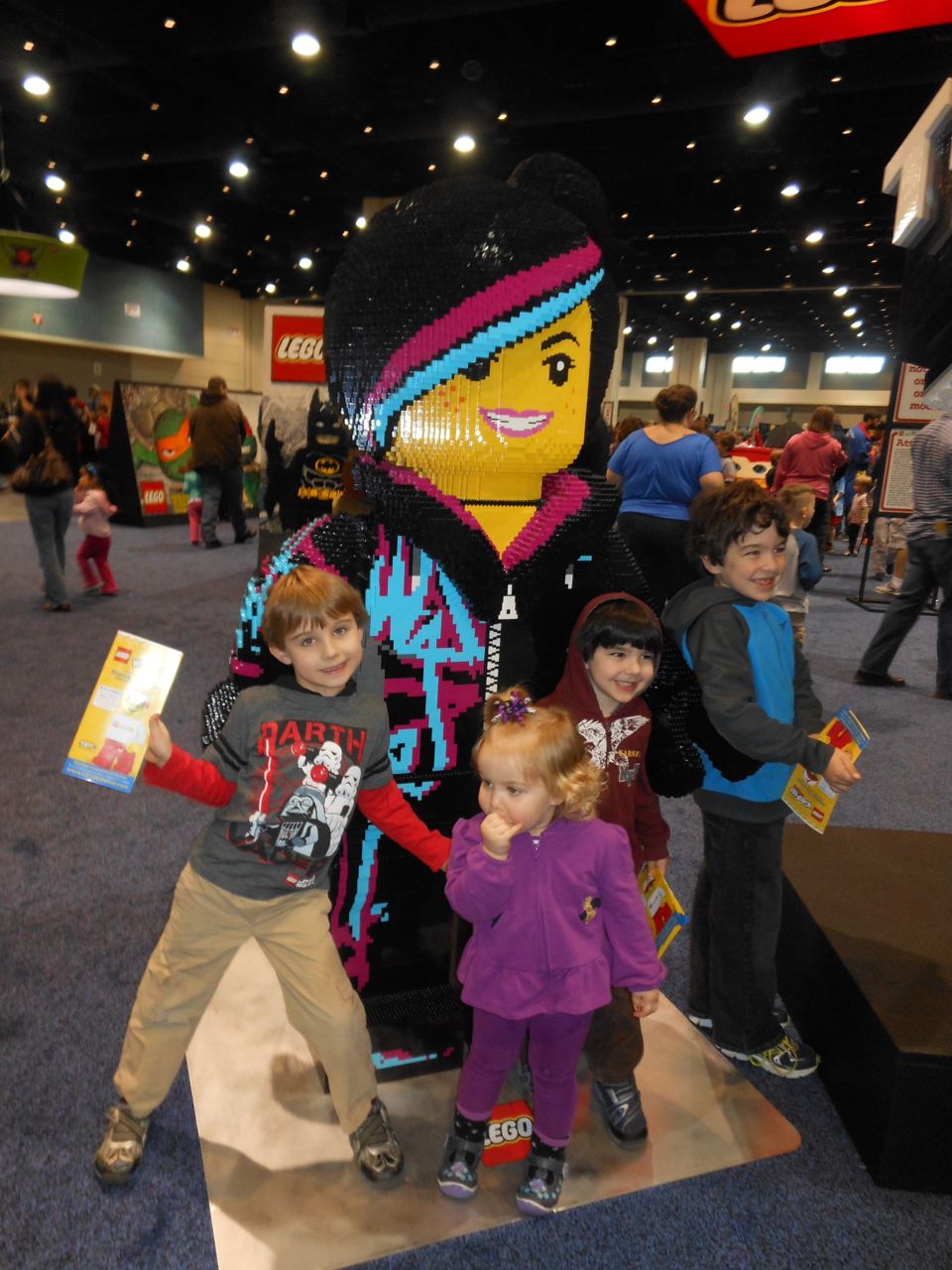 Lego Kids Fest is back in Raleigh! We didn’t think it would be back so soon–usually they don’t repeat cities, but I suppose the Fest was a big success here! I know we did our part when it was here last time, and today was no different. 😉 Like before, the Fest is about four hours of somewhat-controlled chaos, and never seems quite long enough. There were some new attractions this year, and Kendall got a lot more out of it this time! She enjoyed the Duplo piles quite a bit (I am always a little dismayed that they make two Duplo piles, one of standard bricks and one of pink princess bricks–why not mix them together? Argh!) Kendall had fun with both piles, though, and we made some cool things with the Cinderella castle elements. I did not plan on liking that princess stuff at all, but..! Kendall showed me that there are more possibilities than I’d considered. 🙂 She also really liked the Lego Friends section–she’s technically too little for those, but she can build with them like bigger kids, and she doesn’t try to eat the small pieces anymore. 😉 Brian had a very special Fest, because both Ty and Nico also attended! He spent some time with each friend, and all three of them managed to get together now and then. Brian enjoyed the car racing as usual, and he spent some time with the Chima stuff with Ty, and attended the Master Builder session with Nico. There were lots of cool life-size models, and the Star Wars ones were pretty popular. Kendall liked the Lego Movie and Lego Friends ones, especially a very cute little panda bear. He was really cute–I loved all the details and his little teeth! Brian liked the tiger a lot, and the super heroes (even though he insists he’s not into superheroes). We picked up some items for the kids at the shop, and Brian told us some ideas for his wish list–particularly this Star Wars Republic Gunship. The kids both played in the giant brick pile, making brick angels and crashing noisily through the bricks. We stayed until the closing bell, just like before, and although it was tough to leave, we had to. Kendall was pretty much toast by the end, so we had to head home for her nap. With one last burst of energy, the kids leaped onto their plasma cars in the garage–but we did get Kendall down for a nap, eventually, and Brian played with more Legos on the first floor. He made a pretty awesome minifigure party, and we remembered to take some pictures of the Family House with the light-up chandelier that we’d built awhile ago.