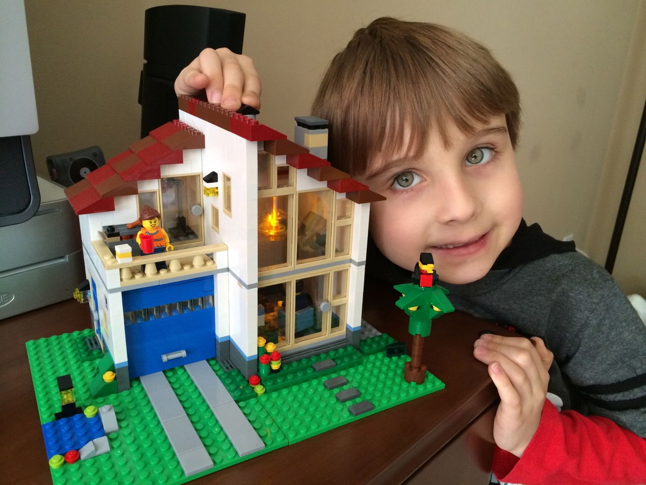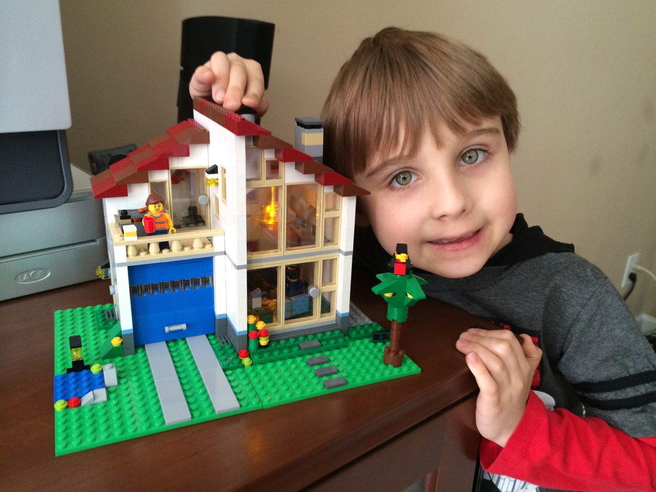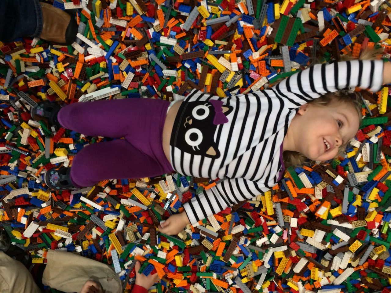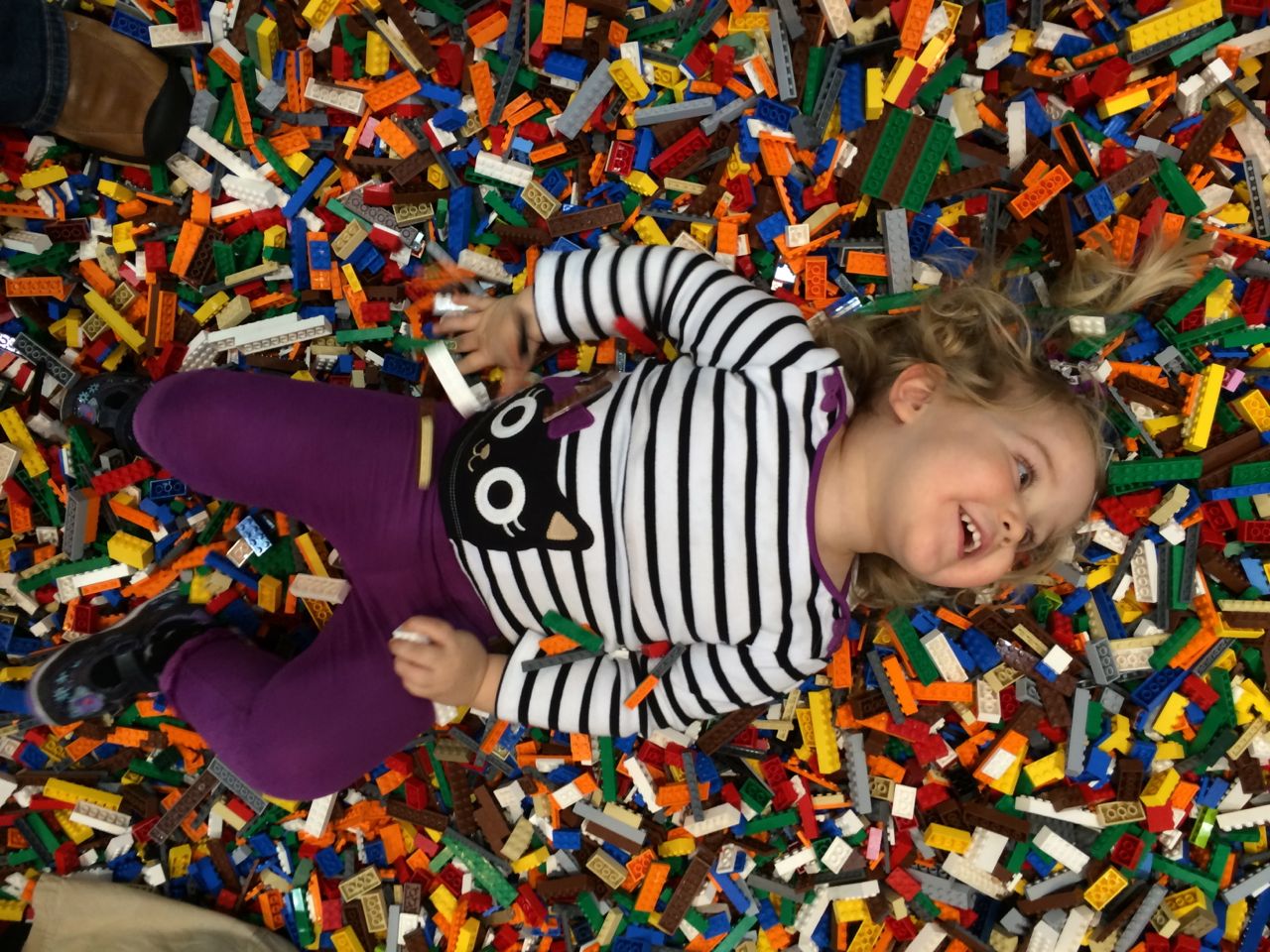 Lego Kids Fest is back in Raleigh! We didn’t think it would be back so soon–usually they don’t repeat cities, but I suppose the Fest was a big success here! I know we did our part when it was here last time, and today was no different. 😉 Like before, the Fest is about four hours of somewhat-controlled chaos, and never seems quite long enough. There were some new attractions this year, and Kendall got a lot more out of it this time! She enjoyed the Duplo piles quite a bit (I am always a little dismayed that they make two Duplo piles, one of standard bricks and one of pink princess bricks–why not mix them together? Argh!) Kendall had fun with both piles, though, and we made some cool things with the Cinderella castle elements. I did not plan on liking that princess stuff at all, but..! Kendall showed me that there are more possibilities than I’d considered. 🙂 She also really liked the Lego Friends section–she’s technically too little for those, but she can build with them like bigger kids, and she doesn’t try to eat the small pieces anymore. 😉 Brian had a very special Fest, because both Ty and Nico also attended! He spent some time with each friend, and all three of them managed to get together now and then. Brian enjoyed the car racing as usual, and he spent some time with the Chima stuff with Ty, and attended the Master Builder session with Nico. There were lots of cool life-size models, and the Star Wars ones were pretty popular. Kendall liked the Lego Movie and Lego Friends ones, especially a very cute little panda bear. He was really cute–I loved all the details and his little teeth! Brian liked the tiger a lot, and the super heroes (even though he insists he’s not into superheroes). We picked up some items for the kids at the shop, and Brian told us some ideas for his wish list–particularly this Star Wars Republic Gunship. The kids both played in the giant brick pile, making brick angels and crashing noisily through the bricks. We stayed until the closing bell, just like before, and although it was tough to leave, we had to. Kendall was pretty much toast by the end, so we had to head home for her nap. With one last burst of energy, the kids leaped onto their plasma cars in the garage–but we did get Kendall down for a nap, eventually, and Brian played with more Legos on the first floor. He made a pretty awesome minifigure party, and we remembered to take some pictures of the Family House with the light-up chandelier that we’d built awhile ago.