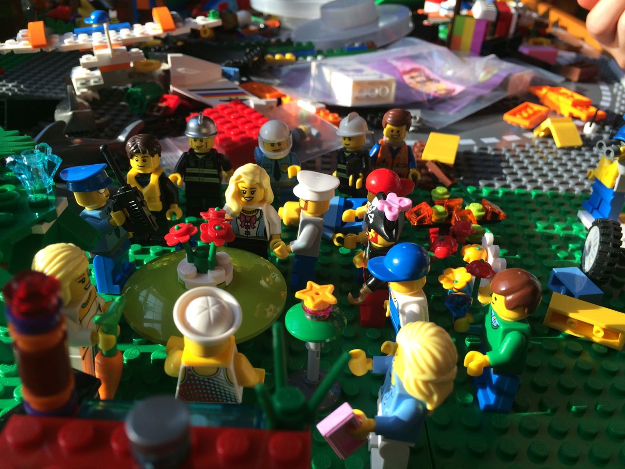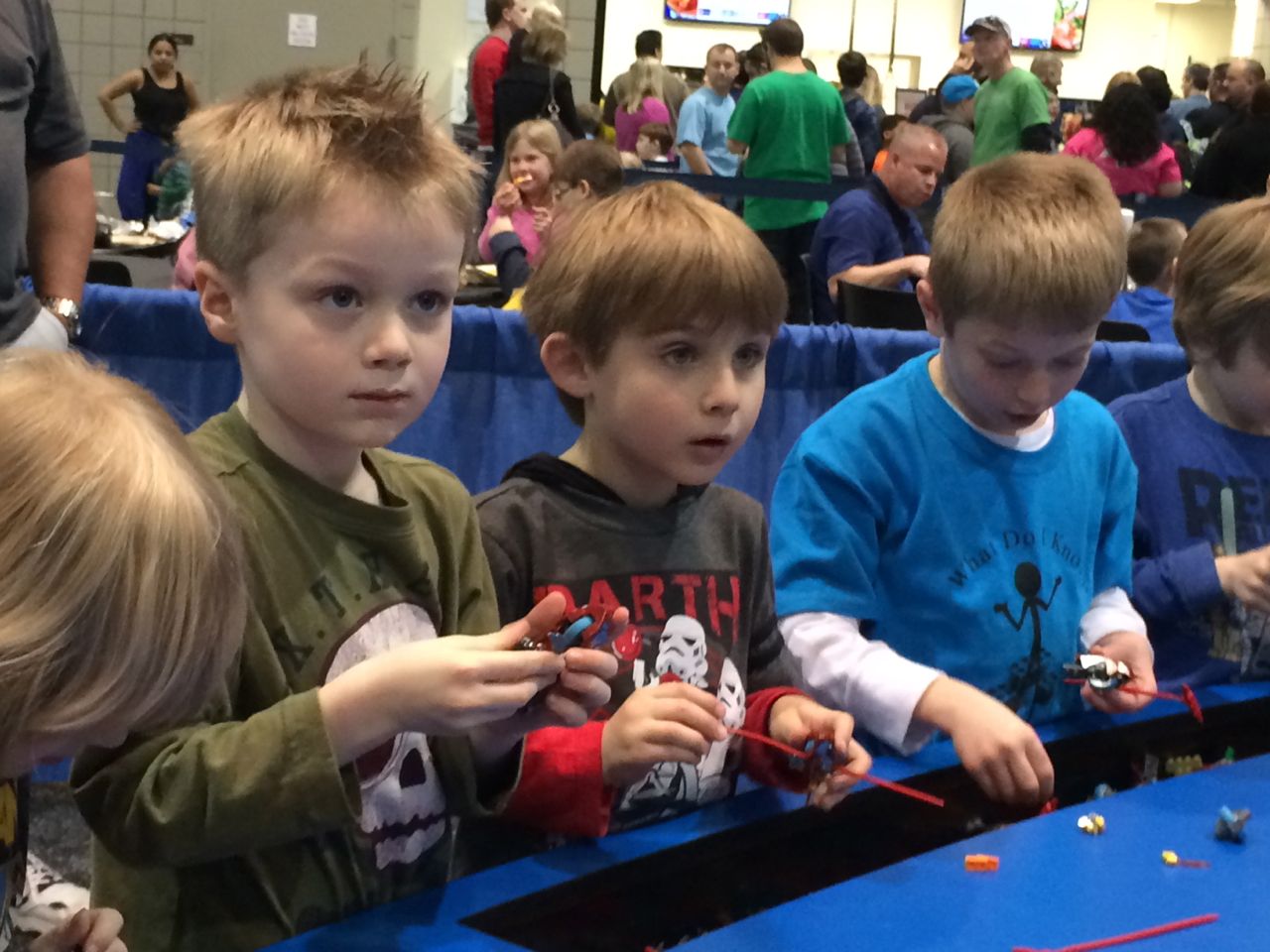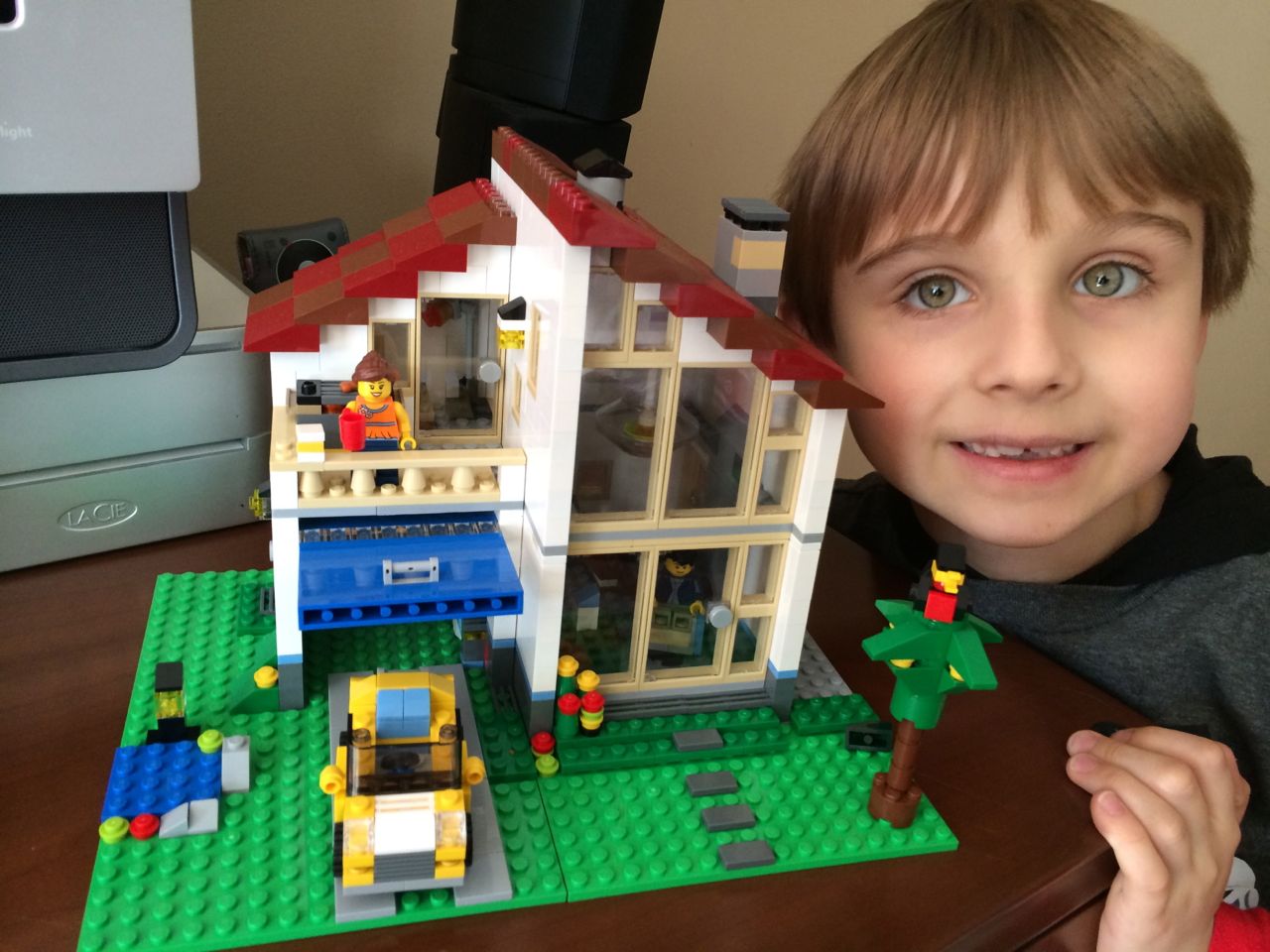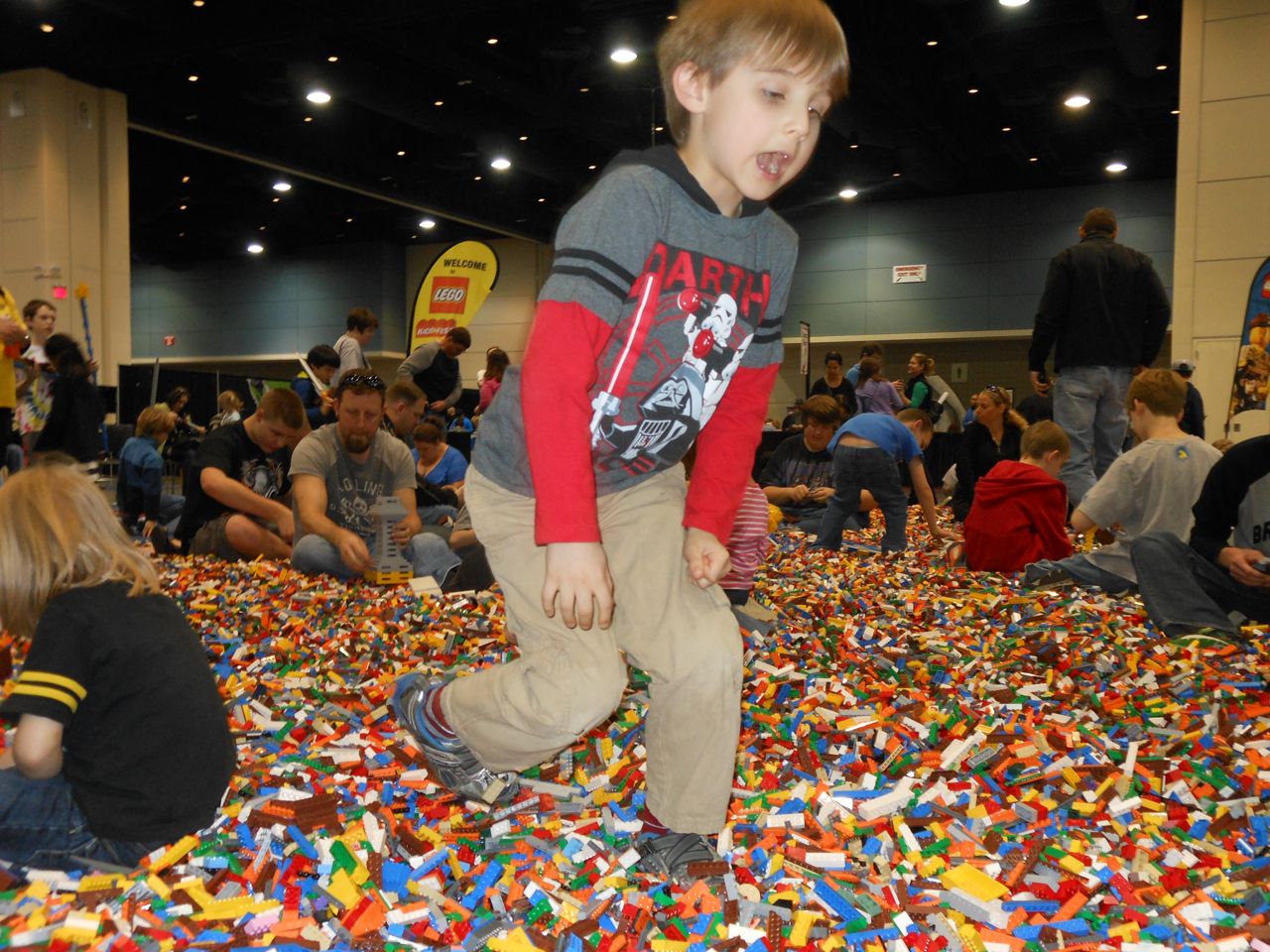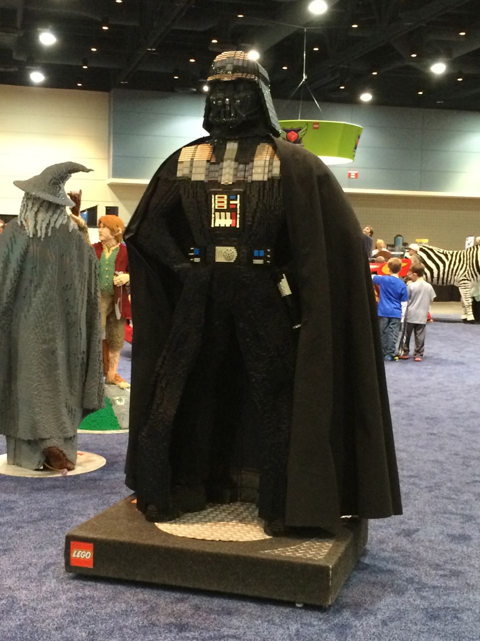 Lego Kids Fest is back in Raleigh! We didn’t think it would be back so soon–usually they don’t repeat cities, but I suppose the Fest was a big success here! I know we did our part when it was here last time, and today was no different. 😉 Like before, the Fest is about four hours of somewhat-controlled chaos, and never seems quite long enough. There were some new attractions this year, and Kendall got a lot more out of it this time! She enjoyed the Duplo piles quite a bit (I am always a little dismayed that they make two Duplo piles, one of standard bricks and one of pink princess bricks–why not mix them together? Argh!) Kendall had fun with both piles, though, and we made some cool things with the Cinderella castle elements. I did not plan on liking that princess stuff at all, but..! Kendall showed me that there are more possibilities than I’d considered. 🙂 She also really liked the Lego Friends section–she’s technically too little for those, but she can build with them like bigger kids, and she doesn’t try to eat the small pieces anymore. 😉 Brian had a very special Fest, because both Ty and Nico also attended! He spent some time with each friend, and all three of them managed to get together now and then. Brian enjoyed the car racing as usual, and he spent some time with the Chima stuff with Ty, and attended the Master Builder session with Nico. There were lots of cool life-size models, and the Star Wars ones were pretty popular. Kendall liked the Lego Movie and Lego Friends ones, especially a very cute little panda bear. He was really cute–I loved all the details and his little teeth! Brian liked the tiger a lot, and the super heroes (even though he insists he’s not into superheroes). We picked up some items for the kids at the shop, and Brian told us some ideas for his wish list–particularly this Star Wars Republic Gunship. The kids both played in the giant brick pile, making brick angels and crashing noisily through the bricks. We stayed until the closing bell, just like before, and although it was tough to leave, we had to. Kendall was pretty much toast by the end, so we had to head home for her nap. With one last burst of energy, the kids leaped onto their plasma cars in the garage–but we did get Kendall down for a nap, eventually, and Brian played with more Legos on the first floor. He made a pretty awesome minifigure party, and we remembered to take some pictures of the Family House with the light-up chandelier that we’d built awhile ago.