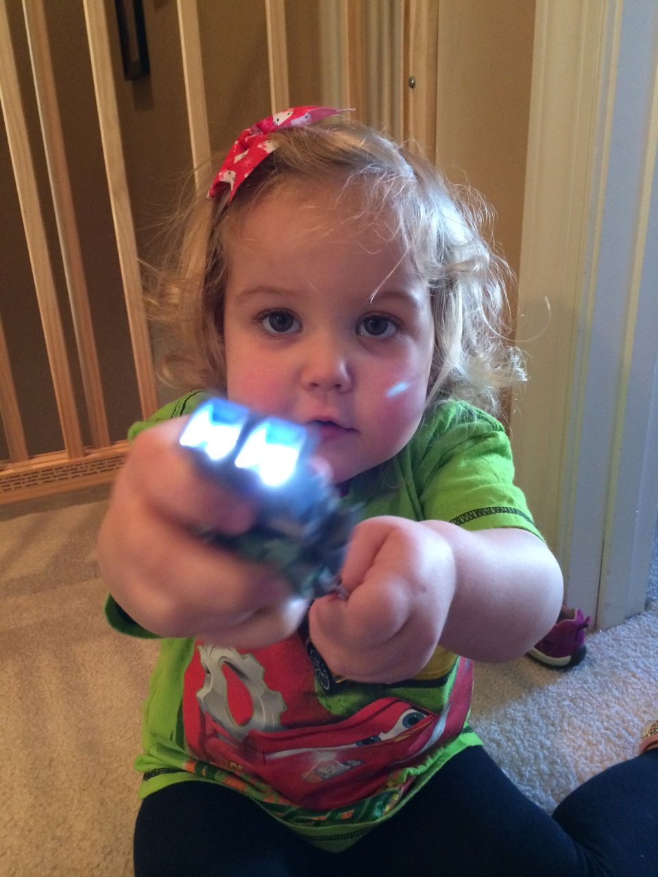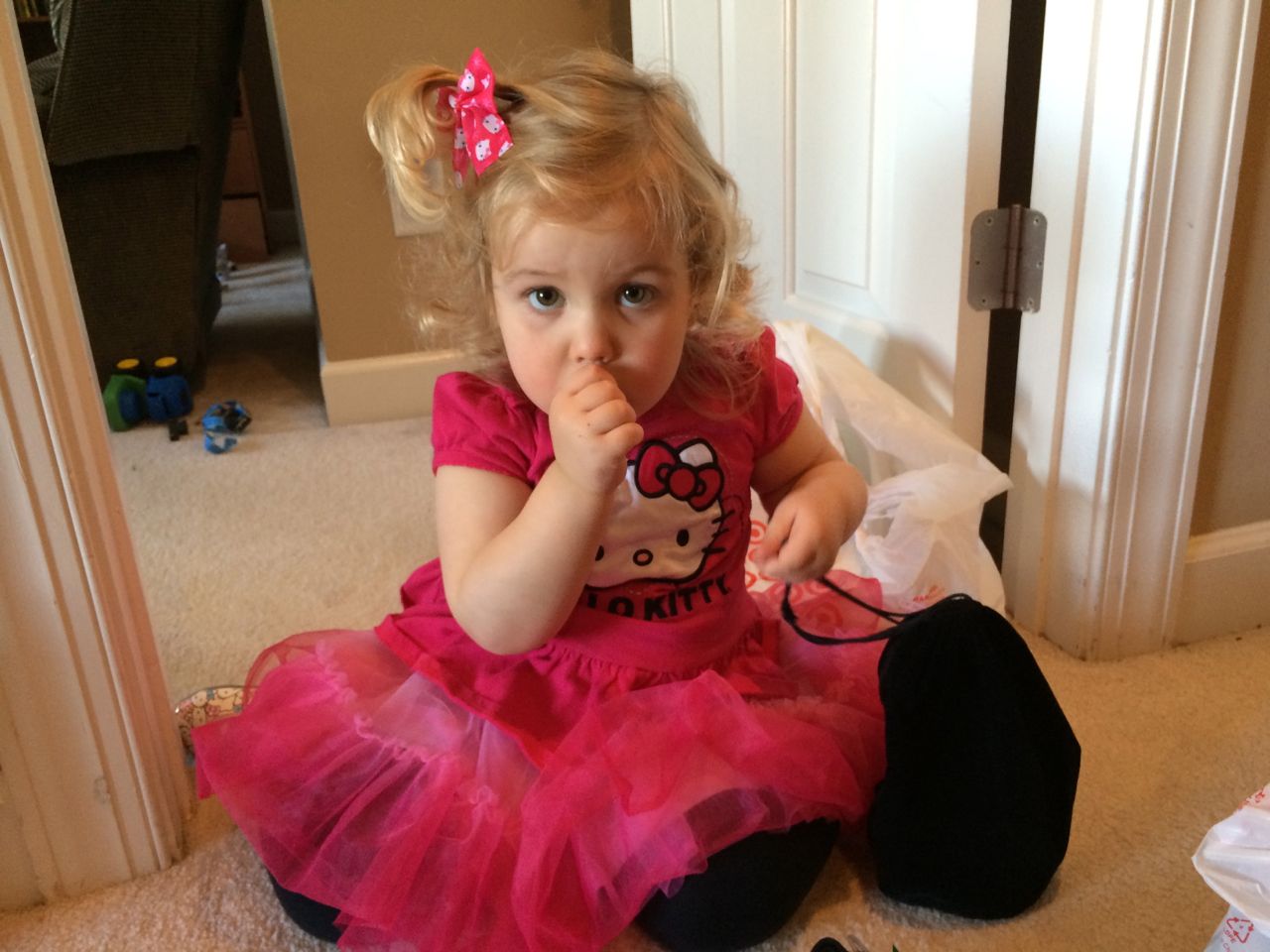 This morning, I had a haircut appointment, and Brandon had the kids. He couldn’t get an appointment at our usual Lowes for Build and Grow this weekend, and found himself heading to Knightdale. He thought Rosemary and Sytse might want to see the kids, and gave them a call. Of course they did, and luckily, they were available! Sytse helped Brian build his birdhouse, and Rosemary helped take care of Kendall. This afternoon, Brian had skating lessons, and I had Kendall. She wasn’t too keen on napping, but did enjoy dressing herself in as much Hello Kitty clothing as possible. To complement her Kitty shirt and hairbow, she chose her new Kitty tutu, socks, and sparkly ballet flats–she was super excited to see that they even have Kitty on the soles of the shoes! She loves the Boba Fett keychain light that we picked up at Target. She caught me taking some of Brian’s smaller clothes out of rotation, and declared that a couple of things were now hers, including a bright green Cars t-shirt. Brian saw her wearing it when he got home and said it was cool, she could have it now. 🙂 The boys brought us smoothie and coffee deliveries, how sweet of them!