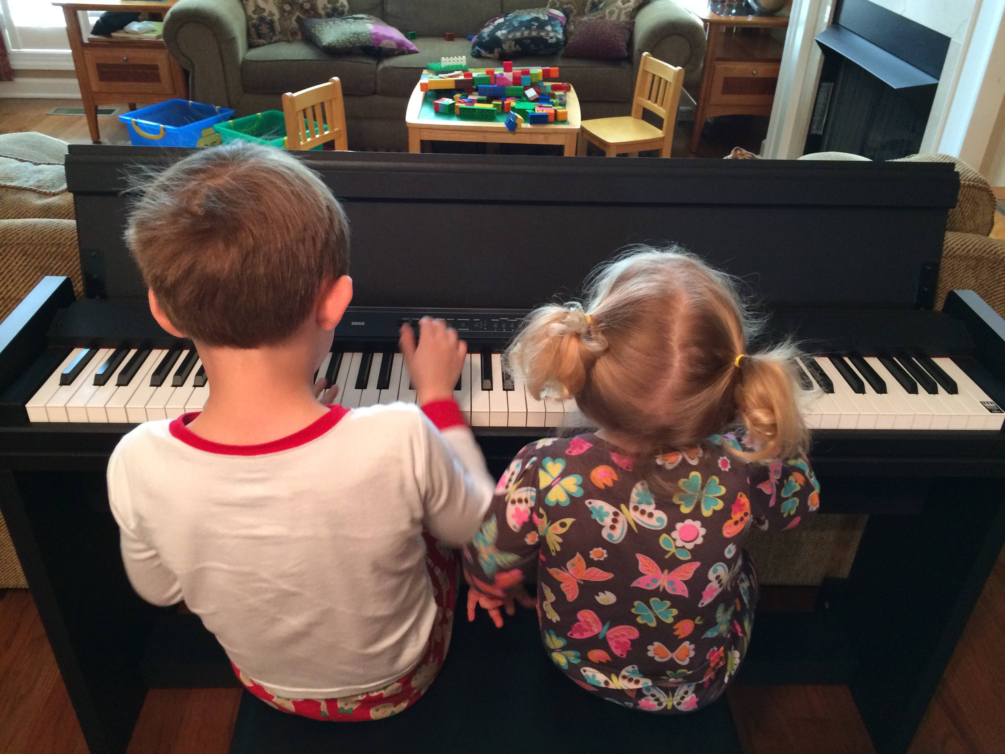 We had a fun, busy day today! The kids were active early, playing piano (okay, that’s a charitable way to view it–mostly vying for position on the bench, trying to not get caught shoving each other!) We heard one of them start singing the classic “Lollipop” song by the Chordettes (1958)–soon enough, both of them were singing it at top volume. We asked if they’d heard the original, and, long story short, we ended up watching a whole pile of black-and-white 1950’s classic music performances on YouTube. We had to explain why they weren’t in color. 😉