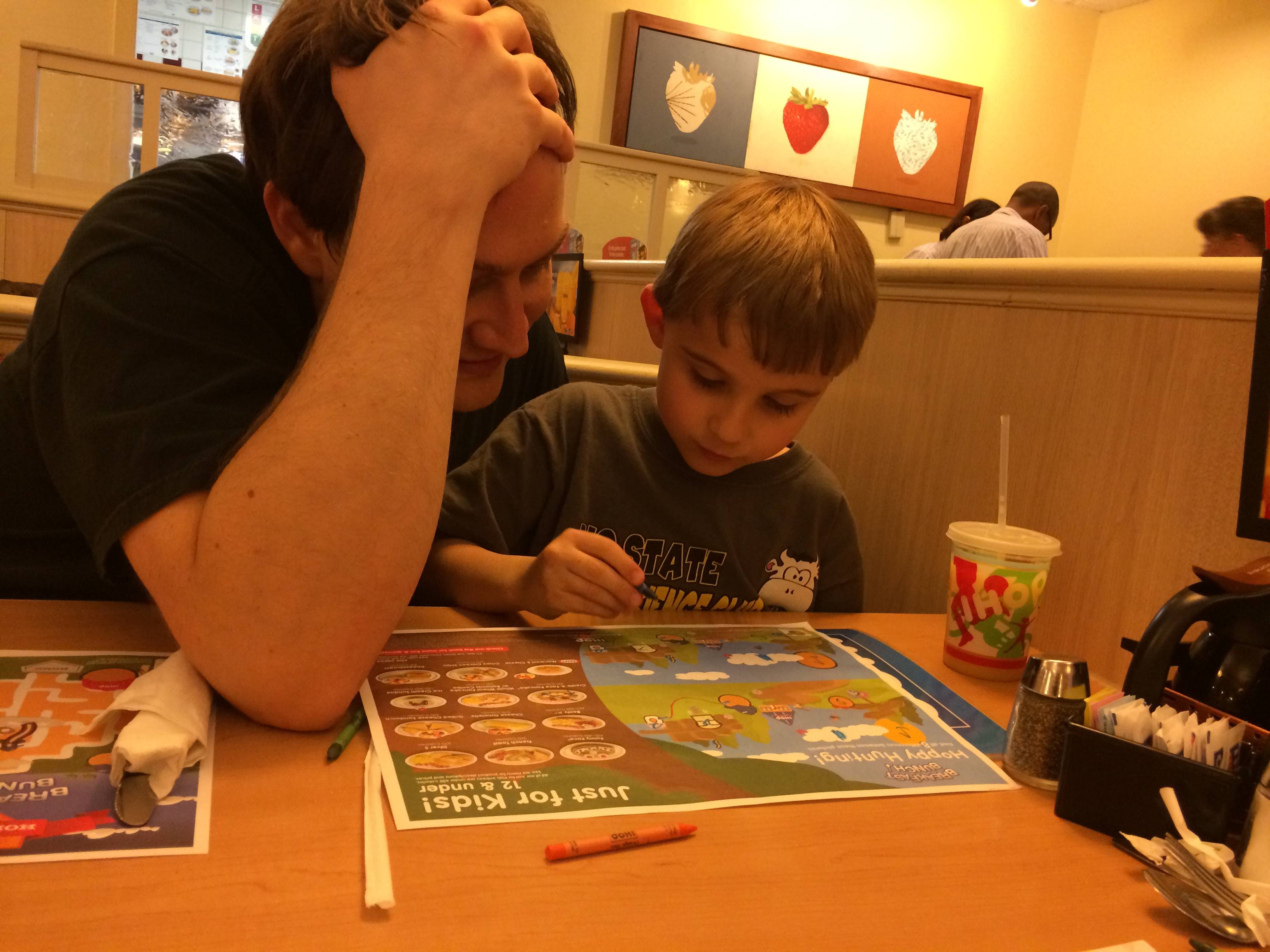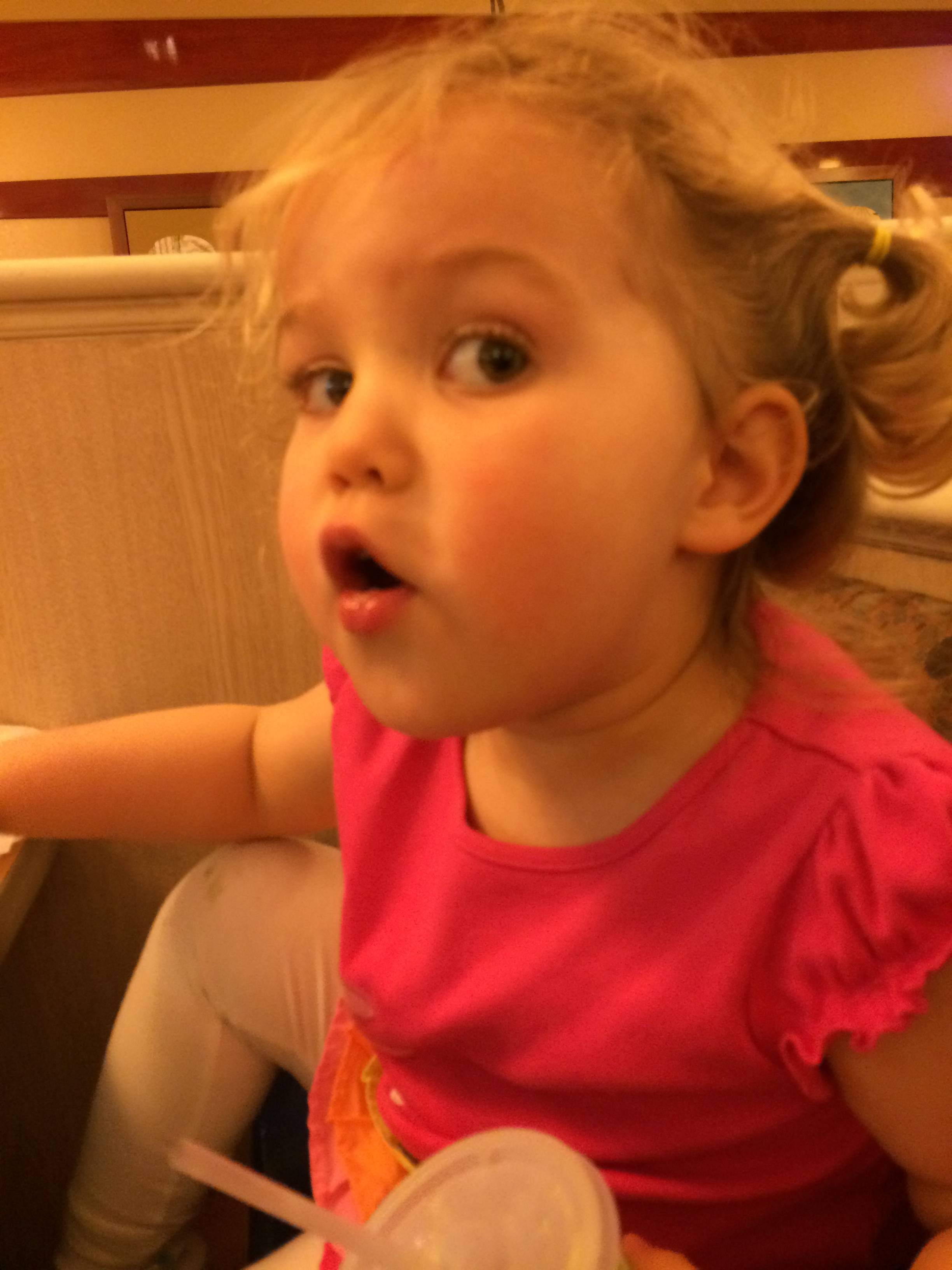 After the toy store, we were all famished, and decided to take the kids to IHOP. They were cool with the idea (as you can tell by the wild dance party in front of the sign!) Brian got his favorite Create-A-Face pancake, and Kendall got her favorite Funny Face pancake. I’ll be sad if she stops choosing that one–it’s a chocolate pancake with chocolate chips, and, not gonna lie–I enjoy snagging some bites of it for my dessert! 😀 We wrapped up the day with bathtime and their new character washcloths from the toy store (impulse buys at the register! At least it wasn’t candy.) 🙂