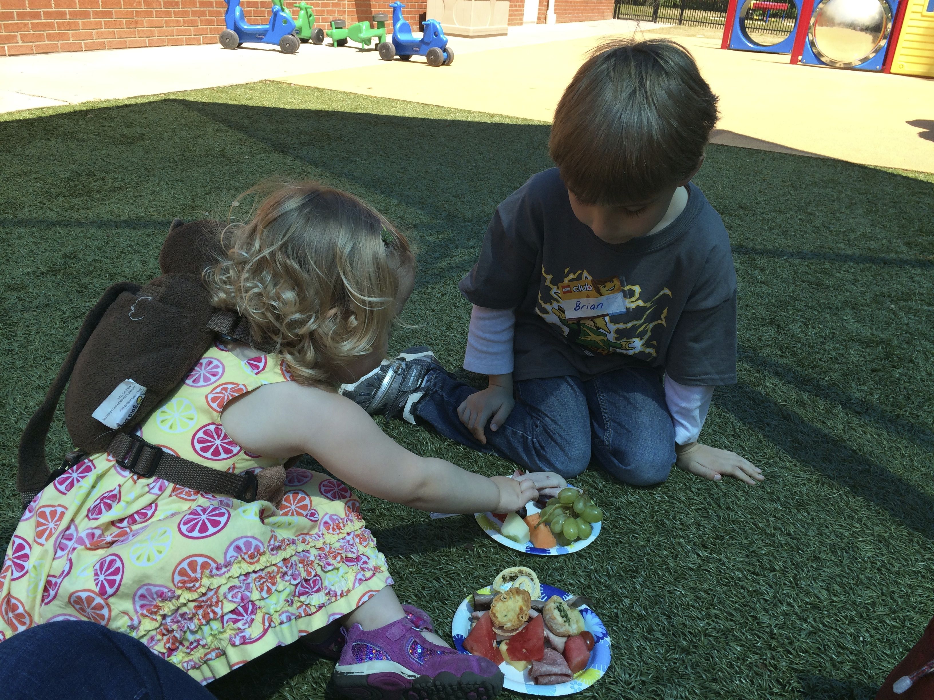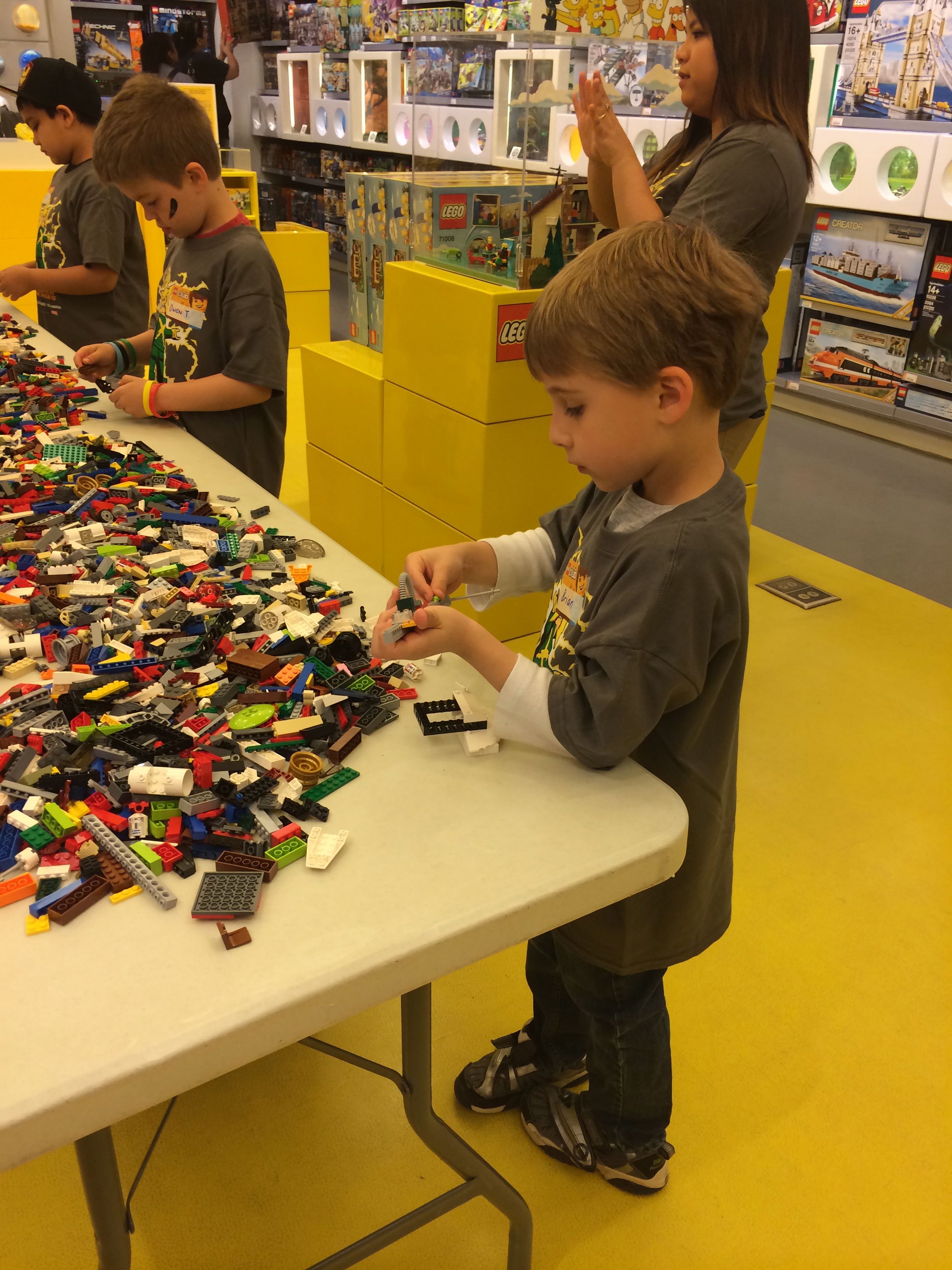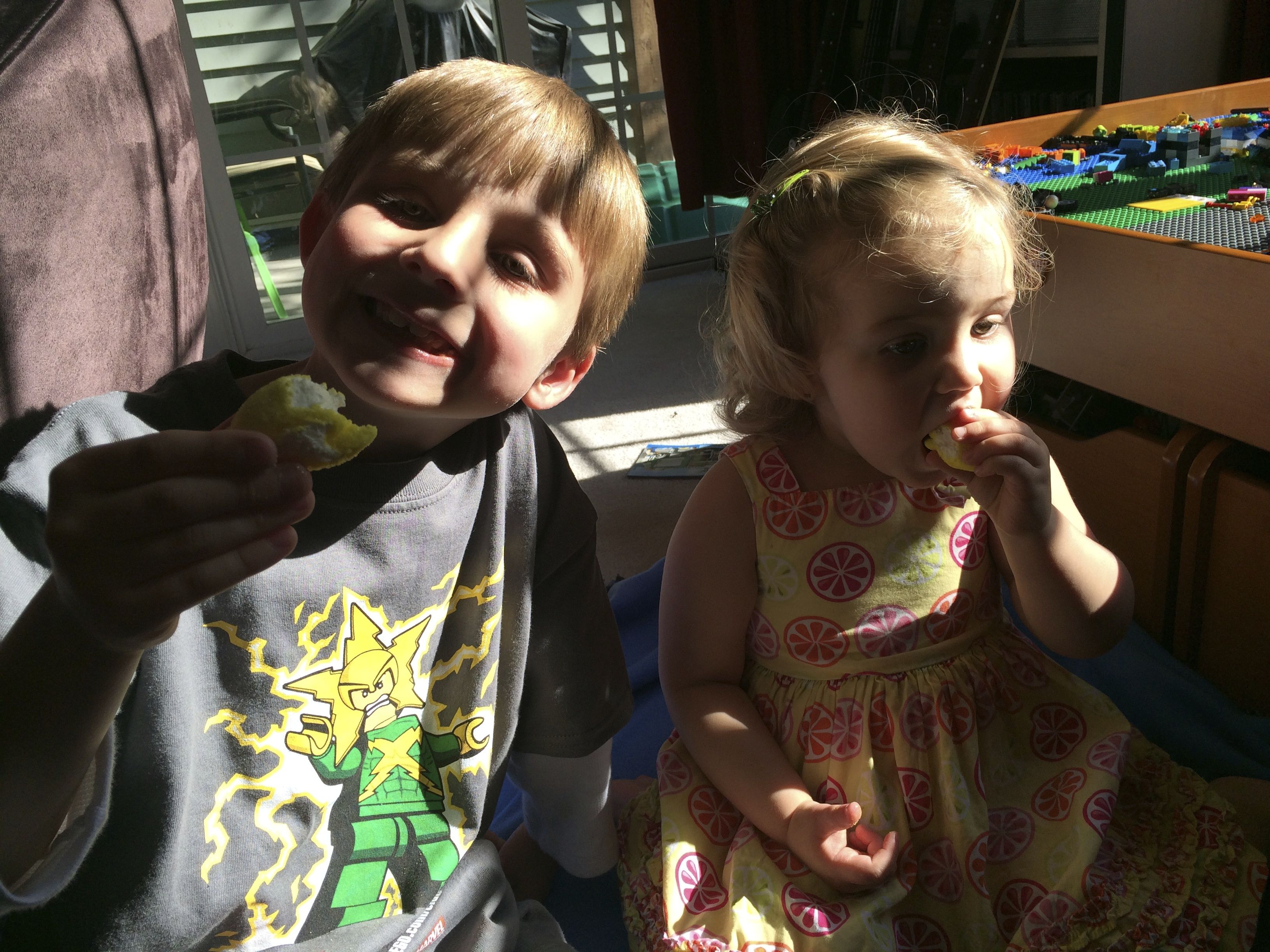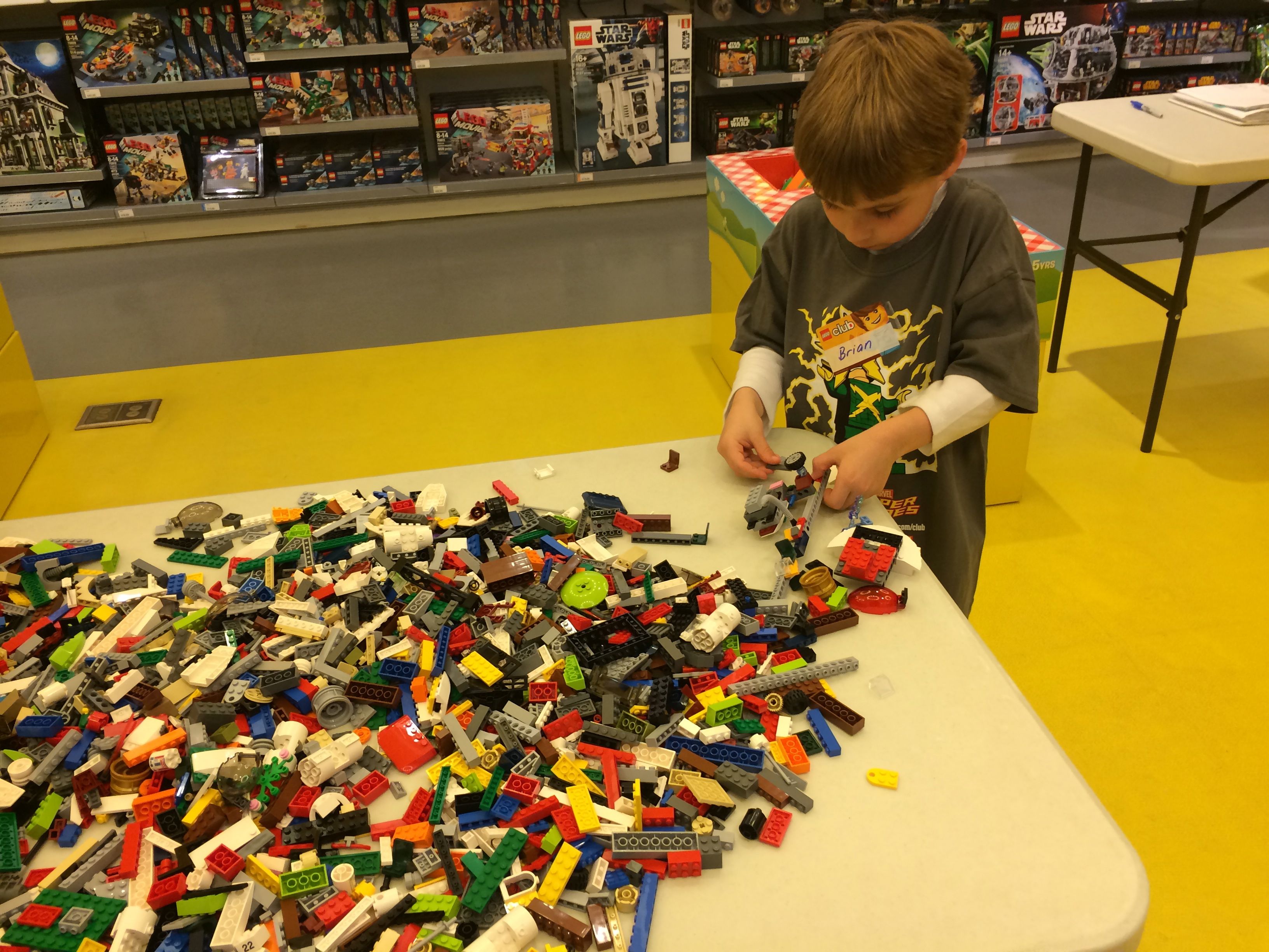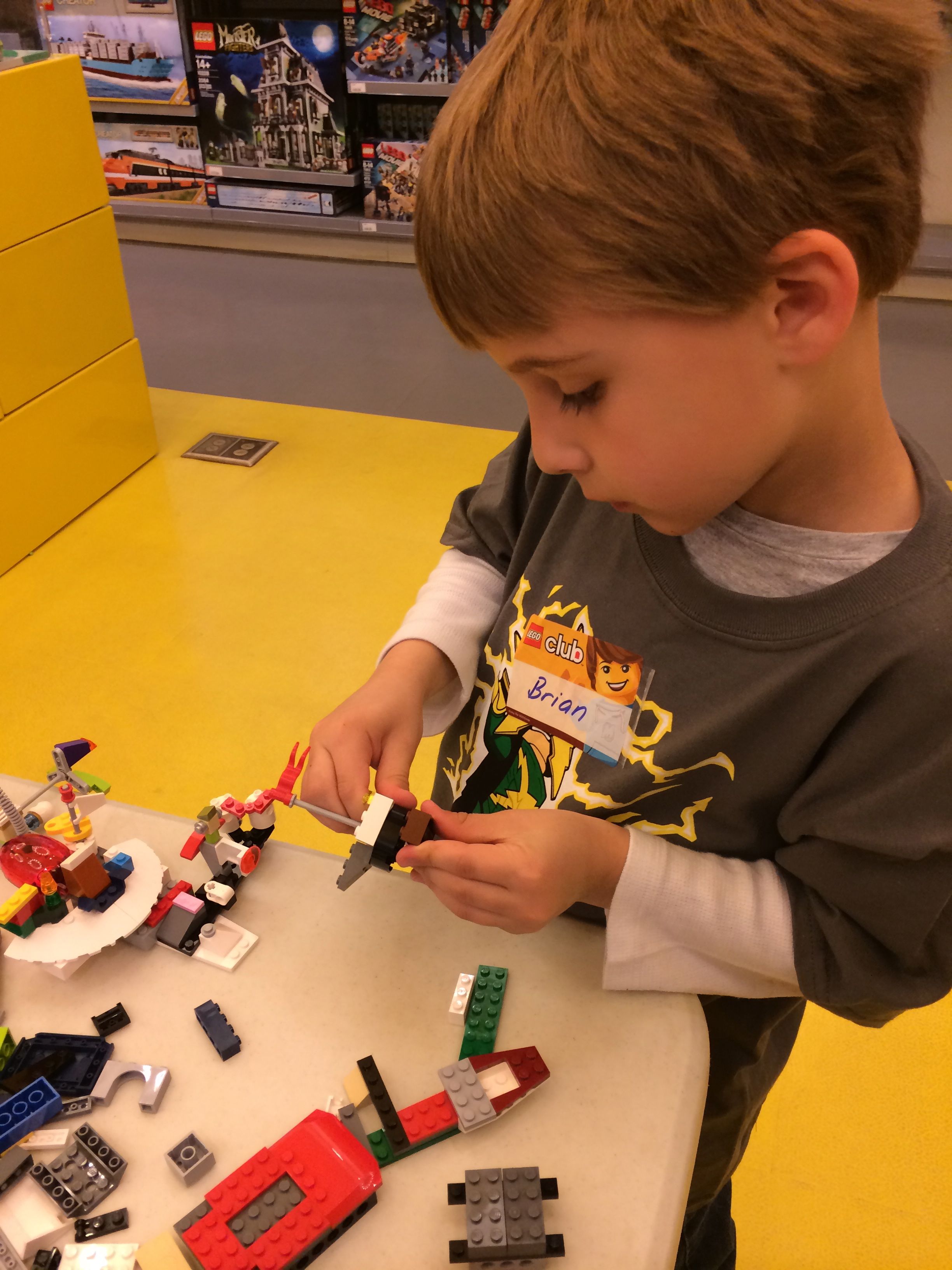 We started off our Saturday with a Lego Club meeting where the theme was Spider-Man. We aren’t all that up-to-date on the happenings in the Marvel universe, and we’d never even heard of Electro, the villian featured on this week’s t-shirt. But, no matter–building is fun no matter what, and Brian was happy enough to get an Electro minifigure, his lightning bolts look a lot like force lightning, so Brian was cool with it. 🙂 He wanted to make minifigures, as always, but I got him to accept me just taking pictures of his funny knights. They are pretty funny! After Lego Club, it was time to go to the Goddard Open House. We hardly miss any Goddard events, but it’s because the kids really enjoy going to them (and we appreciate the free food!) The kids loved the new giant foam building set (they’d played with a similar set at the Life+Science museum in Durham!) Kendall loved playing on the big-kid playground, especially the slide, and delivering me a play-letter. She’ll be moving onto this playground really soon, and I know she’ll be glad! We played inside after we ate and it started getting really hot. Kendall liked the baby dolls in the preschool room, and their new table-style smart board. Brian enjoyed making circle paintings with some repurposed bottles, and driving the truck the preschoolers had made from recycled materials. It was tough to get the kids out of there, we have this tendency to always be the last to leave..! But we bribed them with a promise to visit Fresh for ice cream. It was a great day for it, and we enjoyed our treats outdoors! Back at home, we played Legos downstairs, and after Kendall’s nap, I let the kids have their yellow Peeps candy. 🙂