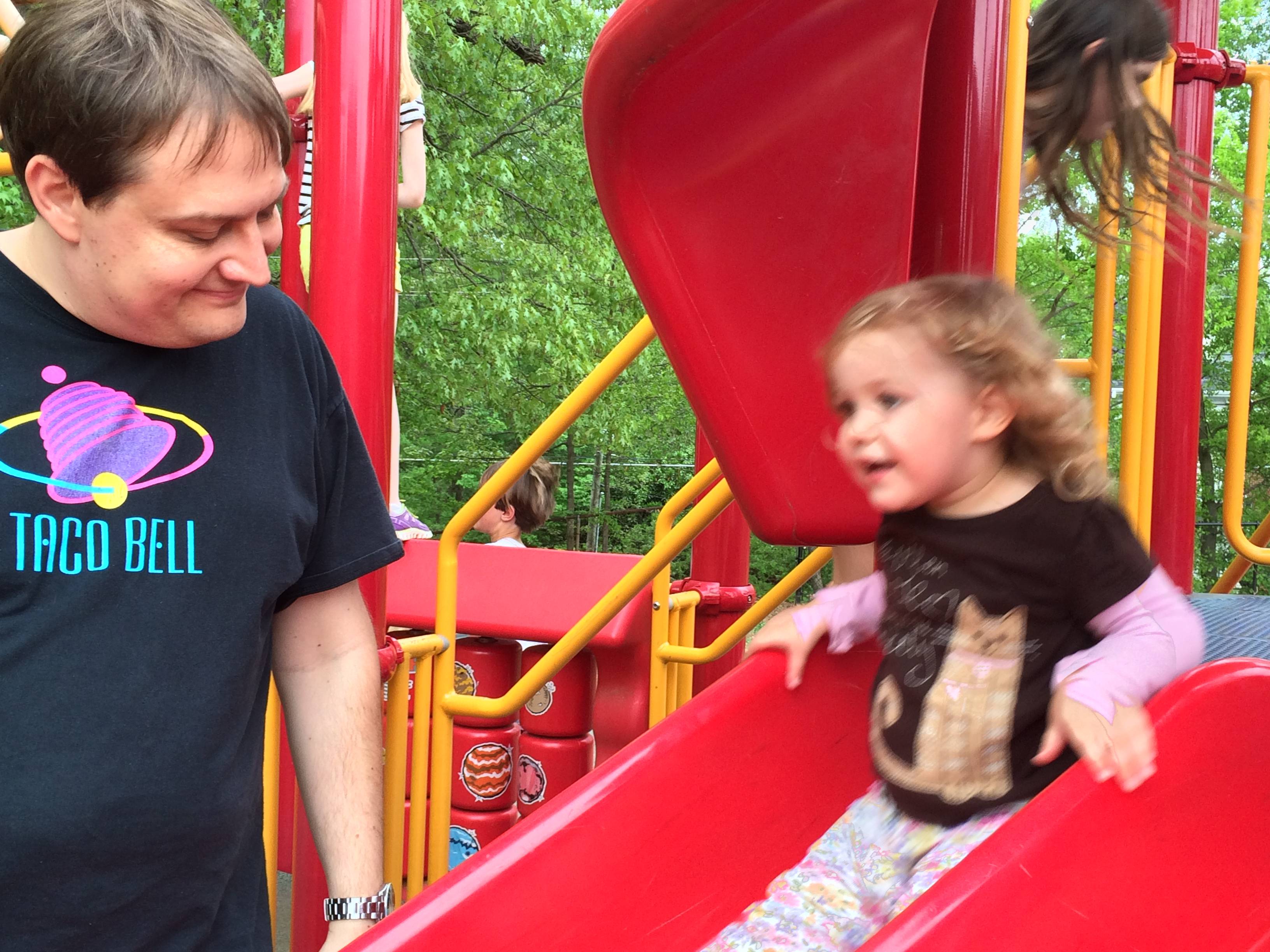 Today was the Spring Book Fair at Root, and of course, we couldn’t miss that! Brian had a list of books he wanted, and found a lot more! Kendall found a pile she wanted as well. We tried to be selective, but we still ended up with a heavy load. Some notable purchases were Lego box sets for each kid, with 3 books and a mini set in each, and a pack of the first 12 Magic Treehouse books. I’m looking forward to those, since they are a good bridge to chapter books for little kids, and the time-traveling treehouse visits many different places and historical time periods. The Treehouse books are popular enough to have continued on for 50+ volumes! One of Brian’s summer camps at Marbles will have a Magic Treehouse theme, with each of the five days being based on the first five books. We should probably get started on these right away, if we want to finish before camp starts! Sorry, no pictures from inside the actual book fair, our hands were full, carrying books and chasing the kids in opposite directions in the crowd! We had hoped to get dinner at the taco truck that was onsite, and get ice cream for dessert from another one of the vendors, but.. Like most Root events, this one was absolutely mobbed, and I don’t think the poor taco truck was quite prepared for the hundreds of hungry families. The line didn’t seem to move the entire time we let the kids play on the playground (about 45 minutes). Brian did have a great time playing with some of his classmates, and Kendall seemed to really enjoy the big-kid playground there! Eventually we just had to give up and go someplace else, and although Brian was pretty upset about leaving at first, we made it up to him by picking Guasaca for our dinner, and we even promised to go to Orange Leaf afterward for frozen yogurt. He was all smiles as he tucked in to his huge dessert creation there!