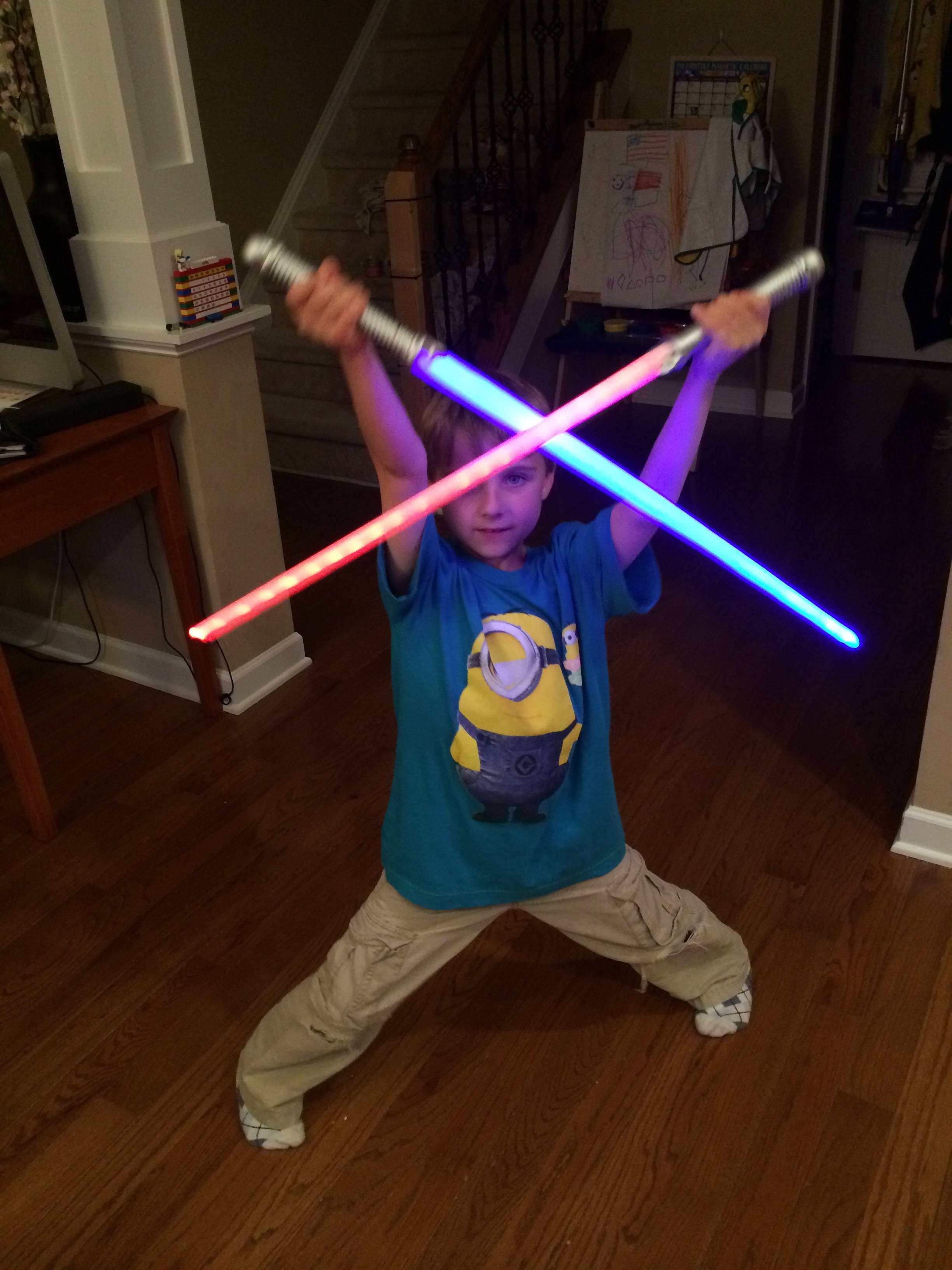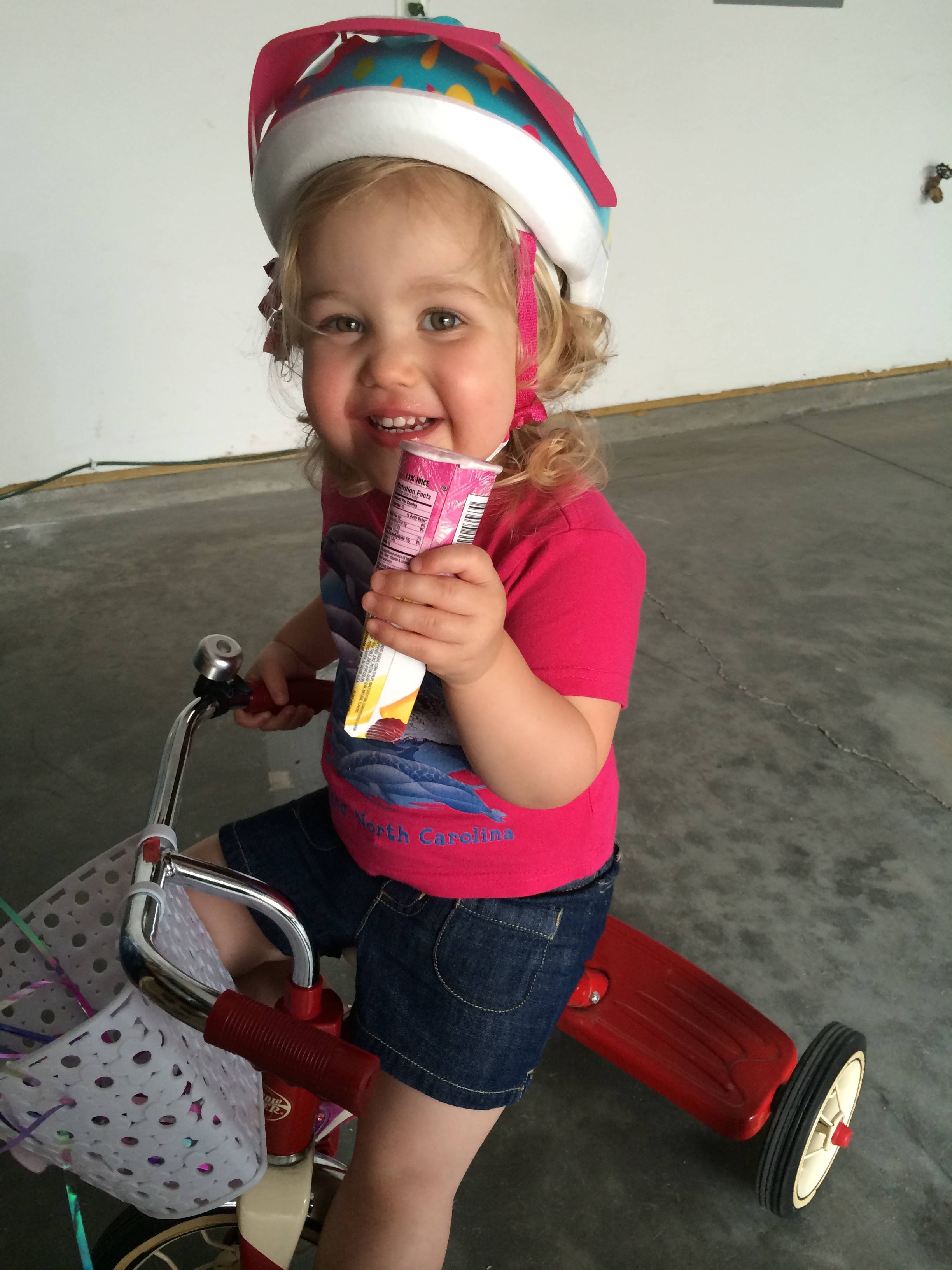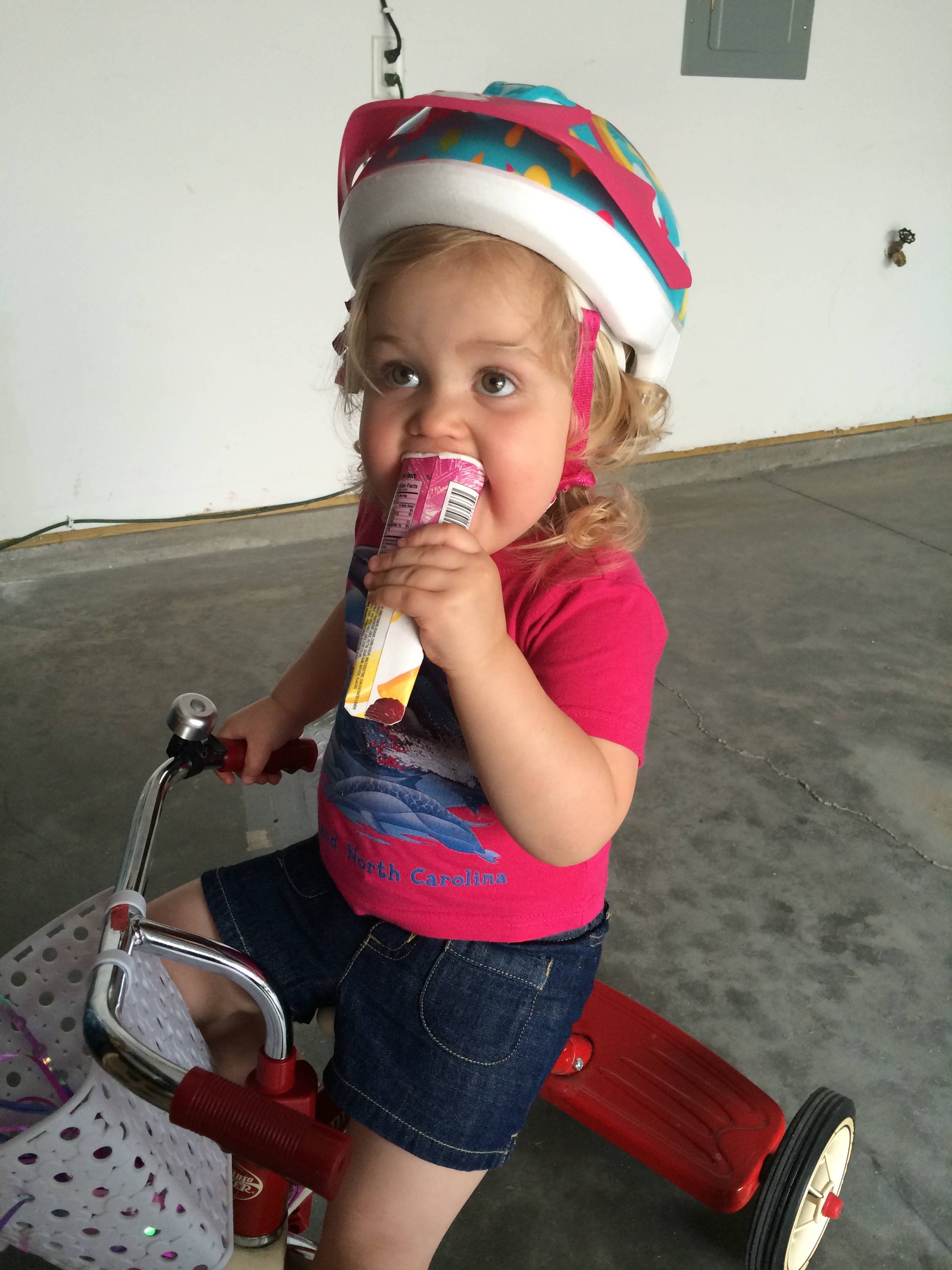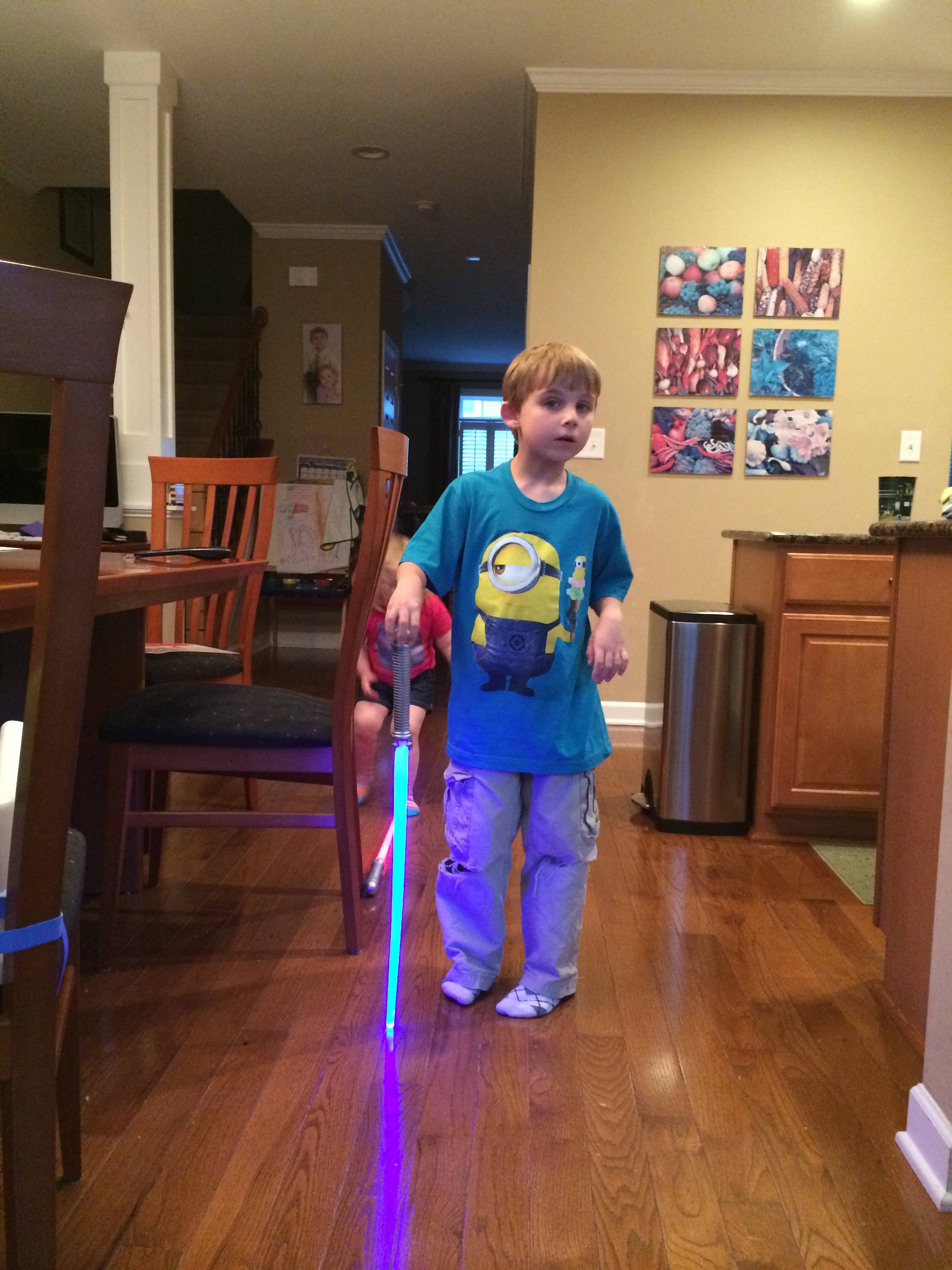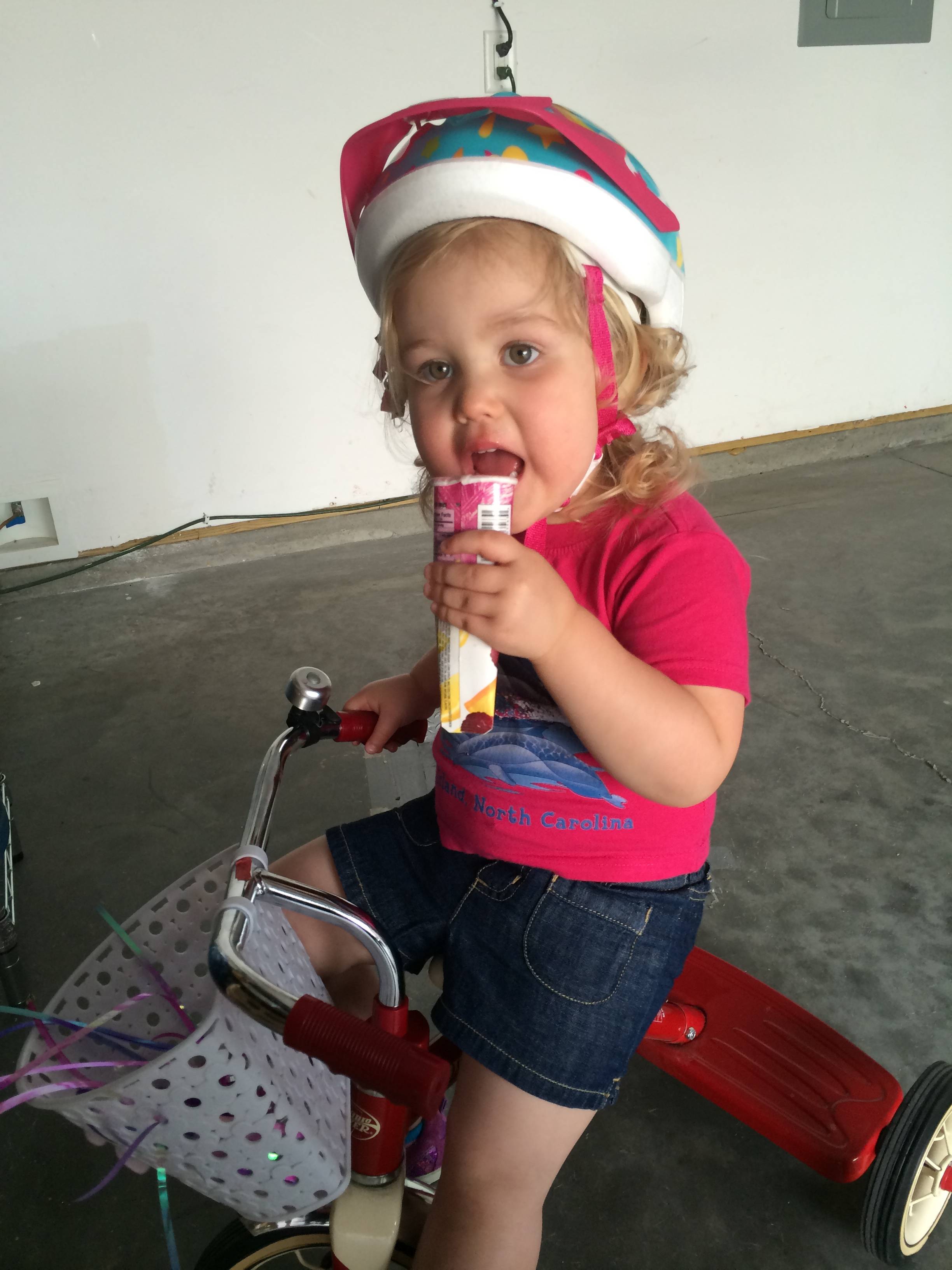 Both of the kids’ schools had events to celebrate Mother’s Day today! I’m not always able to make it to daytime events, but this year, I was able to! Brian’s class invited us moms to come by in the morning to receive our special gifts–a clay pendant, and a beautiful artwork of flowers in a vase! Brian’s teacher said these were suitable for framing, and I think I will absolutely have to do that. Brian’s picture shows such amazing detail, I can tell he really studied the arrangement they used as the model for their still life. I asked Ladd’s mom to take a picture of us, and we did the same for them! Ladd is one of Brian’s best buddies at school. I took pictures of some of Brian’s other artwork that is hanging up in the hall outside of his classroom as well. We were there during morning announcements, which on Fridays end with playing a popular song–today it was the ubiquitous “Happy” by Pharrell, and the kids spontaneously started dancing to it! Brian of course got his groove on for maximum effect, and I had to sneak a video! This afternoon was the Mother’s Day Tea at Goddard, and I got to enjoy a snack of cookies and tea with Miss K. She was very happy to see me, and unabashedly started in on my cookies after she finished her own! It was earlier than our usual pickup, but I decided to go ahead and take her home early and just have some girl time. Kendall wanted to ride her trike, and we played in the garage and enjoyed frozen lemonade. Also included, the morning sing-along in the car to their favorite song “Pompeii” by Bastille, and lightsaber battles with those flimsy toys from the baseball game! They don’t seem to be made for battling at all–I expect they aren’t going to last long with these two!