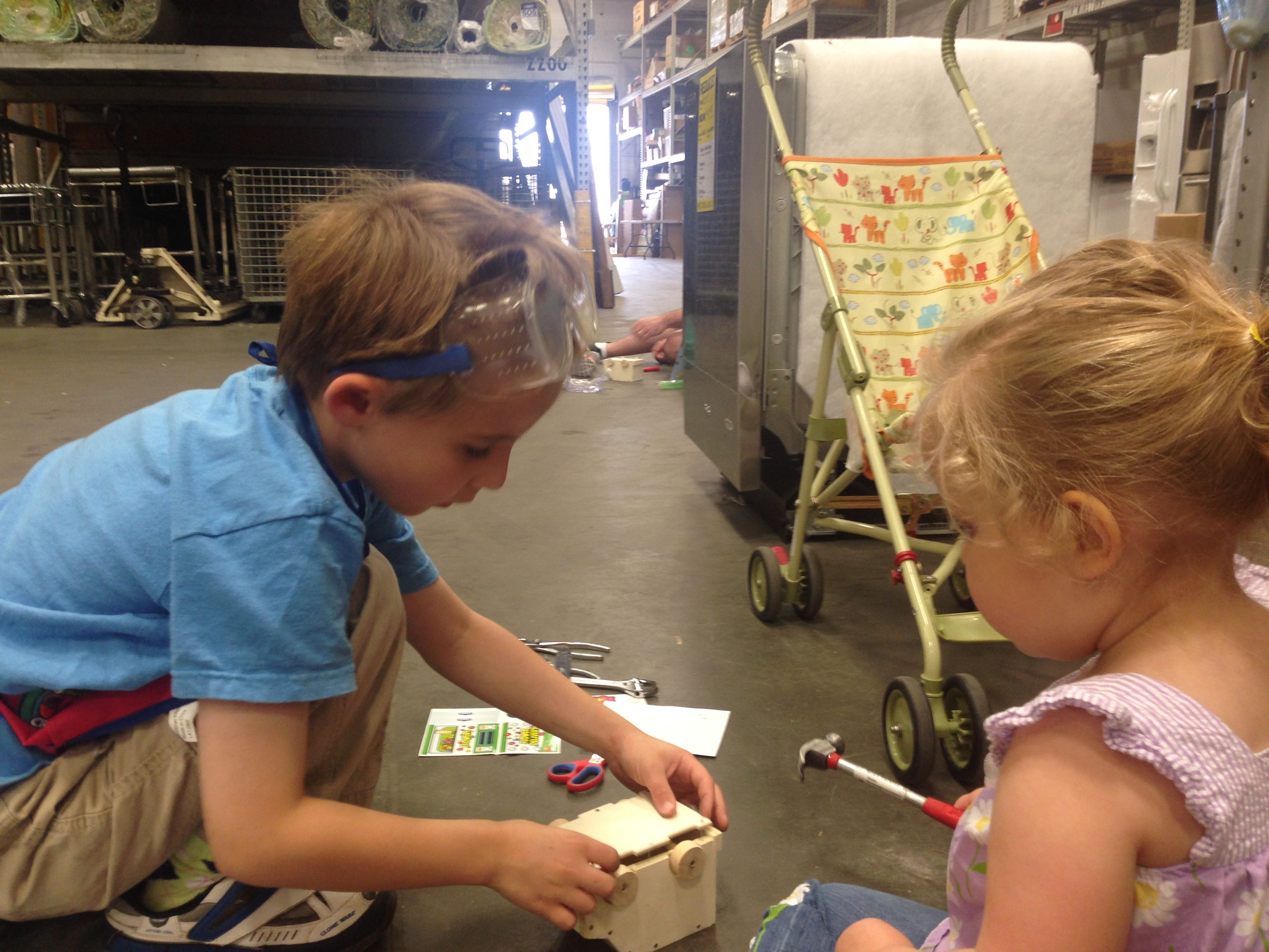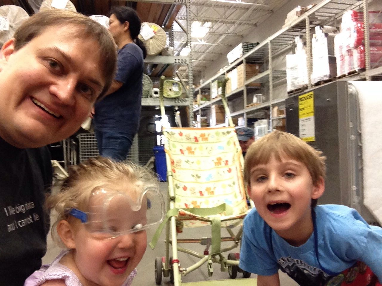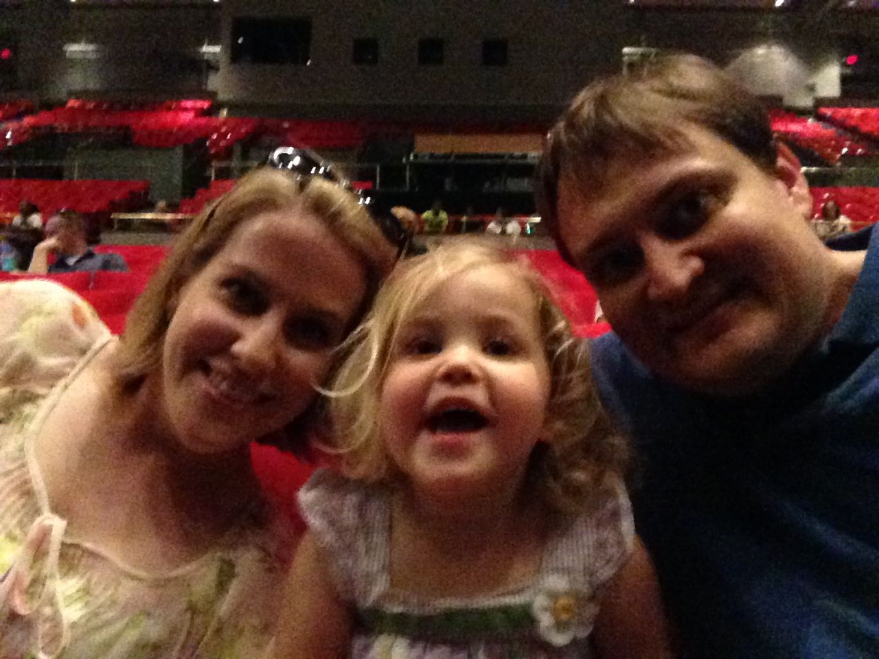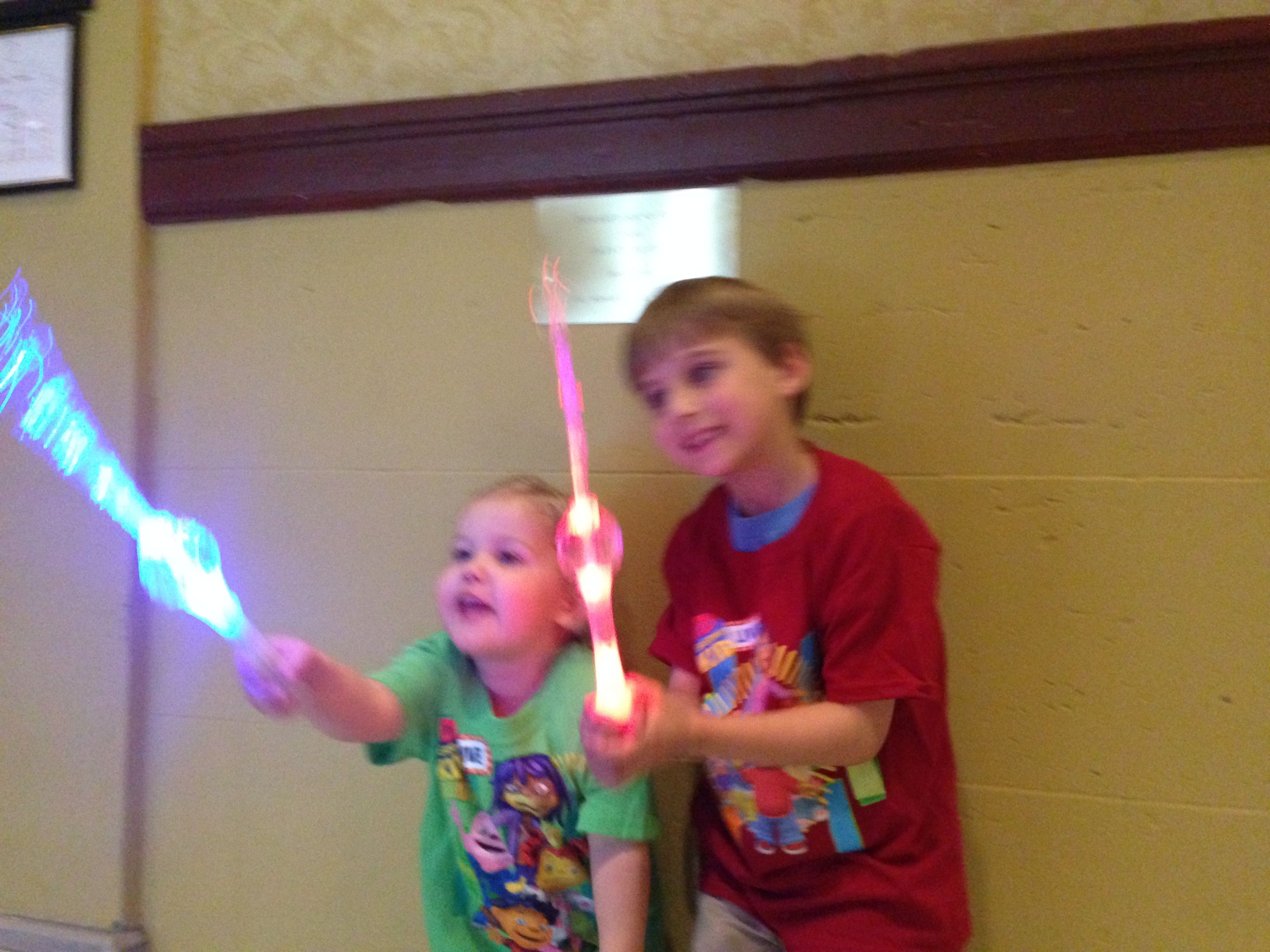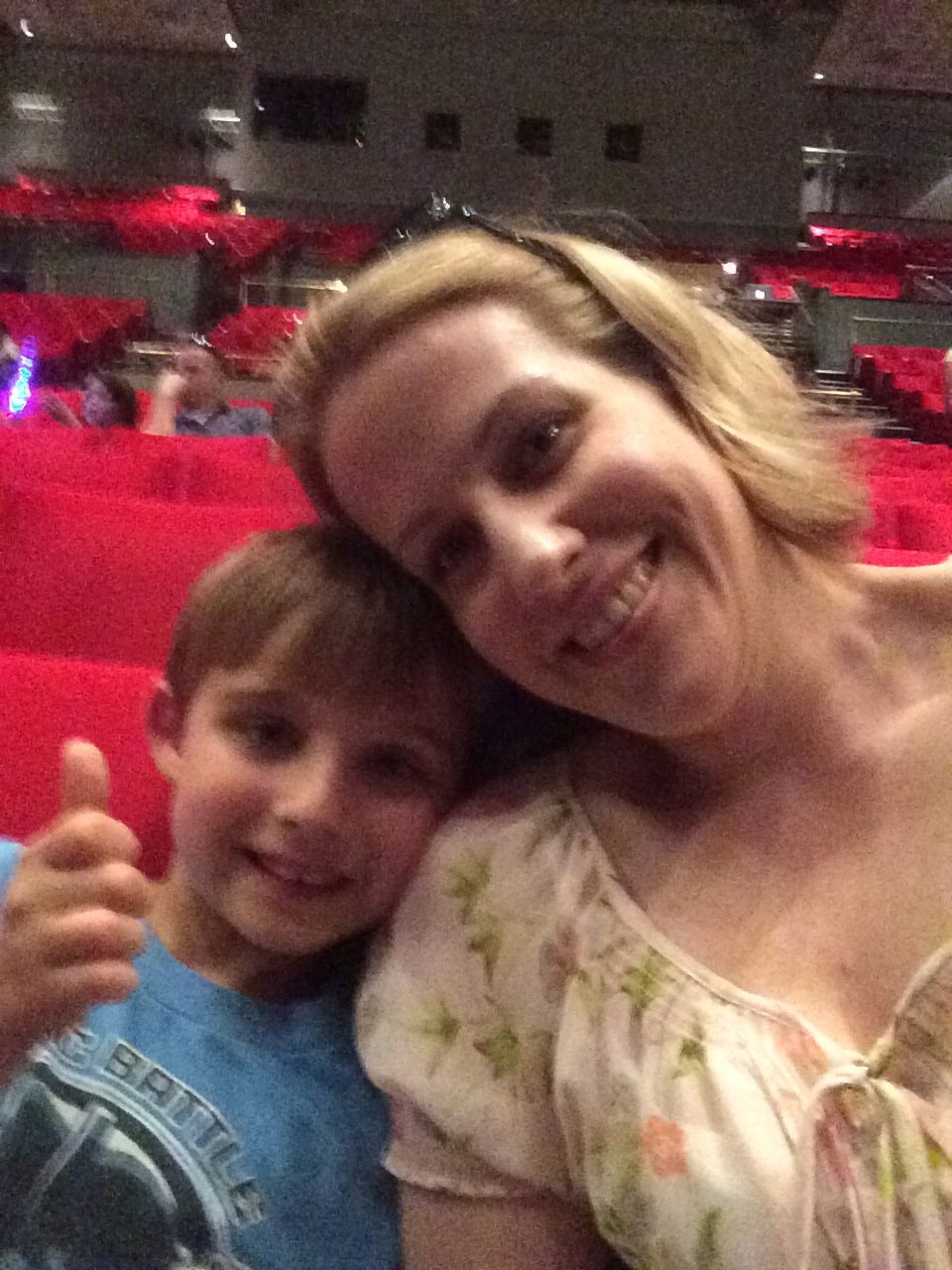 Today, Brandon and the kids let me sleep in! They headed out early to go to Lowe’s Build and Grow, where Brian and Kendall worked together to build a cute flower delivery van! They also bought me a lovely lily plant. It looks like they had a great time building together! When they came home, I was presented with beautiful bouquet of flowers, a fancy coffee from Caribou, and a huge spread of Bruegger’s bagels and sandwiches! Wow, all this, and it’s not even mother’s day yet. 🙂 Soon, it was time for Sid the Science Kid Live! So, we all packed up and were off to Memorial Auditorium. The kids were super excited to be there, and seemed to really get into the show. The theme was learning about the five senses, and a nice selection of their favorite songs from the TV show were featured. Brandon and I were kind of snickering about all the WiLd GeStuREs! and ridiculous OVER ACTING!! that the performers put themselves through, to try and approximate the animation style. It was a little much for us, but the kids really had fun. By intermission, they were so pumped up! They were also begging for the items they saw the other kids with, so we made our way to the swag table. They each picked out a t-shirt, and the crazy overpriced LED light sticks–those marketing folks are brilliant, really, selling $12 plastic items that kids flip out over to a captive audience of parents. 😉 Okay, okay, they really were pretty cool–we’re telling ourselves that they can still use them for Halloween or something..! The second half of the show was probably even more fun and exciting for them, now that they had their light sticks! After the show, they happily played in some clover they saw on the way back to the car. I thought they’d be too warm wearing their new tees on top of their regular shirts, but they wouldn’t take those Sid shirts off for anything! 😀