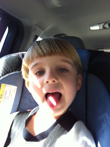 Kendall doesn’t have much hair, but Brian had too much. He enjoyed watching a big trucks video while getting a trim. Afterward he was being silly and earned himself some mini-peanut butter cups!