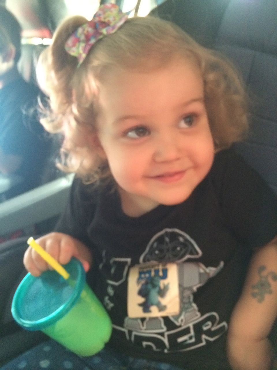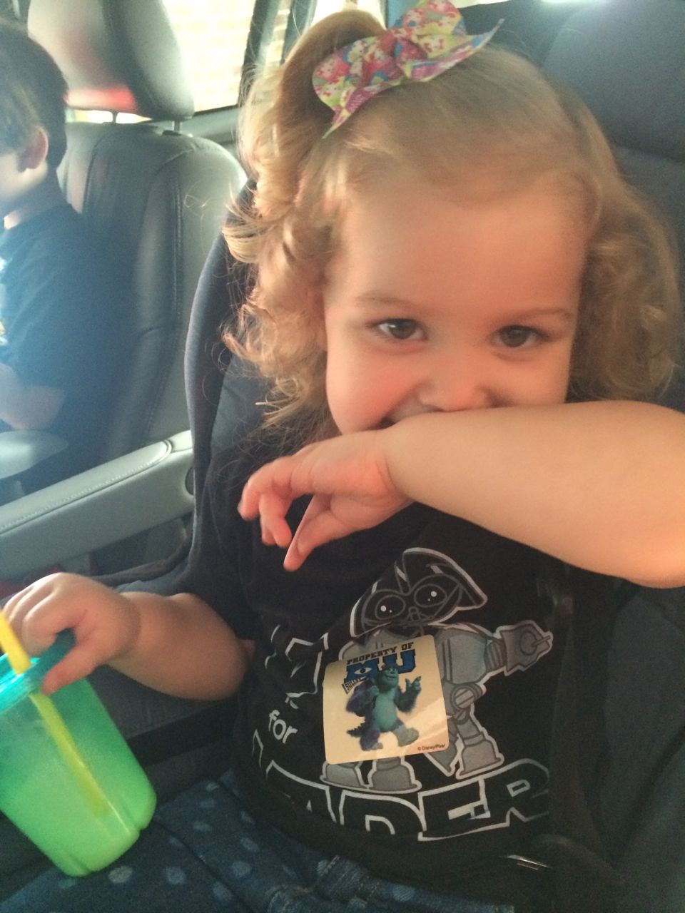Brian always gets a sticker after speech or OT, and today he noticed there were Monsters University stickers! He knows Kendall loves Sulley so much, so he got her a sticker to match his Mike sticker. What a considerate big brother! Kendall was very pleased. 🙂