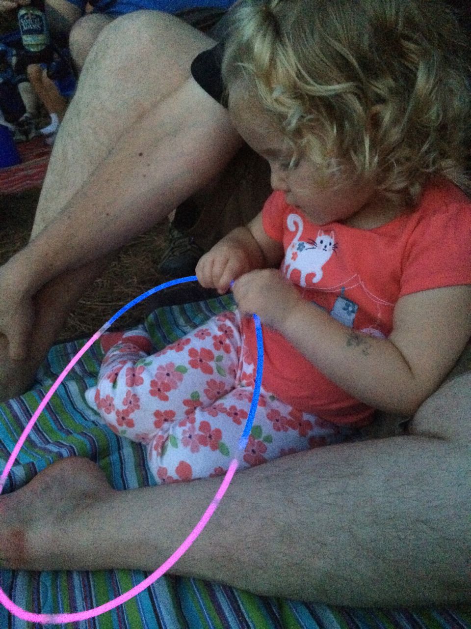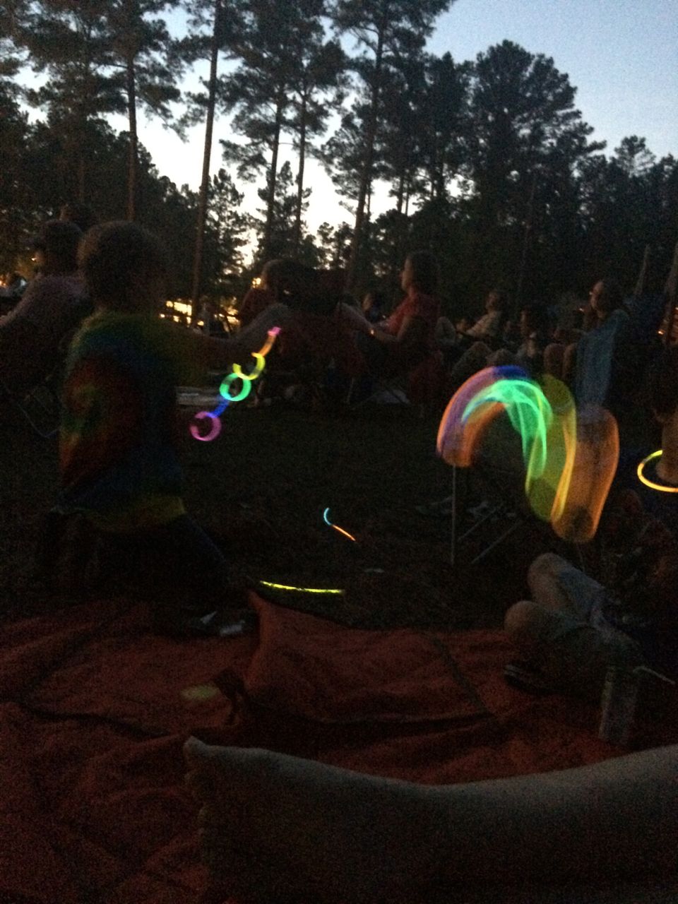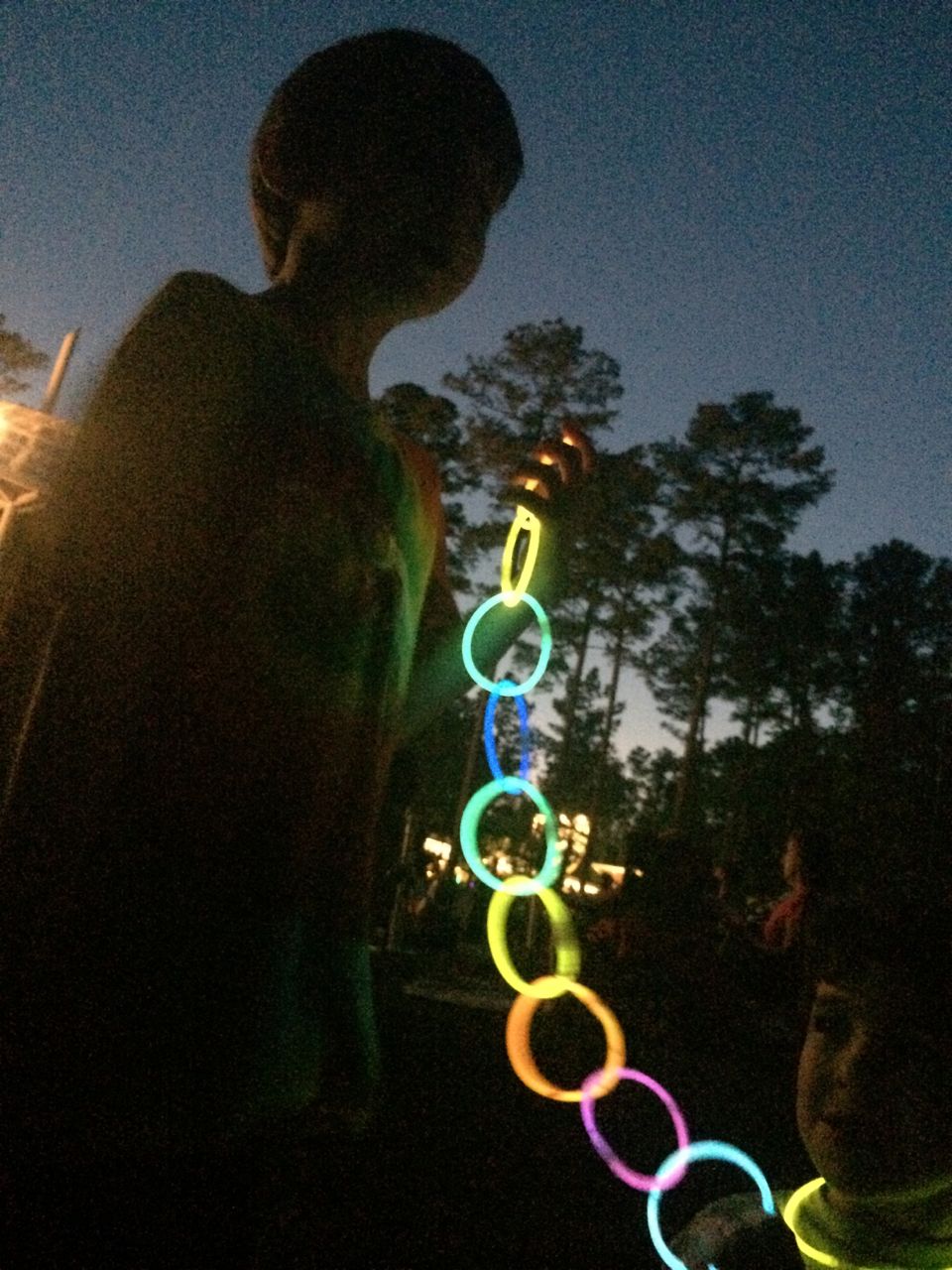 After work, we collected the children and went over to Neomonde to pick up supplies for an excellent middle eastern picnic. The kids sang along to “Pompeii” by Bastille while we waited in the car, one of their favorite songs. We were meeting the Orazis for an outdoor concert at Cary’s Koka Booth Amphitheater. The theme was John Williams music, featuring Star Wars predominantly (sort of like the concert that I’d taken Brian to before!) We met up with our friends, who had staked out a spot, and enjoyed a lovely picnic together, as the concert started. It was a beautiful evening, not too warm, and not too cool, and the food and the company were just the best. The 501st was on hand for photo ops, and I took the kids around to see the characters and let them pose for photos! The Orazis had brought a box of Moon Pies for dessert (that was Nico’s idea!) and we all enjoyed those as the sun was setting. Brian and Kendall probably hadn’t had one before, and they really got into it! Jen had remembered the fun thing I’d forgotten to bring, a bunch of glow sticks for the kids! That was really fun for them, especially as it got darker, and their attention spans got shorter, as the evening went on. Brandon and I started thinking, we should probably look into getting some lawn chairs like the Orazis have. It’s fun to sit on the blanket for awhile, but the chairs sure started looking nice after a couple hours! We did make it all the way to the end, though, and the kids played with those glow sticks all the way back to the car (not a short trek!) I ran into my friend Joni on the way, who I hadn’t seen in years! That was a nice surprise to end the evening with. All in all, a perfect early-summer day!