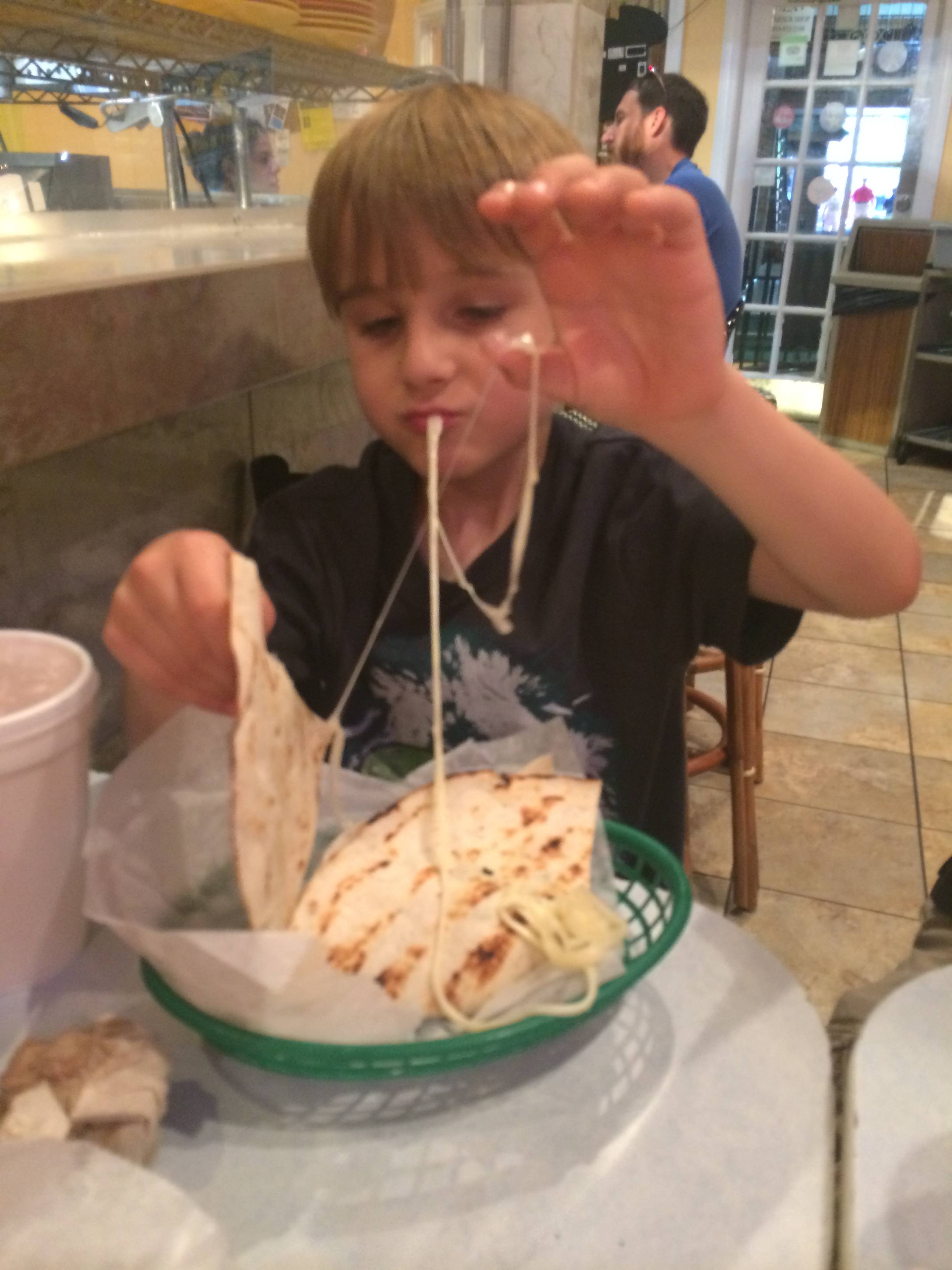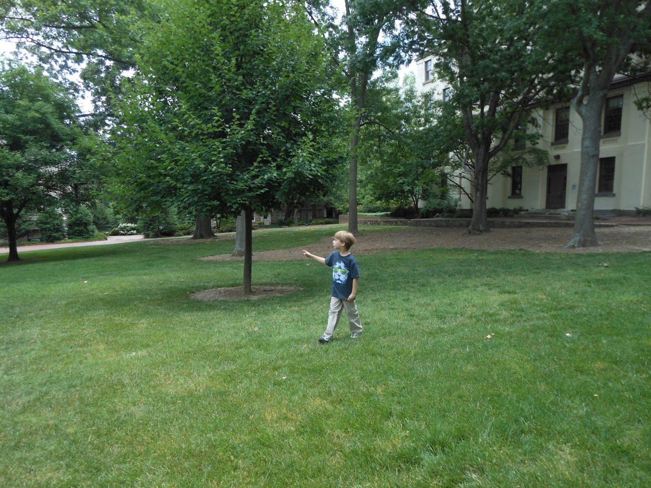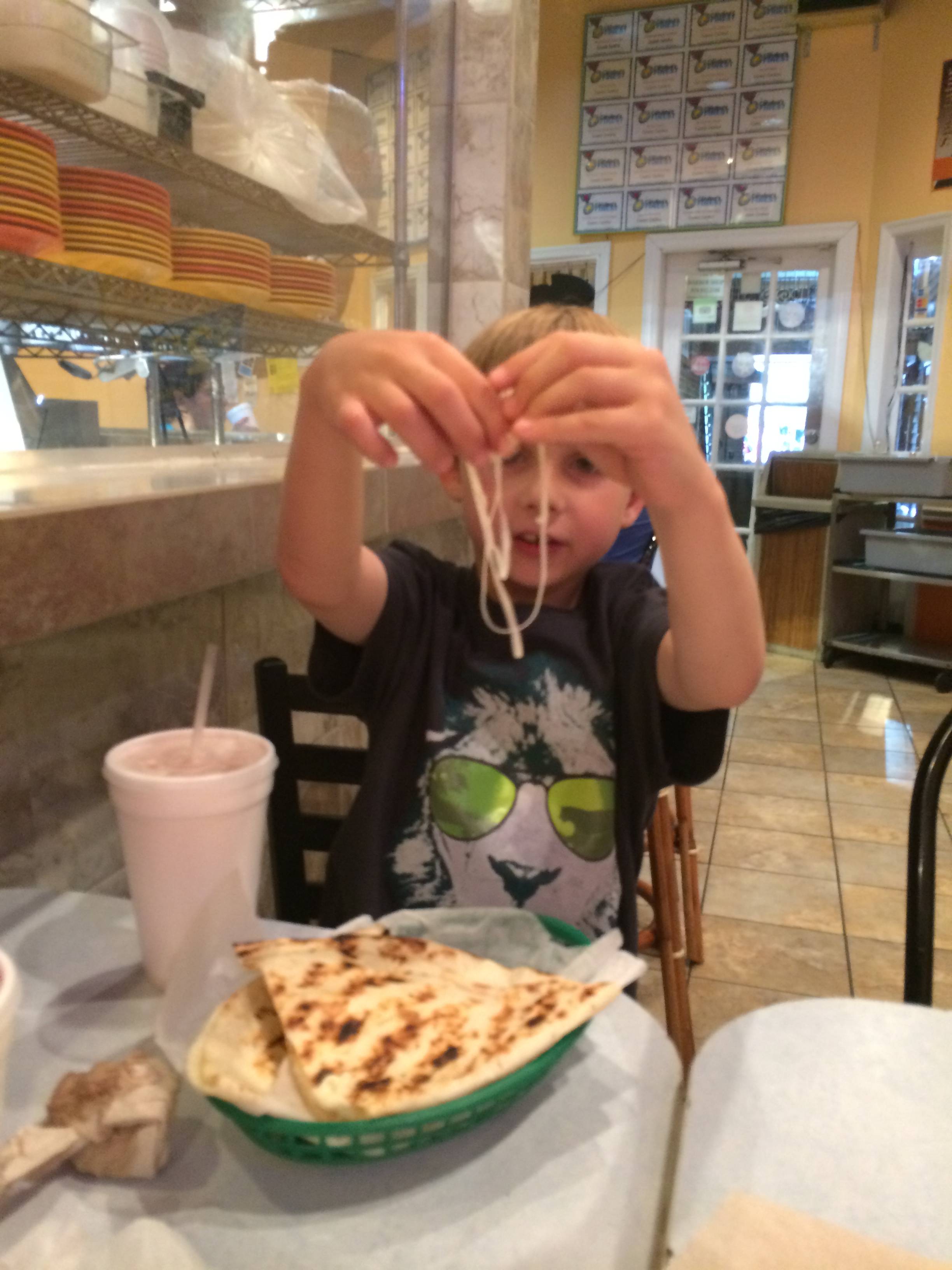 Today we finally did something we’ve been meaning to do for years–take the kids to the Morehead Planetarium in Chapel Hill! Of course, they have actually been in the building before, but it was for a Lego event, and not for a planetarium show. Today, we saw that they were having a Magic Treehouse-themed show for the kids, and we thought that would be just about perfect. Brian has gotten into that series of books since we picked up the first 12 at his spring book fair, and he has a Magic Treehouse-themed camp at Marbles coming up. So, off we went! We went a little early so we could get lunch and just hang out a bit before the show. We started off our day at Cosmic Cantina, and got a nice lunch of burritos and quesadillas. Brian loved sitting right by the kitchen window and watching the magic happen! Afterward, we walked around a bit, and spent some time looking at this cool mist art sculpture. I liked how even the graffiti in Chapel Hill is bookish (that’s a Harry Potter reference!) Next up, we visited the Yogurt Pump. The kids enjoyed some classic frozen yogurt, just as we had for so many years in Chapel Hill. Then, it was time to head to the show, so we made the walk back over to the planetarium. The show was really cool, and might have given us some hints as to what we could expect going forward in the Magic Treehouse series! The planetarium was closing for a private event right afterward, but as I suspected, they didn’t exactly kick us out if we had money to spend, so we picked up a cool science t-shirt for Brian. I fell in love with some cool planetary plates, but didn’t see them until we were already checking out–I didn’t want to push my luck any further by making things take longer. 😉 After that, we walked around Coker Arboretum some, enjoying the lovely plants (and some animals!) We showed the kids where we were married, and then took the wisteria and carolina jasmine vine tunnel back to the car. We were pretty exhausted by then, but it had been a great day! I hit up the Fresh Market on the way out of town, and bought us a bunch of bottled juices and some fresh fruit to enjoy back at home. 🙂