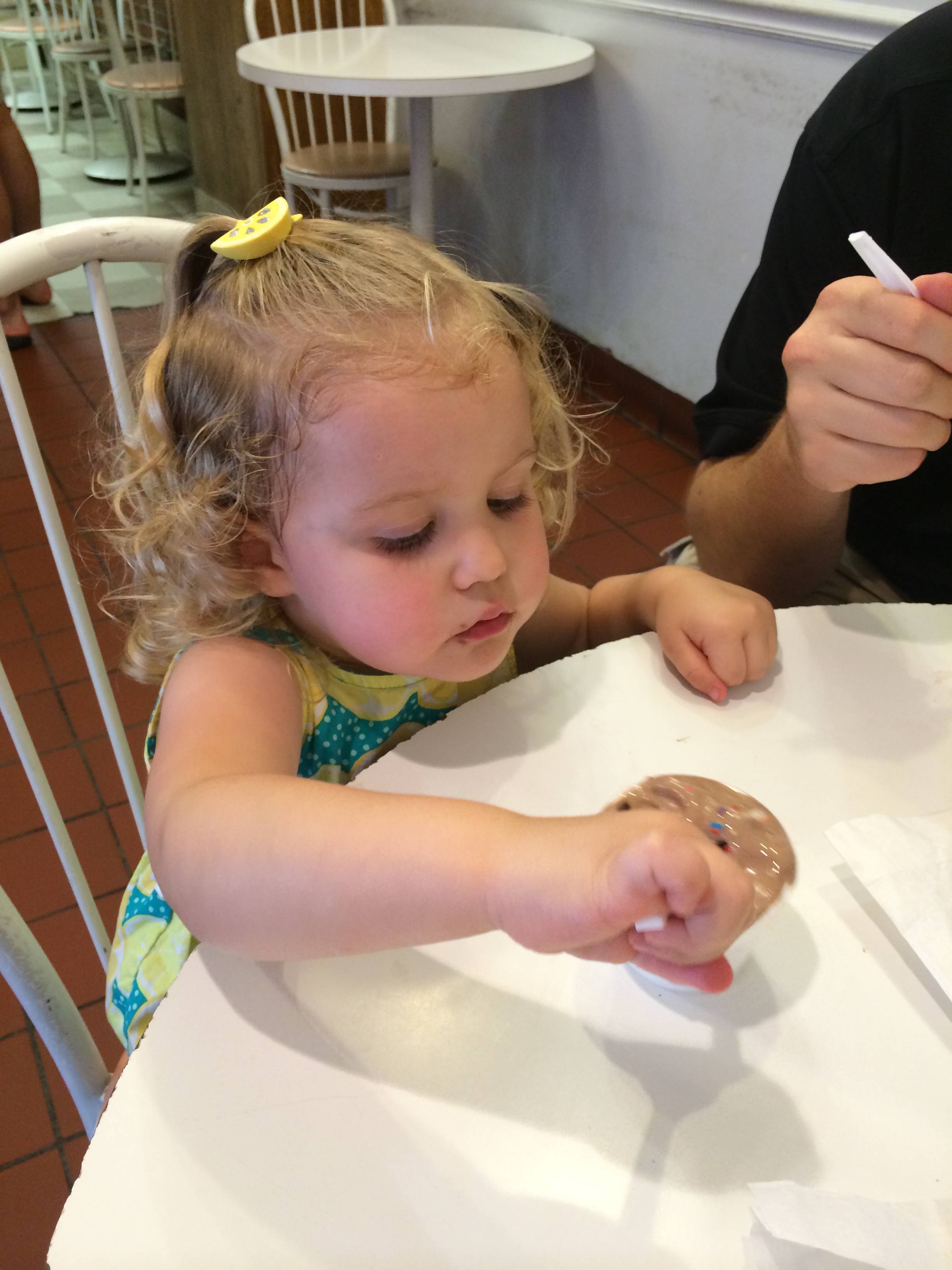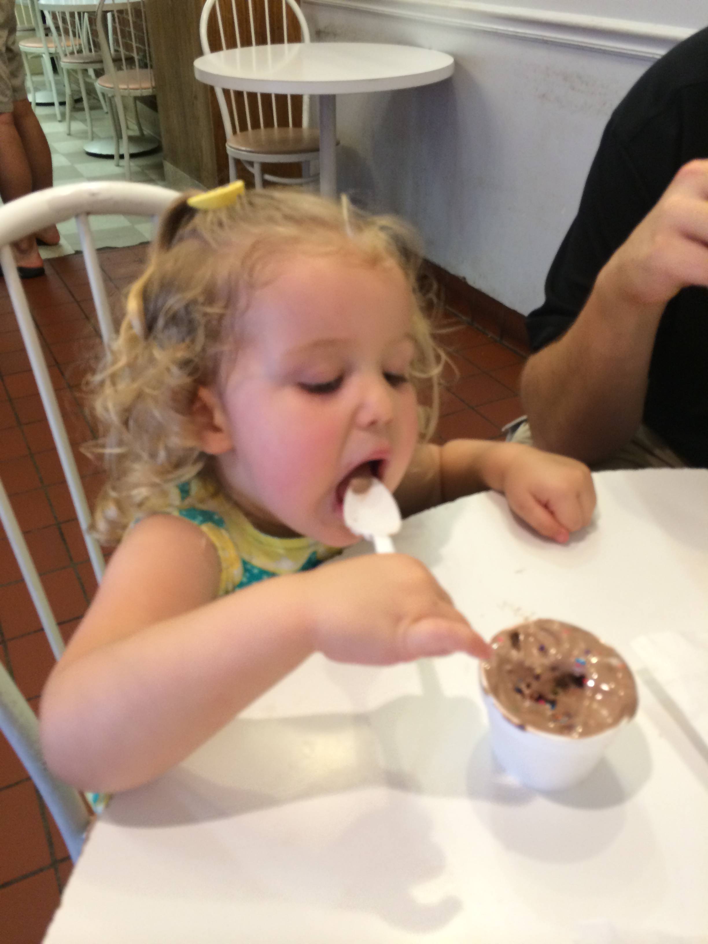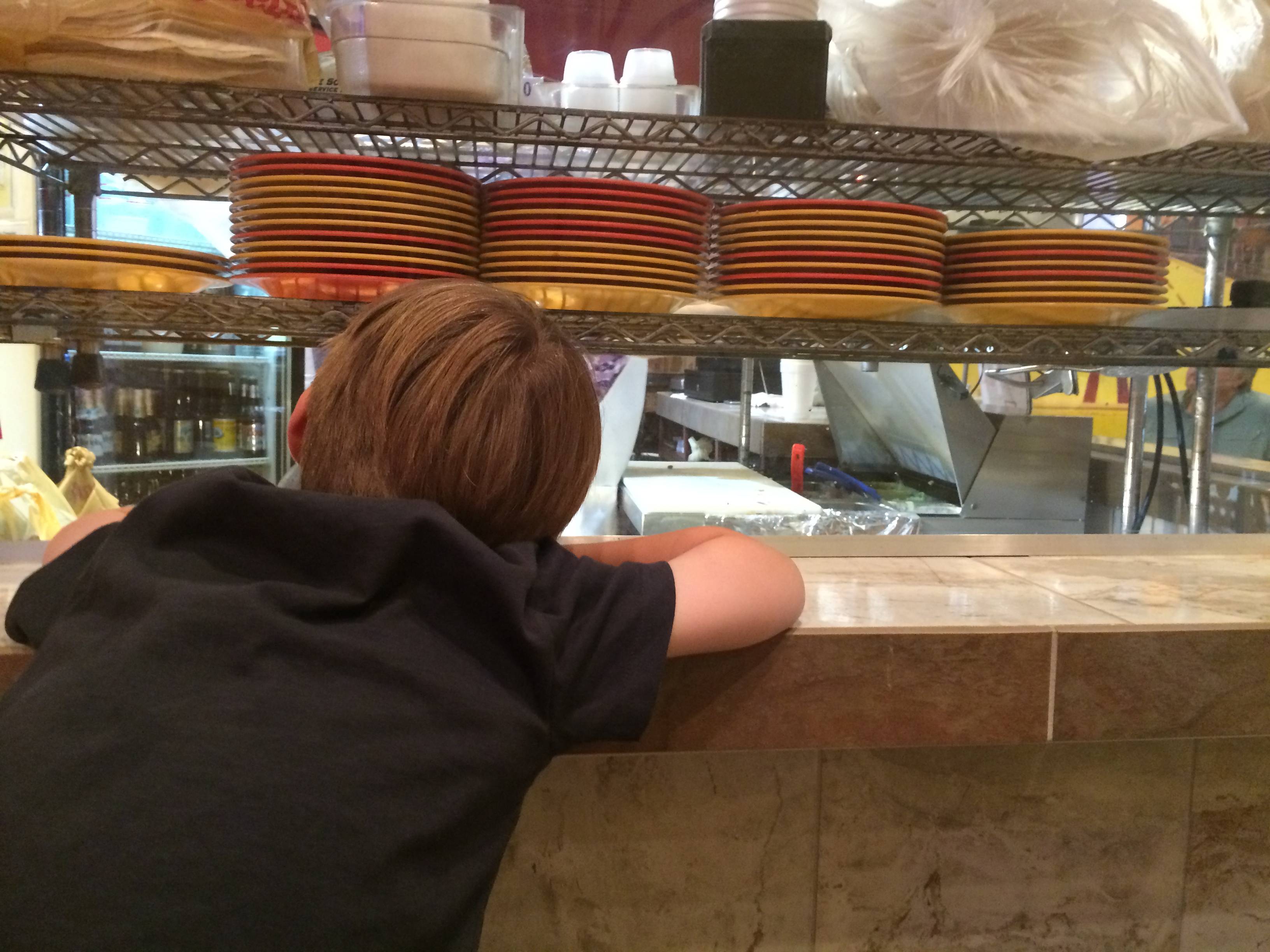 Today we finally did something we’ve been meaning to do for years–take the kids to the Morehead Planetarium in Chapel Hill! Of course, they have actually been in the building before, but it was for a Lego event, and not for a planetarium show. Today, we saw that they were having a Magic Treehouse-themed show for the kids, and we thought that would be just about perfect. Brian has gotten into that series of books since we picked up the first 12 at his spring book fair, and he has a Magic Treehouse-themed camp at Marbles coming up. So, off we went! We went a little early so we could get lunch and just hang out a bit before the show. We started off our day at Cosmic Cantina, and got a nice lunch of burritos and quesadillas. Brian loved sitting right by the kitchen window and watching the magic happen! Afterward, we walked around a bit, and spent some time looking at this cool mist art sculpture. I liked how even the graffiti in Chapel Hill is bookish (that’s a Harry Potter reference!) Next up, we visited the Yogurt Pump. The kids enjoyed some classic frozen yogurt, just as we had for so many years in Chapel Hill. Then, it was time to head to the show, so we made the walk back over to the planetarium. The show was really cool, and might have given us some hints as to what we could expect going forward in the Magic Treehouse series! The planetarium was closing for a private event right afterward, but as I suspected, they didn’t exactly kick us out if we had money to spend, so we picked up a cool science t-shirt for Brian. I fell in love with some cool planetary plates, but didn’t see them until we were already checking out–I didn’t want to push my luck any further by making things take longer. 😉 After that, we walked around Coker Arboretum some, enjoying the lovely plants (and some animals!) We showed the kids where we were married, and then took the wisteria and carolina jasmine vine tunnel back to the car. We were pretty exhausted by then, but it had been a great day! I hit up the Fresh Market on the way out of town, and bought us a bunch of bottled juices and some fresh fruit to enjoy back at home. 🙂