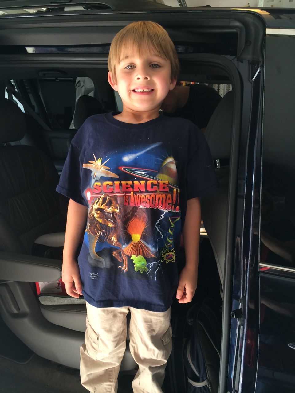 Brian wore his fancy new “science is awesome” tee shirt today! We picked this up at the planetarium when we went to Chapel Hill. Brian went to the doctor today, as we found a tick on him last night while washing his hair, and we were concerned.. But the doctor said it was removed cleanly and that we probably don’t have anything to worry about. Fingers crossed!