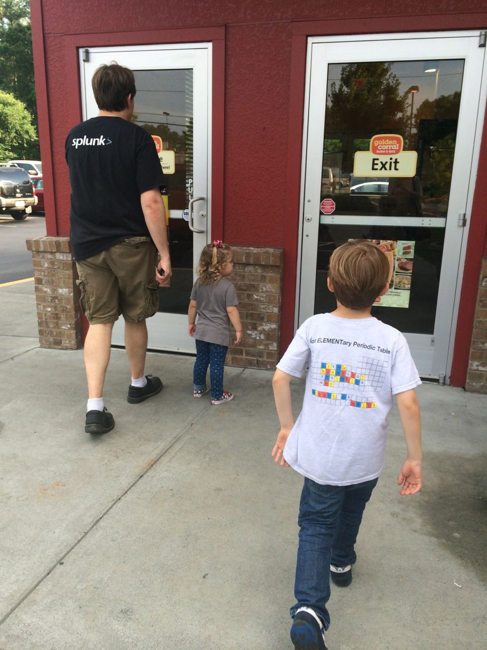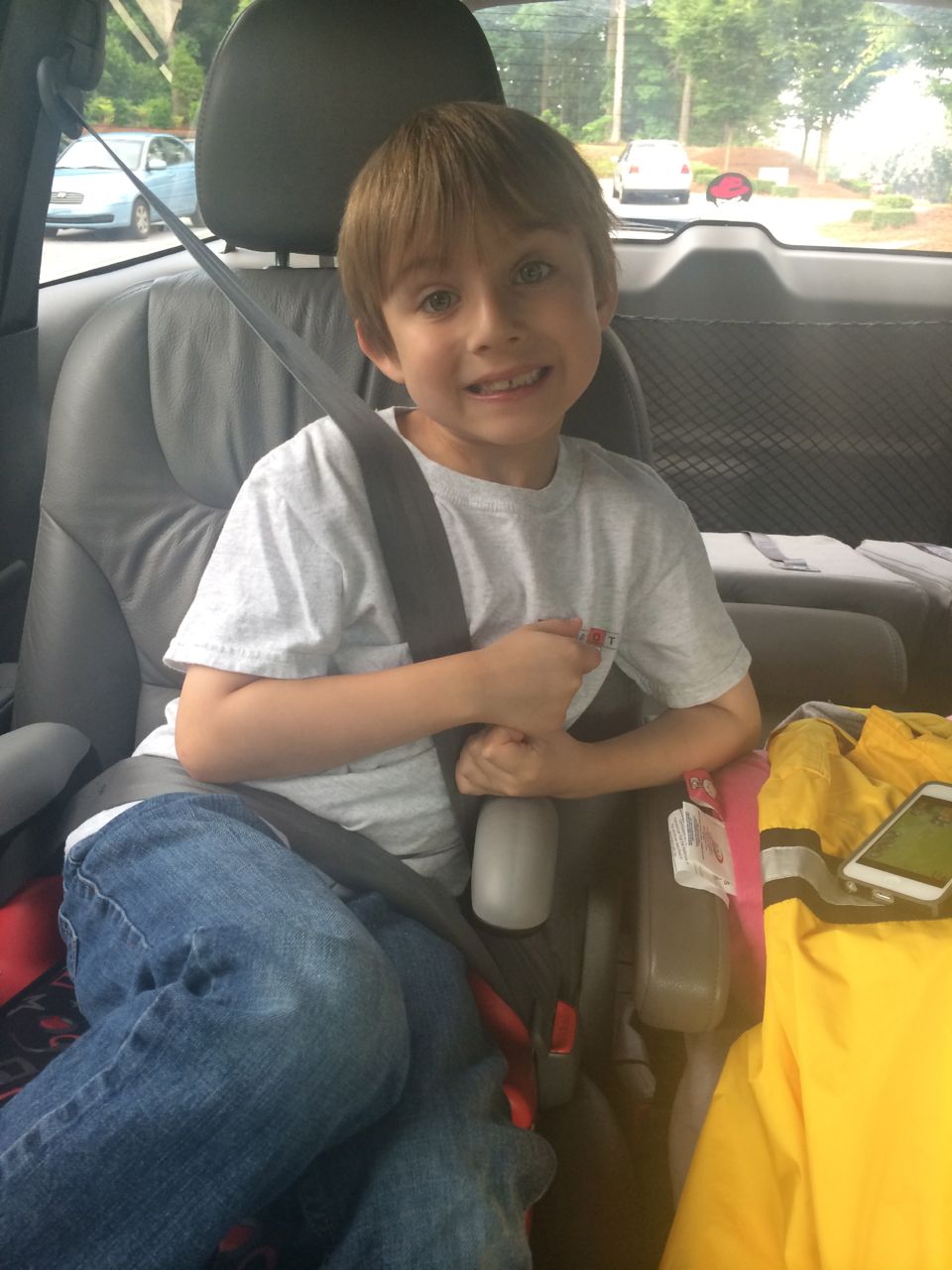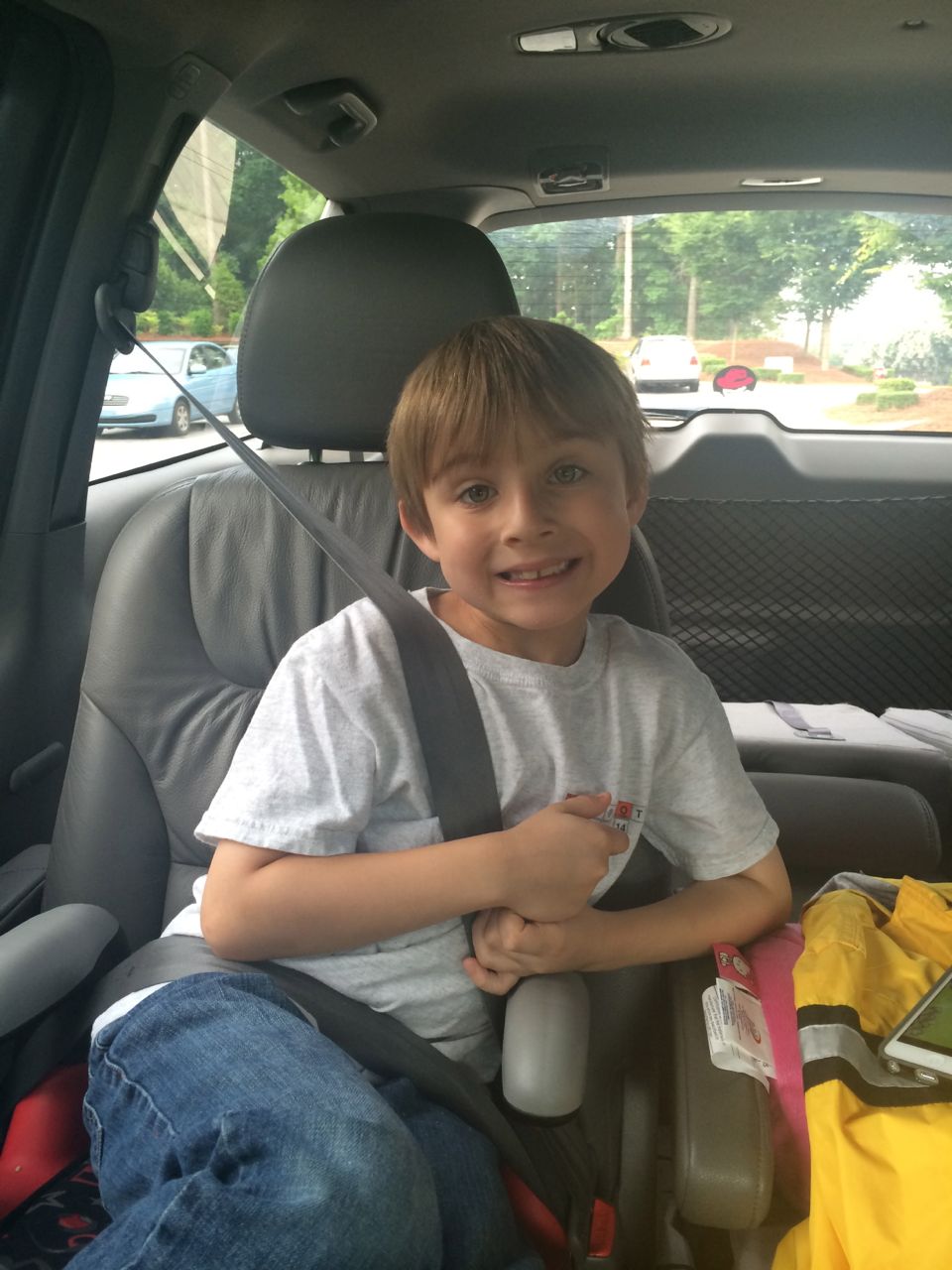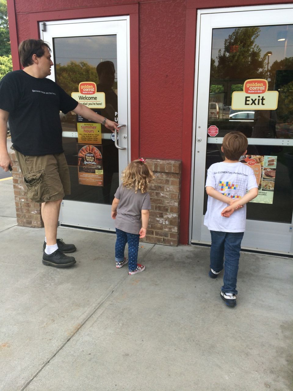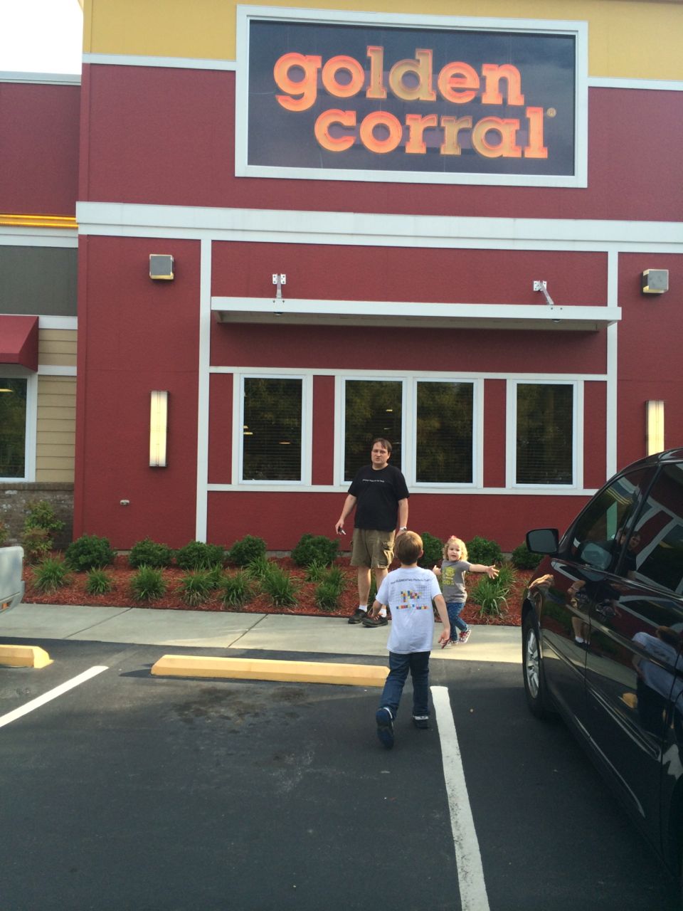 Well, he did it! Brian has finished his first whole year as an elementary schooler, and completed Kindergarten today with flying colors. It’s a little bittersweet, of course, but new fun and adventures await in first grade–not to mention the summer filled with many different camp experiences! Sadly, today Brian has to say goodbye to the after school program at Laurel Hills, since they have cancelled the transportation service from Root for next year. Theoretically, Root will have its own after-school program starting in the fall, but Brandon and I are a little nervous, since it doesn’t seem to be a done deal as of yet. I guess we’ll hope for the best for now, and deal with the worst should it come to that in the fall! We asked Brian how he would like to celebrate, and he asked to go to Golden Corral. Now, Brandon and I may have enjoyed it back in the 80’s as kids, before they went full-on buffet insanity. But now, meh, it’s not all that good, and feels sort of icky. We don’t like it anymore, and have said no every time Brian has begged to go there for the past 8 months or so of hockey season. (All the commercials make it sound like a great idea to him!) But, today was about him, not about us, so we gave in. He was so happy to get the chance to go there! He loved having all the choices, and the chocolate fountain was a big hit, of course! 😉 I think maybe he did start to understand that the food isn’t actually all that delicious (well, maybe except for that cake!), but it was worth sharing the experience, I guess! Clearly, it was meant to be, since even the ketchup-bottle trivia question we got was about Brian’s favorite book, The Day The Crayons Quit. 😉