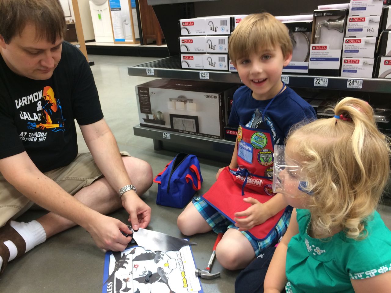 I actually had breakfast with the kids while Alison got her chance to get ready.  We did have an unfortunate juice spill near the end of the meal, which explains why Kendall’s outfit changes as you view the gallery.  Luckily, we are veteran parents, at this point, and know to over-pack clothes for the kids.  Once we got Kendall changed and Alison got breakfast, we checked out, packed the van, and walked across the parking lot to Lowe’s (meandering through the Garden Center to get there).