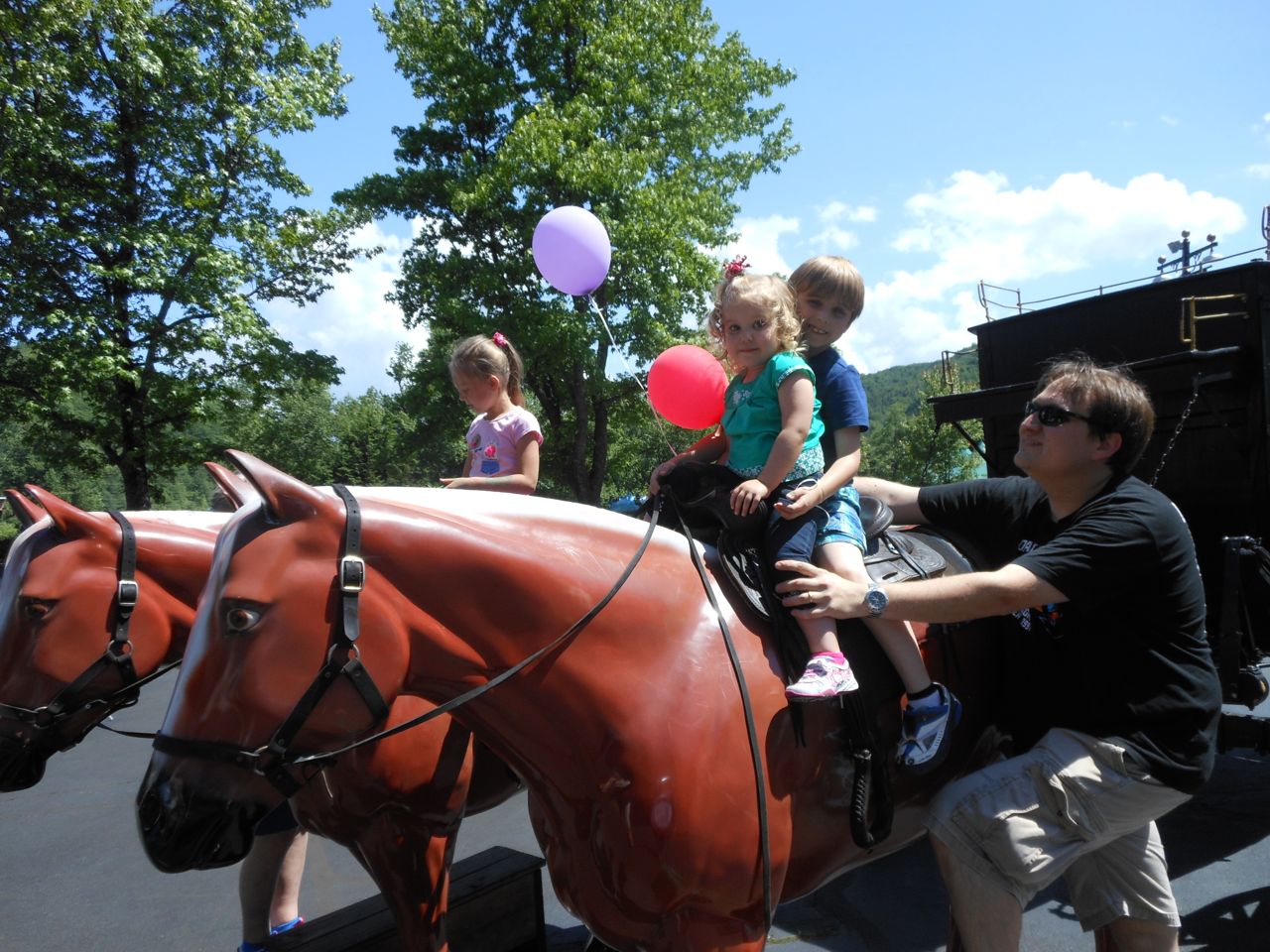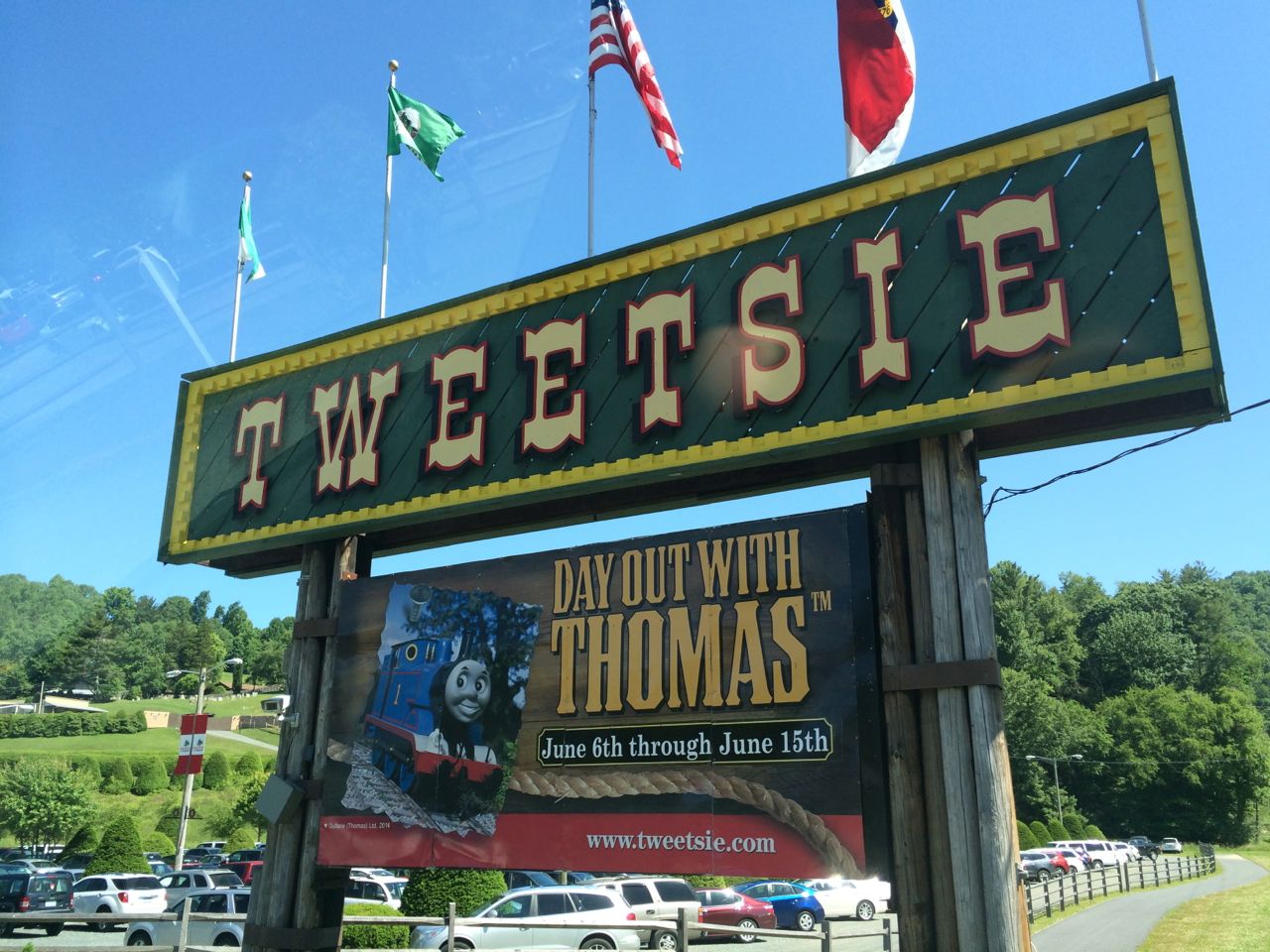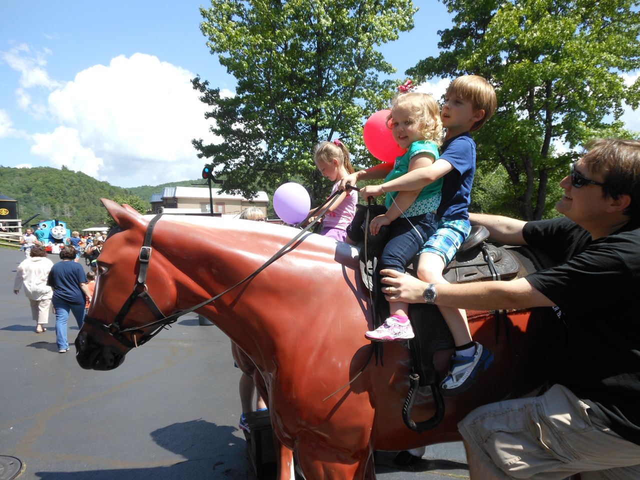 Regular readers of our family expeditions know that we have been making yearly treks to spend a day out with Thomas since Brian was first able to watch the show.  This year is no different, and this is the biannual trip to see him at Tweetsie Railroad, in Blowing Rock, instead of the NC Transportation Museum, in Spencer.  The trip two years ago worked out well, with an infant even, that we basically setup the same trip.  We left Raleigh after Brian attended Hudson’s Birthday Party yesterday, followed by Brian’s skating lessons.  We just pushed through the night to get to the hotel in Boone and get a bit of rest before the busy day.  A bit tough on us adults, but the kids find it fun.