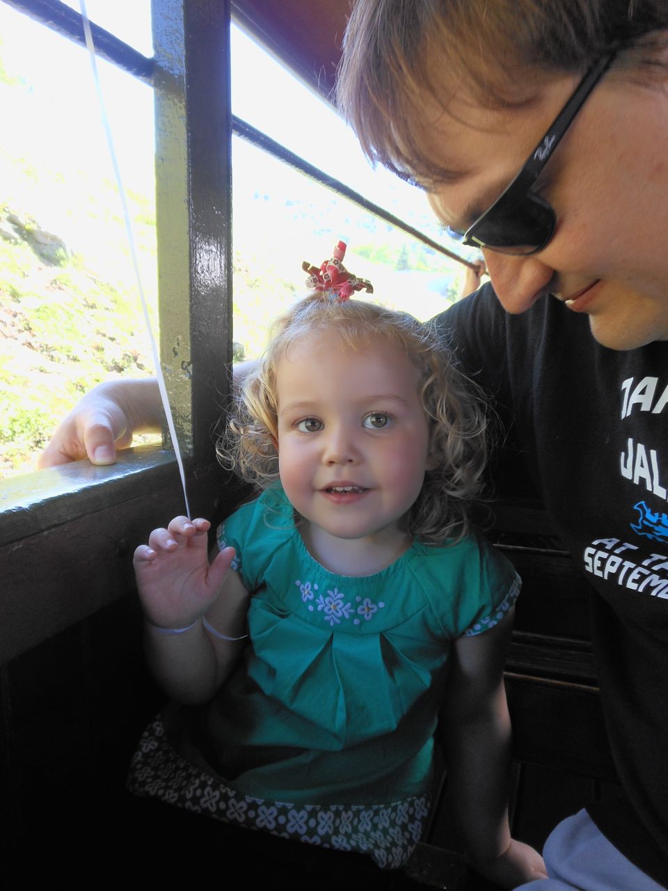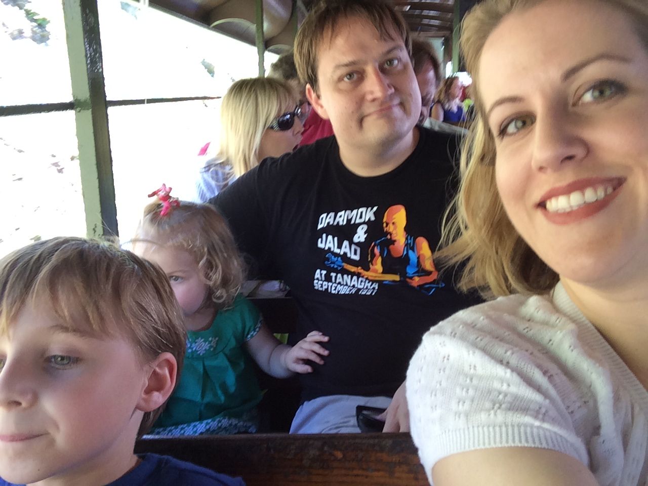 So, back in the van and it’s five minutes up the road to Tweetsie!  We left at a time where things lined-up nicely for us to check-in and then just queue up for our train ride, as the preceding trip was leaving as we entered the gate.  This gave us time to get a good spot in line and to get our sunscreen on for a fun-filled day outside.  Alison and Brian shared a seat while Kendall and I shared another.  We intentionally picked the side so we could see the “action” at Fort Tweetsie (it’s good being return visitors in knowing these tricks).  The trip was it’s usual fun, especially on such a beautiful day!