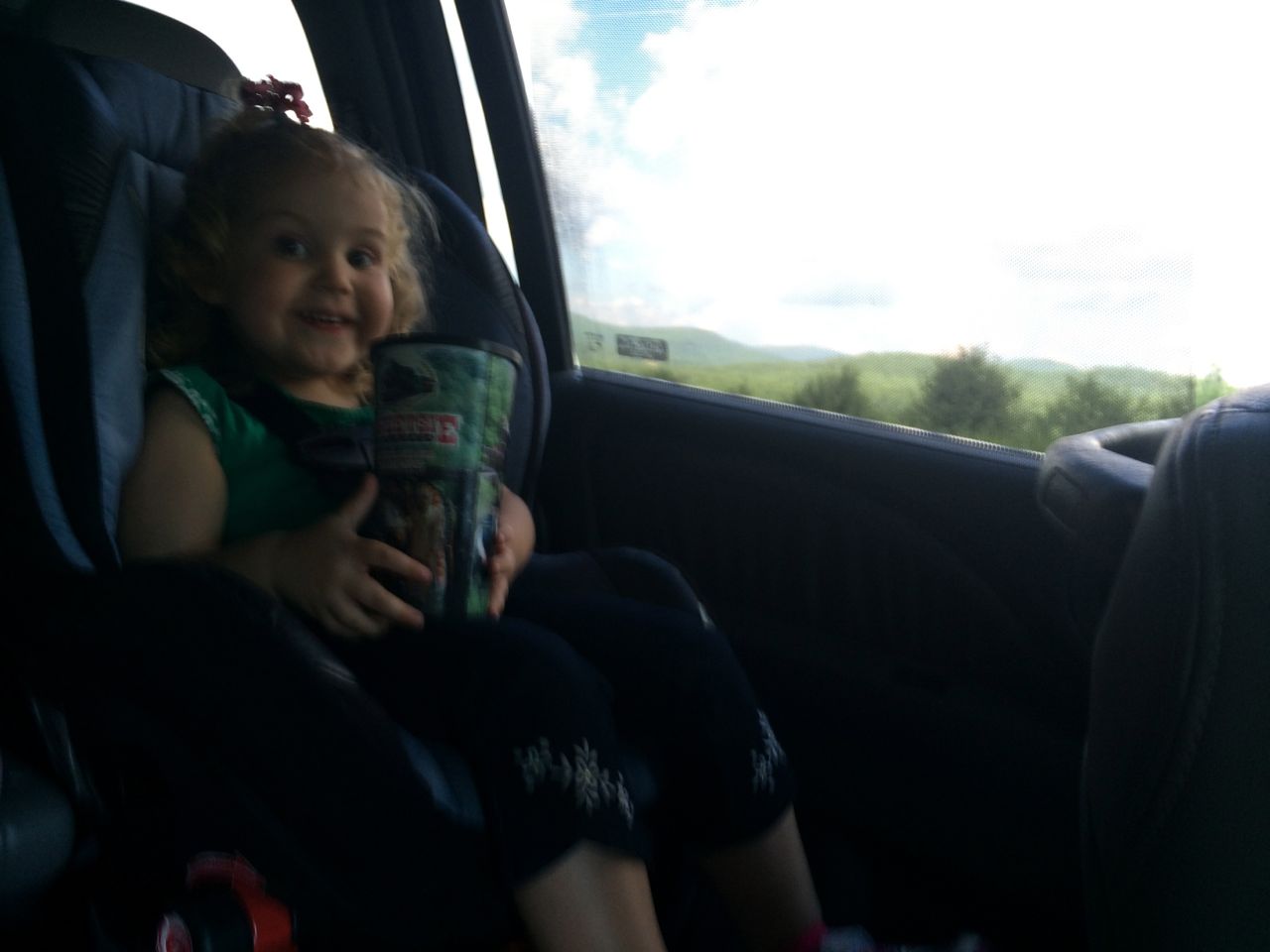 After a few more stores and a few more photo-ops, we decided it was time to hit the trail.  We picked-up our commemorative professional photos and headed to the van.   The plan was to do what we had done two years before, jump on the Blue Ridge Parkway for some welcome mountain views for us piedmont folk.  This trick also helps so that Kendall can get her nap in before dinner time.  Well, things didn’t *quite* work out the way we anticipated.  Brian had more fun than we had thought, and he passed out before the first mile marker.  And, Kendall, who already had a power-nap on dad, was wide awake.  Oh well, we had to break out a toy from the gift shop to keep Kendall from waking Brian and we made it to our waypoint at The Orchard at Alta Pass.