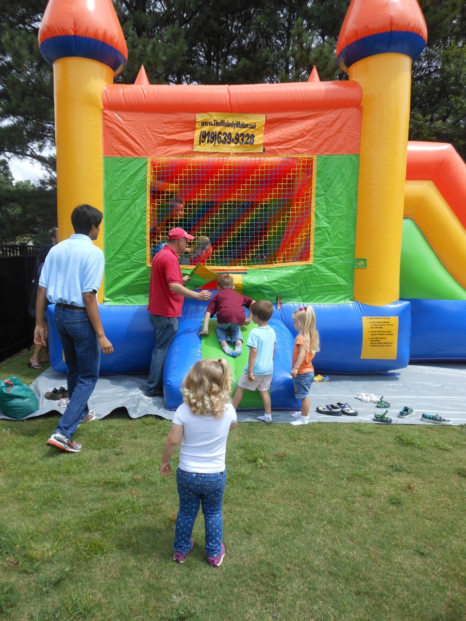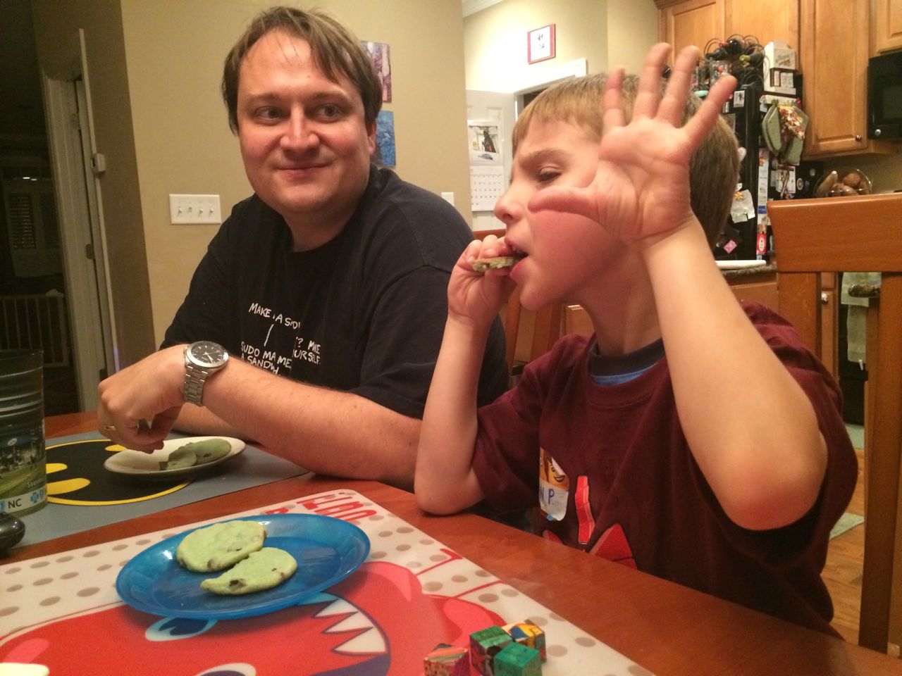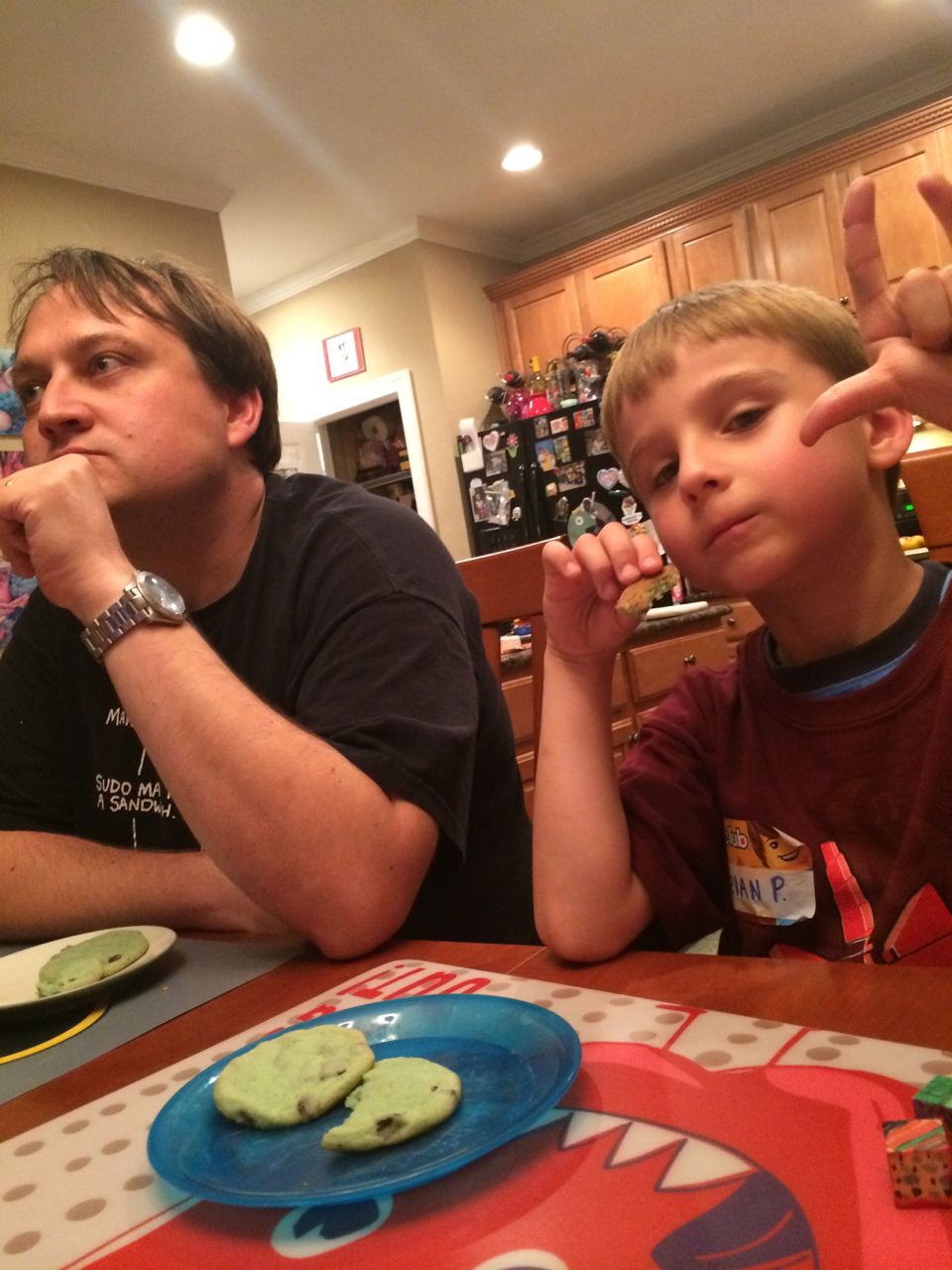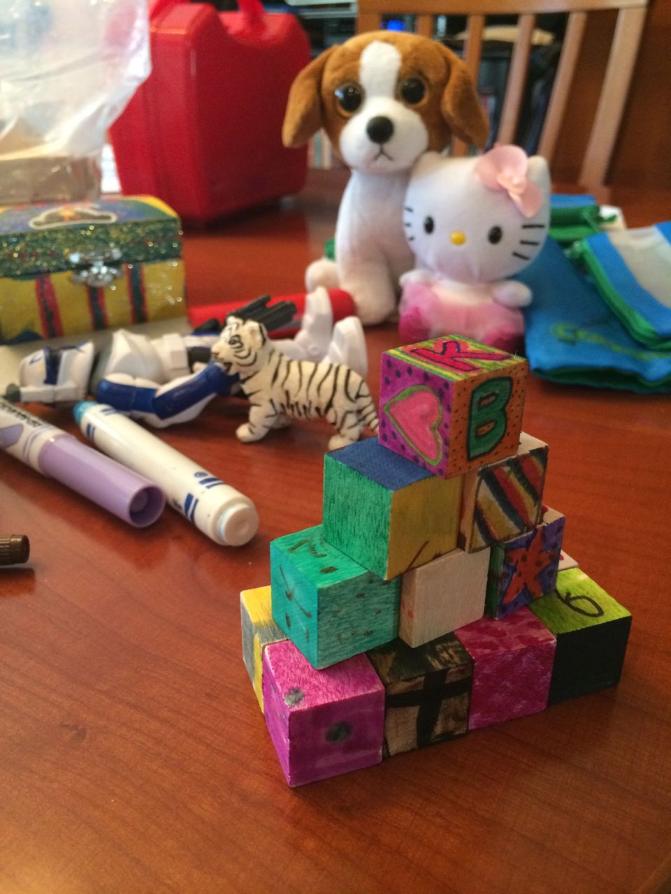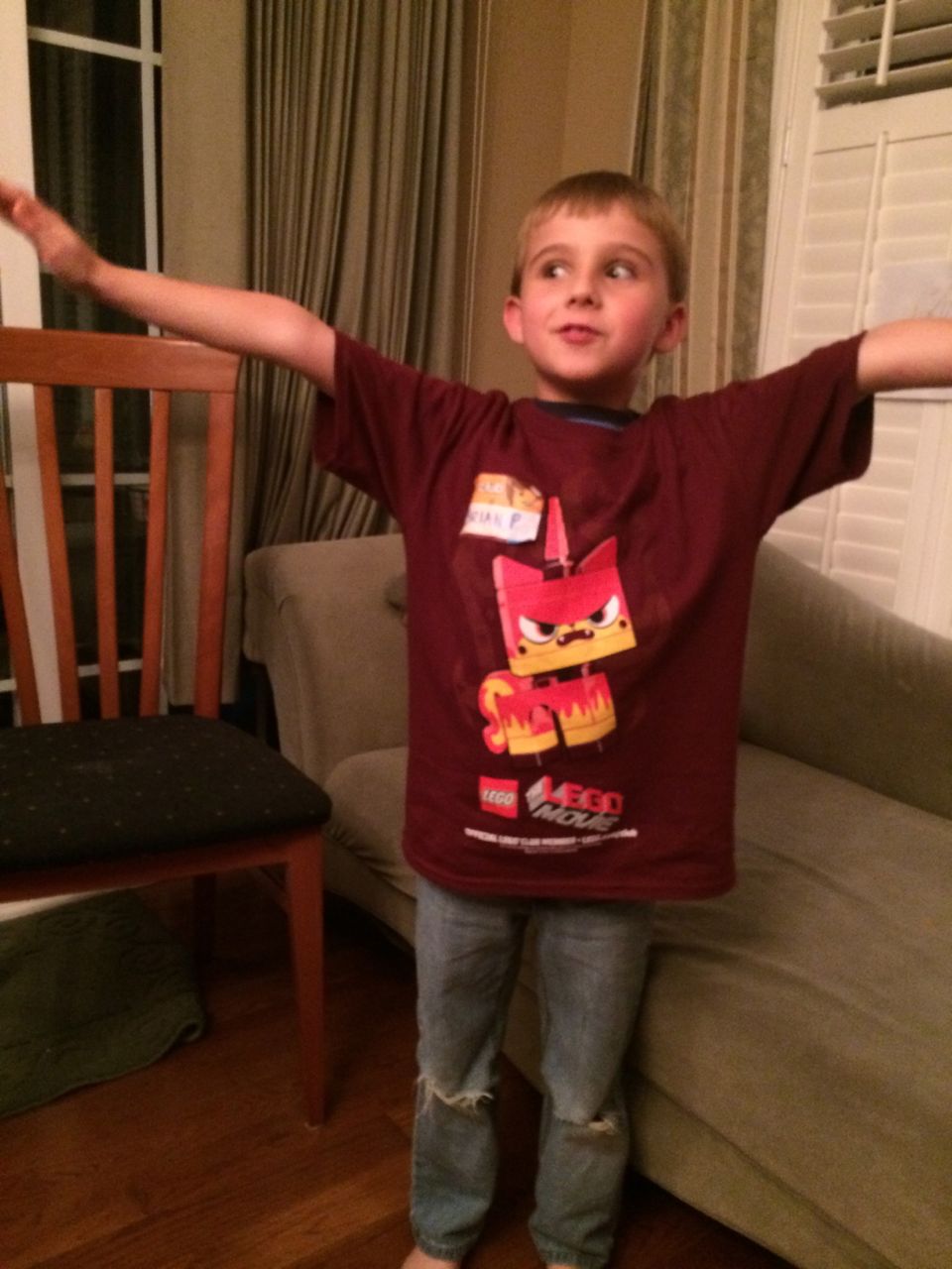 Just another lazy Saturday for the Perkins clan–oh, no wait, we don’t have those. 🙂 It was the crazy-busy kind of Saturday that we usually have! We started things off bright and early with a Lego Movie-themed Lego meeting. Next up, a Lowe’s Build and Grow where Brian built a cool How To Train Your Dragon 2 Sheep Launcher game! He thinks this is awesome, and really, it works way better than you’d think! After that, we met up to head over to Goddard School for their annual Birthday Party celebration. There was free food, snow cones, games, a bouncy house, and of course, fun things to do in every classroom! Ty was in attendance, and he and Brian had a fantastic time catching up with each other. We spent the most time in Brian’s last classroom with Ms. Tanisha, and the kids played with the big blocks for quite awhile! We ate in shifts, and Ty’s mom brought the kids their Kona Ice treats. We closed the party down, as usual, since the kids just couldn’t bear to leave! They got some balloons to take home, since the staff was already cleaning up. 😉 Back at home, Kendall napped, and Brian shared with us some of his items from camp last week, including a cool treasure map! Rosemary came by in the afternoon, and brought some of Brian’s clay projects that he’d done with her earlier this year. They painted his bear brown, and his bird yellow with an orange bill. Maybe it’s a duckling. 🙂 Rosemary also brought each kid a new plush toy (a Kitty for Kendall and a puppy for Brian), and some small natural wood blocks that the kids had a great time decorating with markers! It looked so fun, I even got in on some of that action. 🙂 Kendall loved stacking and knocking the little blocks down, and was so excited when we put a letter K on them for her! She recognizes a good number of letters already, but none more so than K! “Dat’s a K! K my Kendall!” is what she says when she sees one. 🙂 We decided to have a movie night during dinner, and since Brian has now done two Build and Grow projects about How to Train Your Dragon 2 without knowing what this Dragon thing is all about, we finally convinced him to watch the first movie, which we’d previously purchased on DVD/BluRay. He might have been on the fence before we started it but..! It was so good! Wow. Brian absolutely has fallen in love with this franchise. We all liked it even more than we thought we would. Really, it’s a great movie–I honestly could watch it again and again. We’ve decided to go and see the sequel in the theaters tomorrow! I am way more excited about that than a grownup probably should be. 😉 Brian was so taken with the soundtrack, he was humming and singing some of the themes for the rest of the night, flapping his arms and pretending to be flying around like a dragon! I have already bought him some of the soundtrack songs on iTunes. 🙂 We made some mint chocolate chip cookies for dessert during the movie, which were a huge hit with Brian–he couldn’t even tell us how good they were at first, waving us off saying “Oh. Mmm.. Just.. Just forgetaboutit!” (followed by dropping the sign language for “I love you.”) 😀
