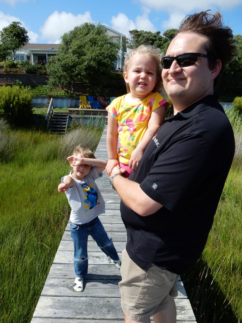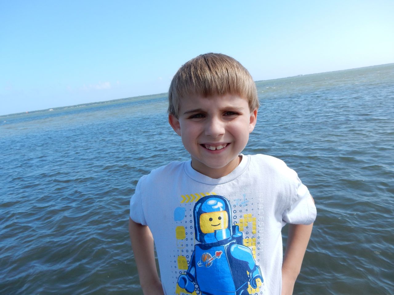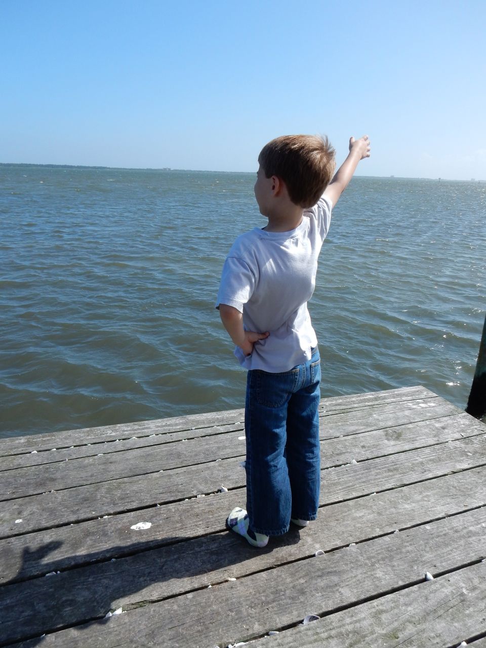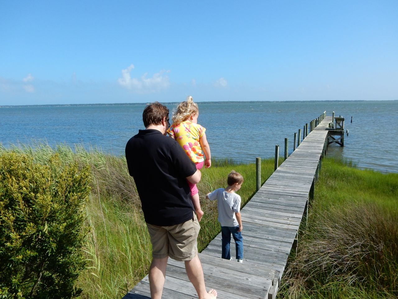 Today we started our summer beach trip! We hit up the Bojangles on the way down, and discovered they had special BoBerry biscuits! For the 4th of July they have patriotic red “strawberry” and blue “blueberry” bits to go along with the white icing. Awesome. We shared a couple of them for dessert and they were better than they had any right to be. 😉 Afterward we hit the road again, and like the Beach Boys sang, “we’ll get there fast, and then we’ll take it slow!” We spent the afternoon relaxing around the house, walking out on the pier, and playing giant checkers with Grandma Sue (yep, they’re the Cracker Barrel ones!) At bedtime, I surprised the kids with their new personalized summertime surfboard pillow cases. They love personalized things like that! We all loved that cute “North Shore” surfboard design from Pottery Barn Kids, since there were matching girl and boy versions, but I couldn’t justify/afford the matching quilts and sheets. 🙁 But the pillow cases are cute by themselves. The kids enjoyed snuggling up on them for story time! I thought Kendall was really cute getting ready for bed, brushing her teeth, up on her tippy toes!